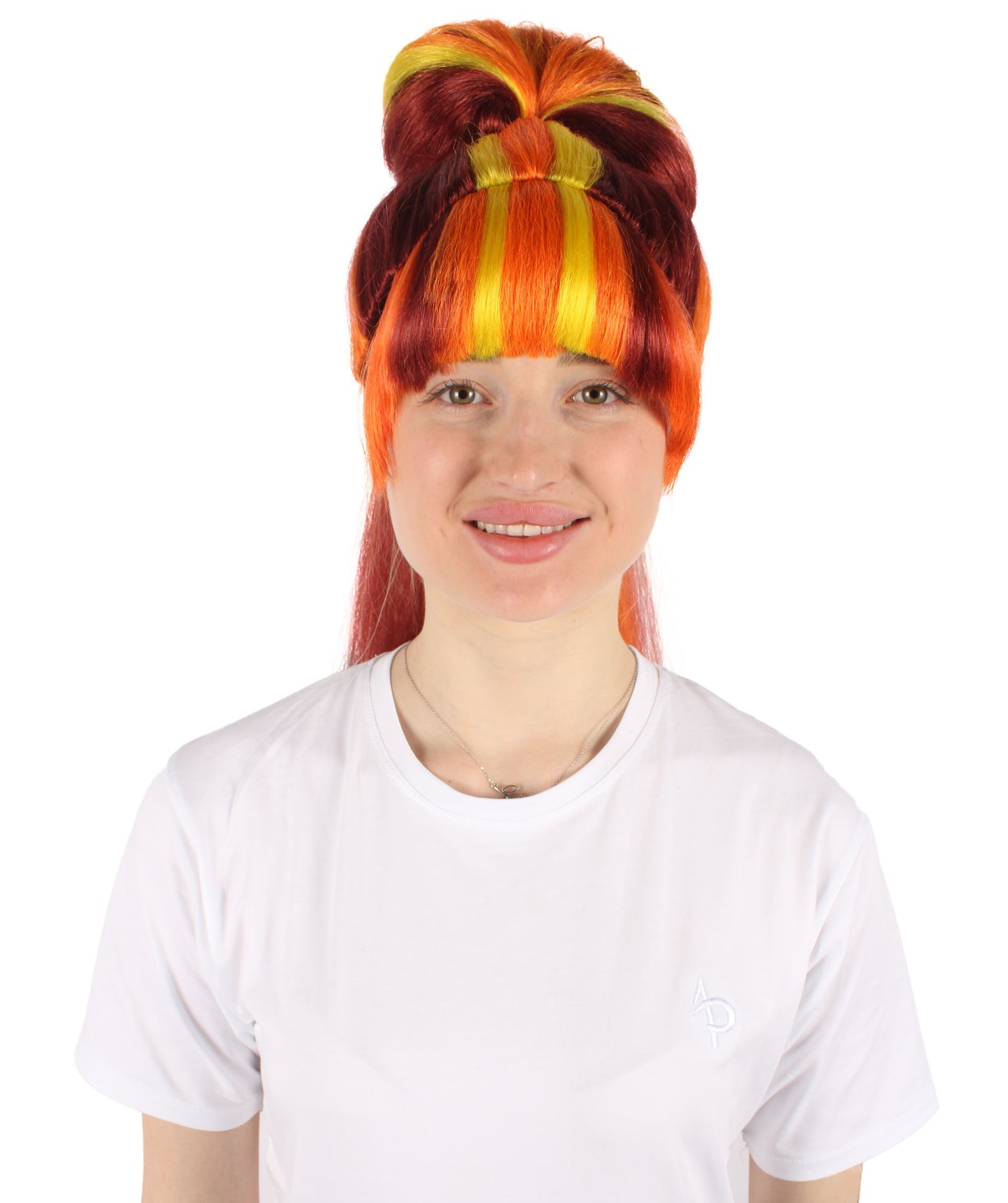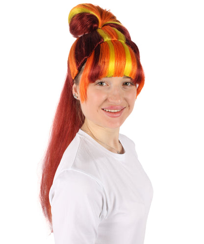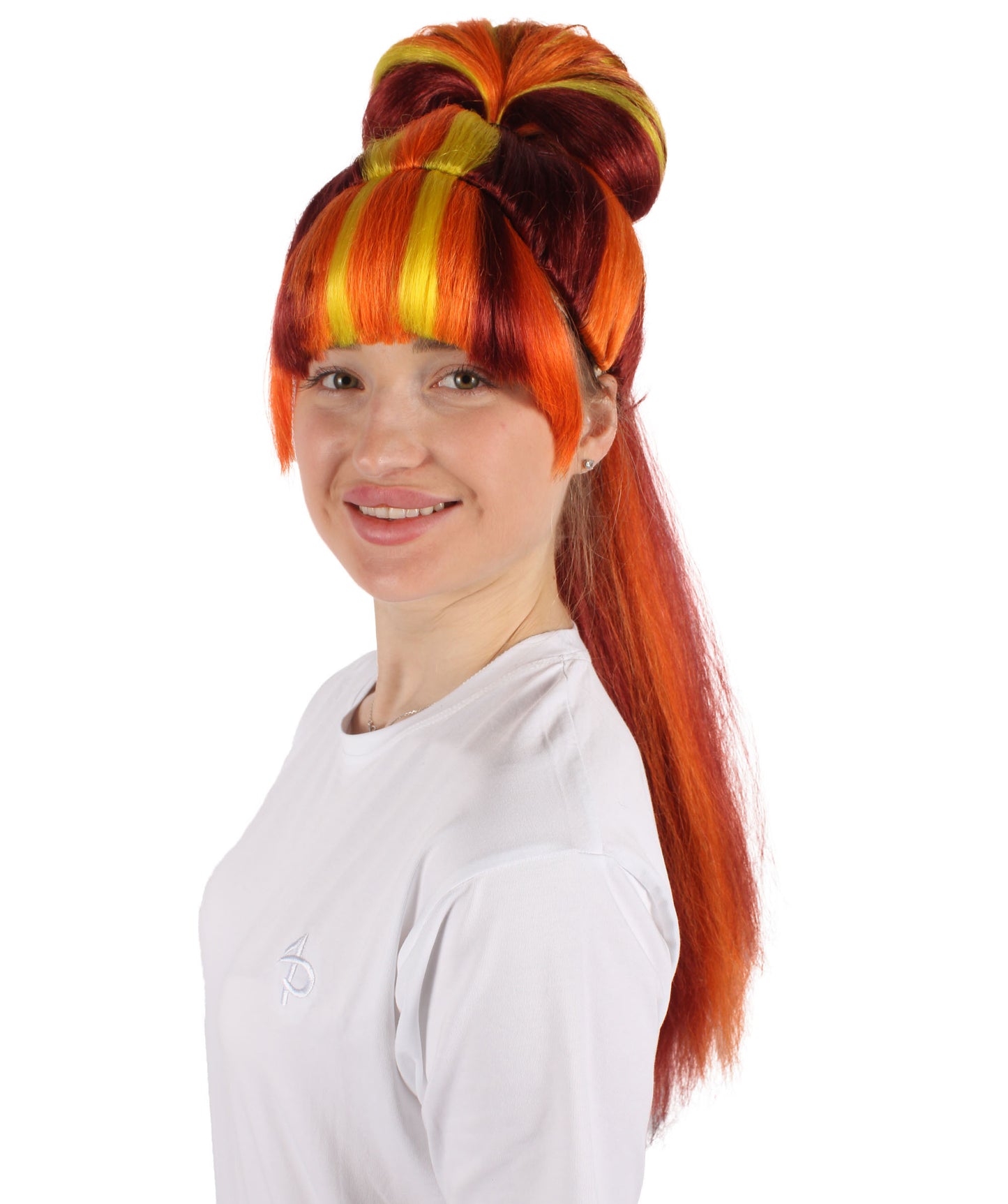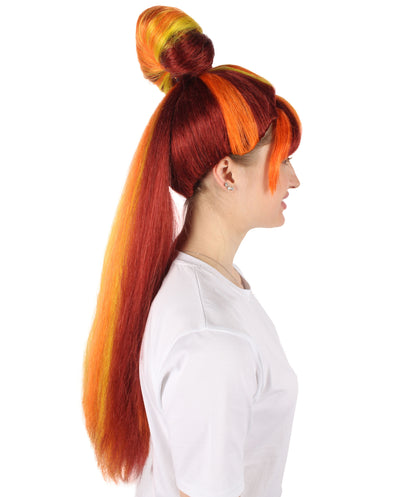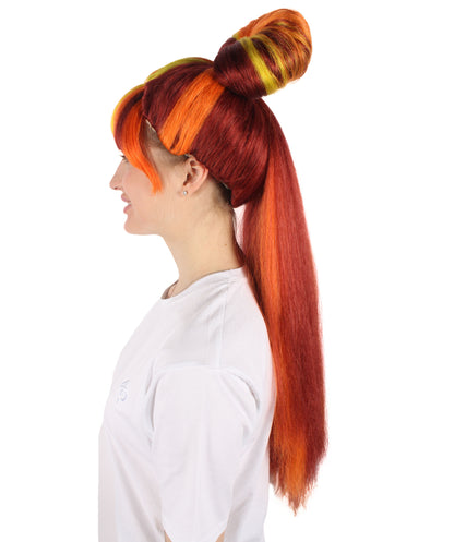 HPO Women's Half Bun Half Ponytail Orange Wig,Flame-retardant Synthetic Fiber