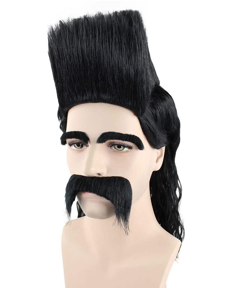 Animated Movie Supervillain Fancy Bundle| Purple Costume and Black Wig With Eyebrows & Mustache| Flame-retardant Synthetic Material