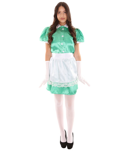 Women's French Apron Maid Uniform Costume | Green Fancy Costume