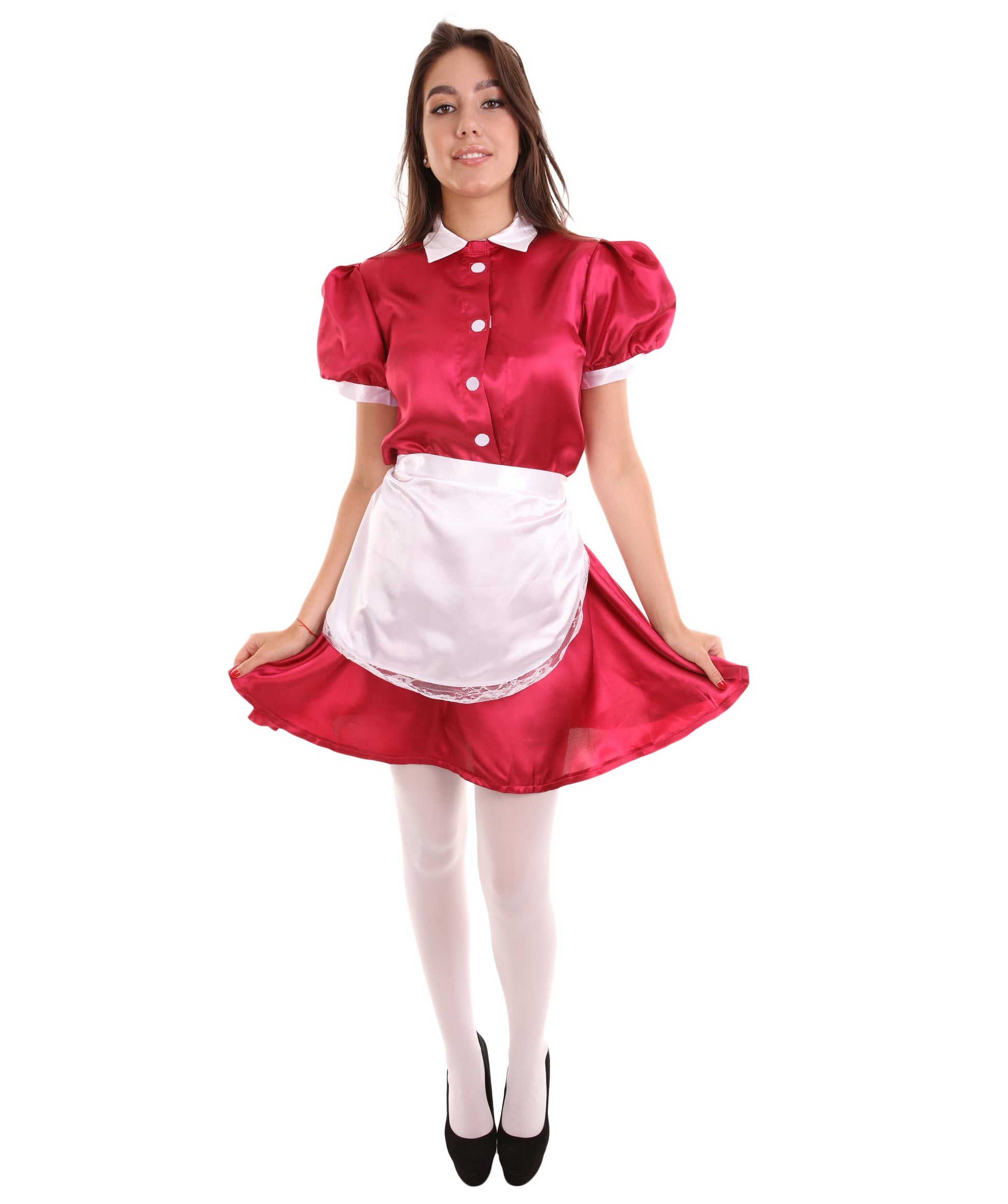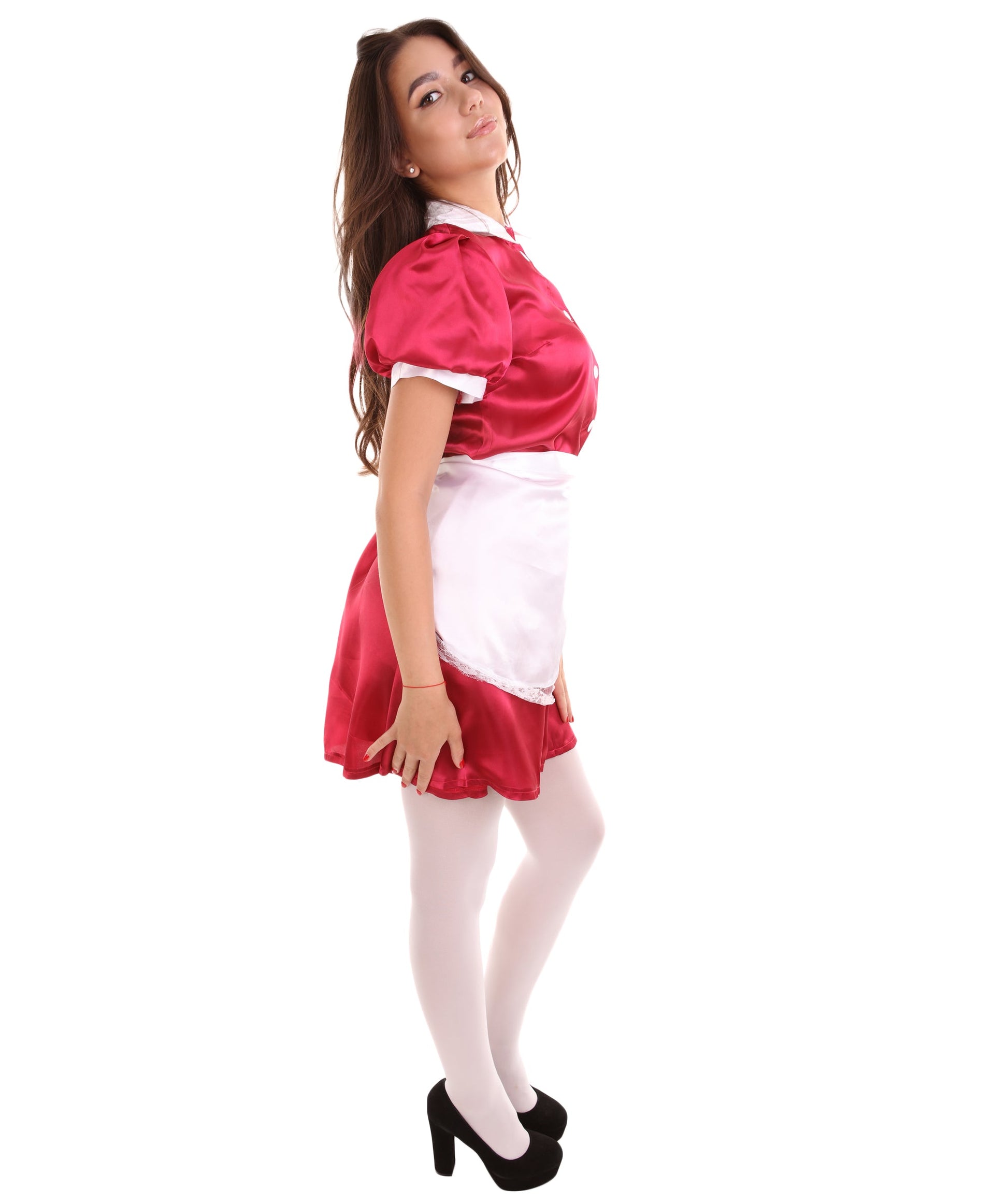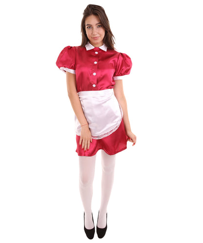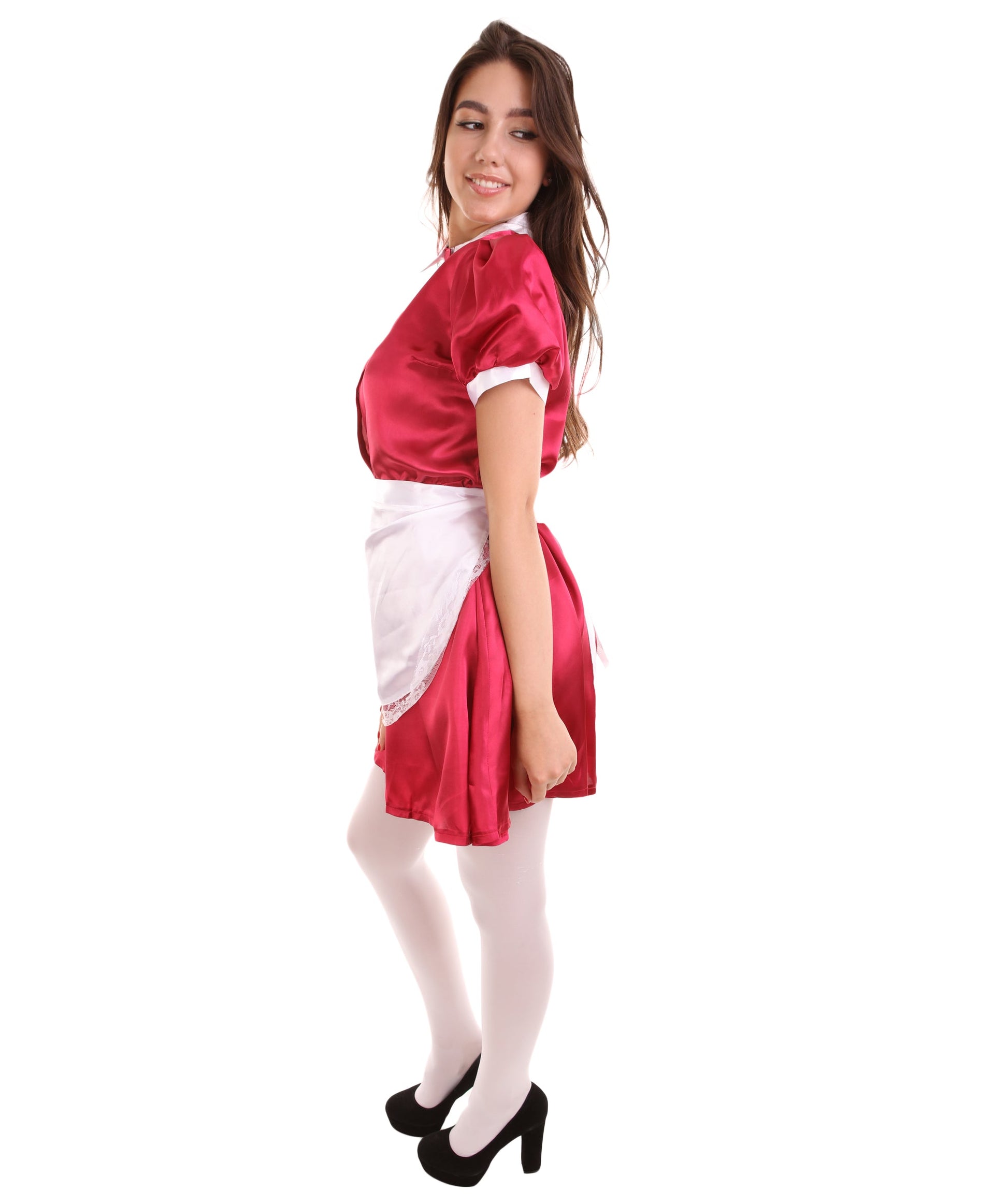 Women's French Apron Maid Uniform Costume | Dark Red Fancy Costume
