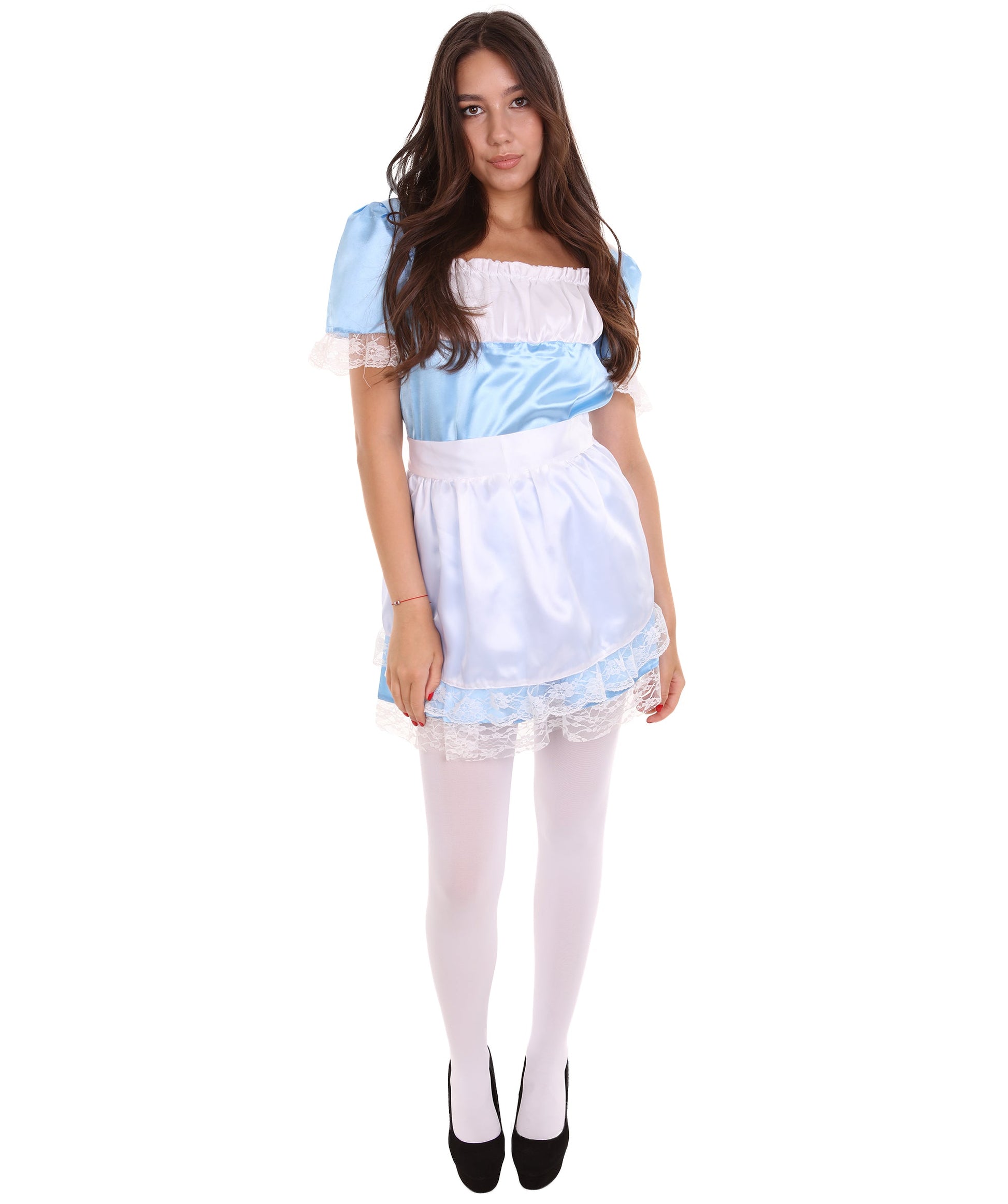 Immerse yourself in the world of traditional elegance and playful charm with the Medium Blue Maid Costume. This enchanting costume comes with an apron and it is the perfect choice for Halloween, cosplay parties, or anime conventions.