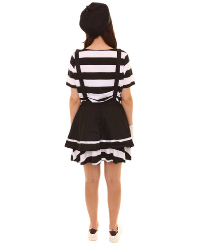 This charming black and white ensemble combines classic mime artistry with a stylish, modern twist, making the Mime Costume a standout choice for any costume event.
