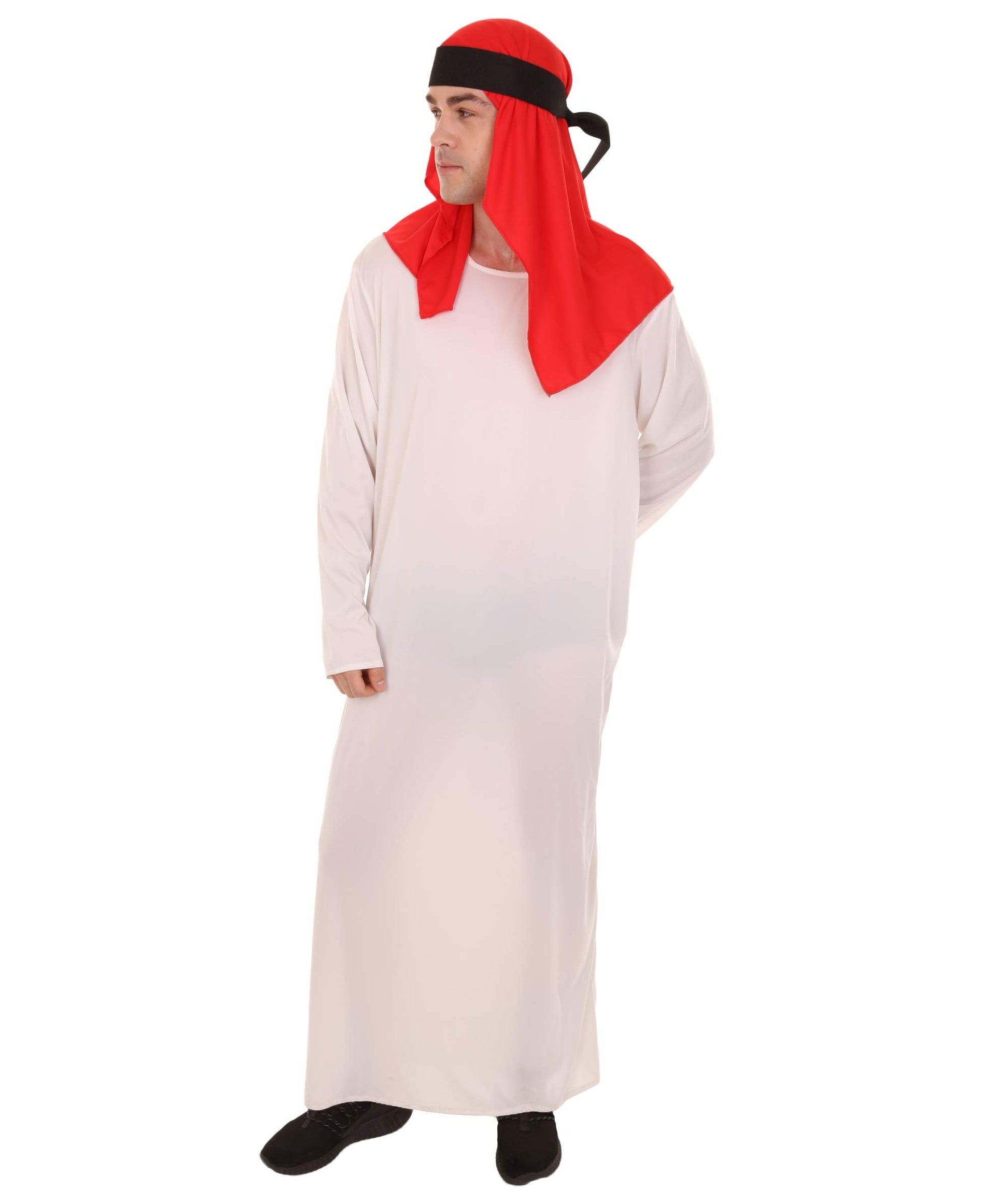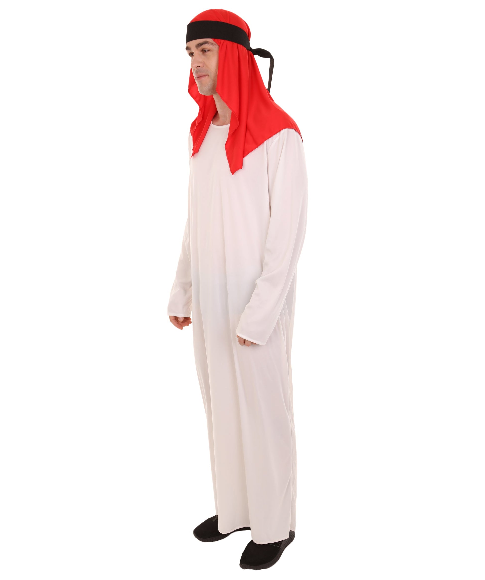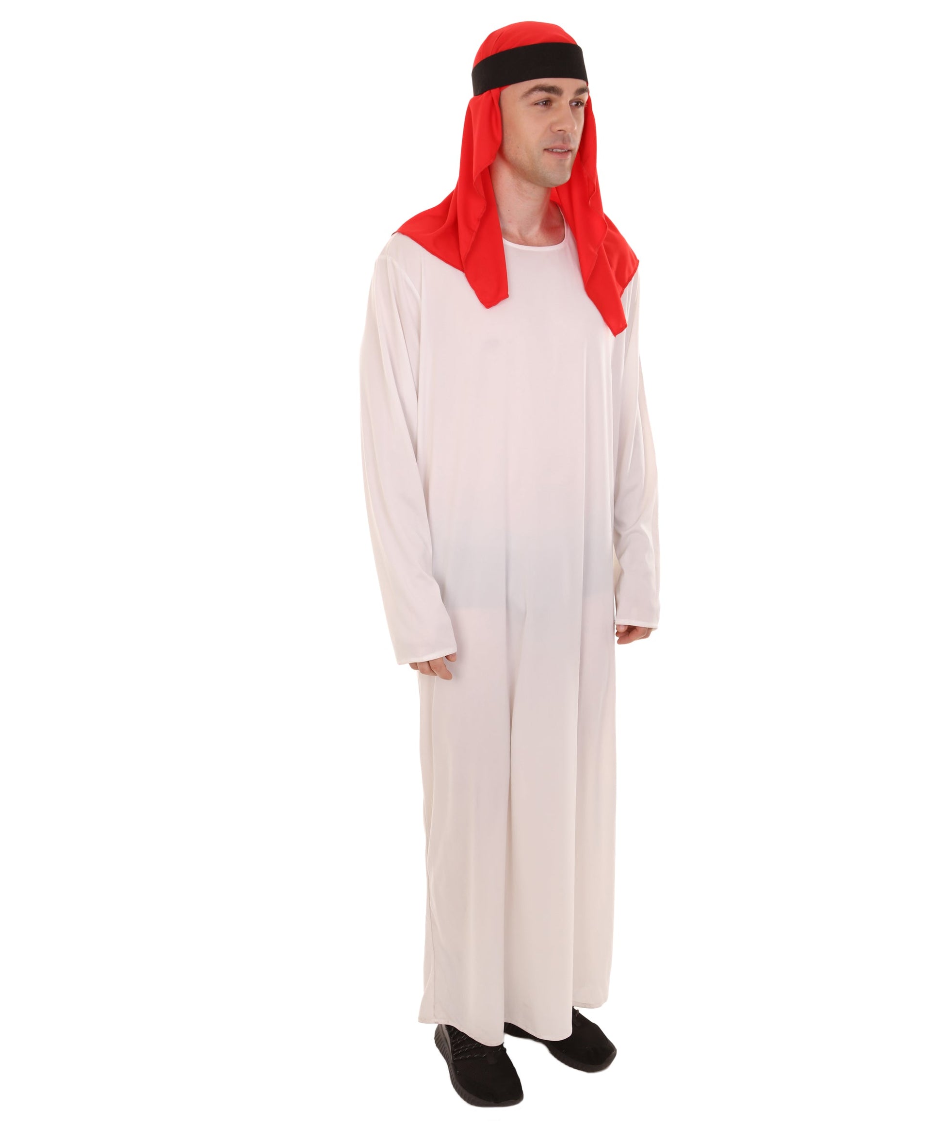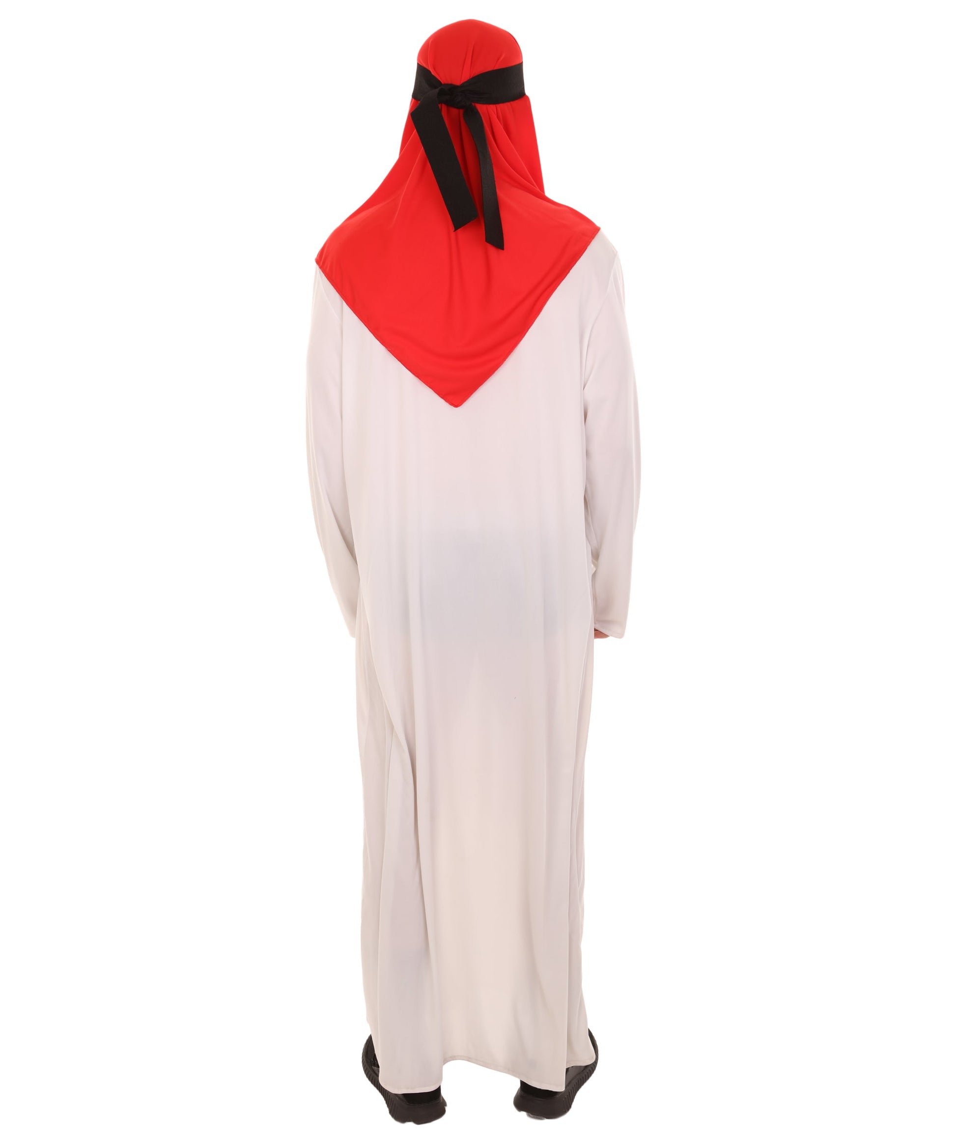 Men's Sheikh Arabian Costume | White & Red Fancy Costume