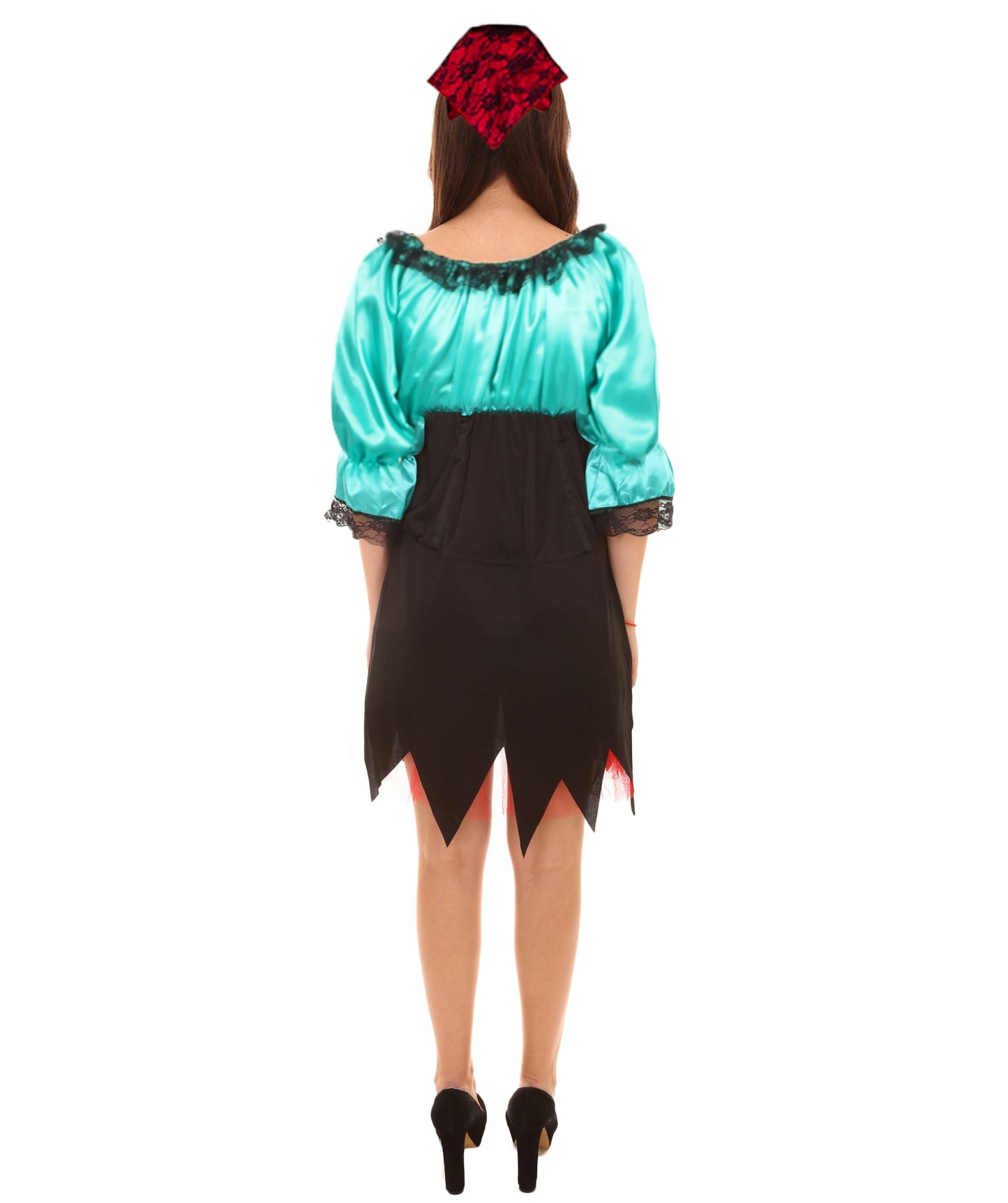 To complete the look, the costume comes with a matching headscarf. The headscarf is made from soft red and black mixed-color fabric and can be styled in a variety of ways to suit your personal taste.