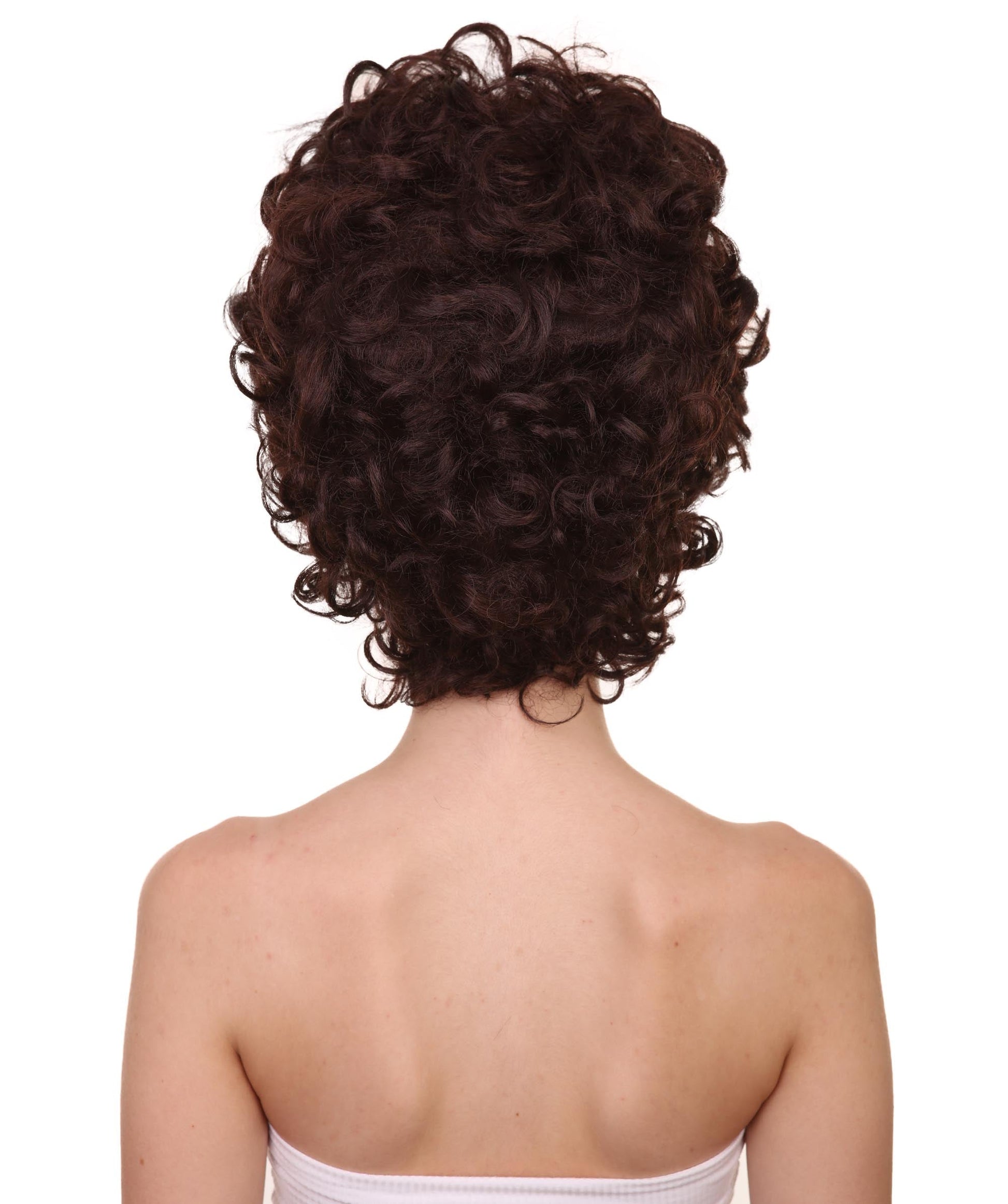 Get ready to transport yourself back to the 60's with the Hippie Disco Wig from HPO! This dark brown vintage wig is the perfect accessory for Halloween, theme parties, comic cons, parades, and festivals. With its curly beehive style, this affordable party wig will help you stand out from the crowd and get noticed.