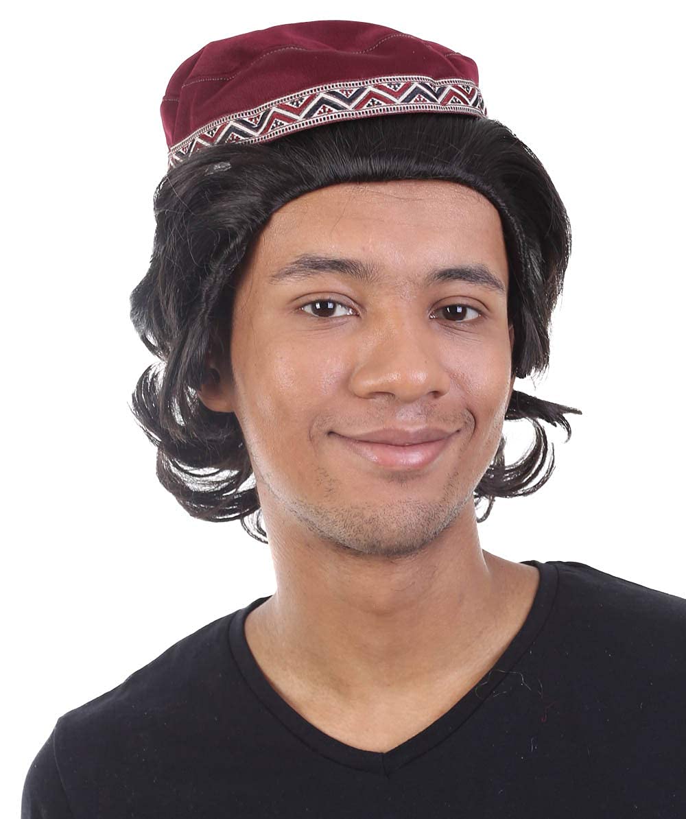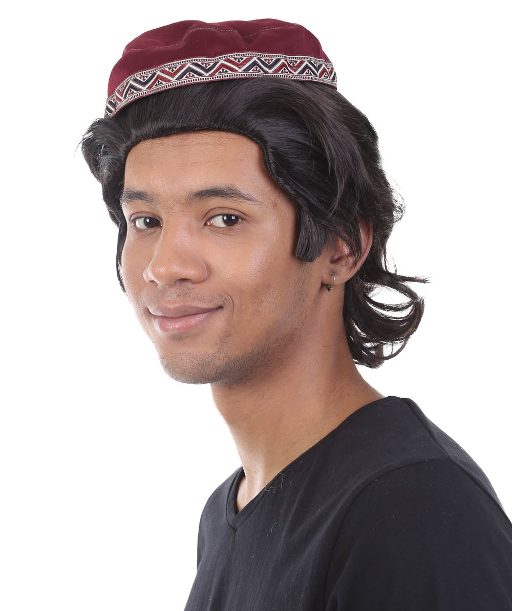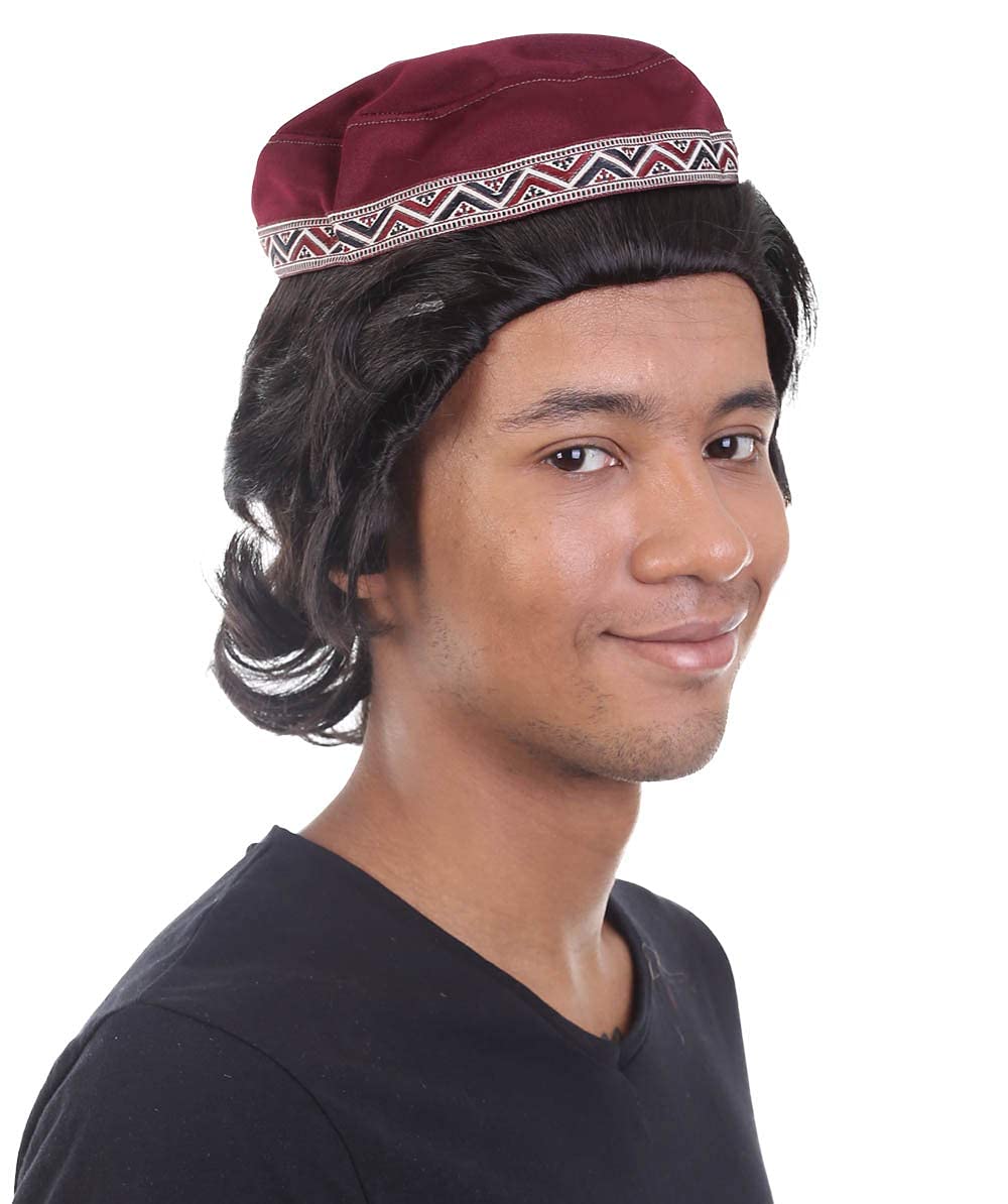 Indian Prince Wig with Hat Set | Dark Brown TV/Movie Wigs | Premium Breathable Capless Cap