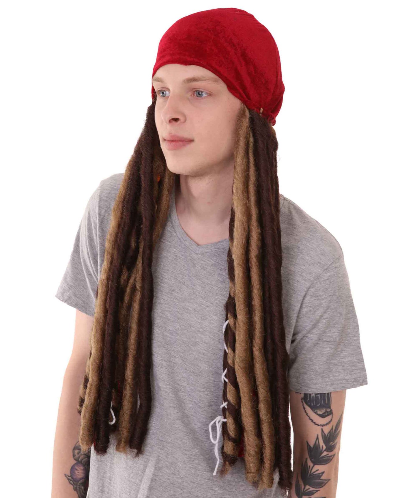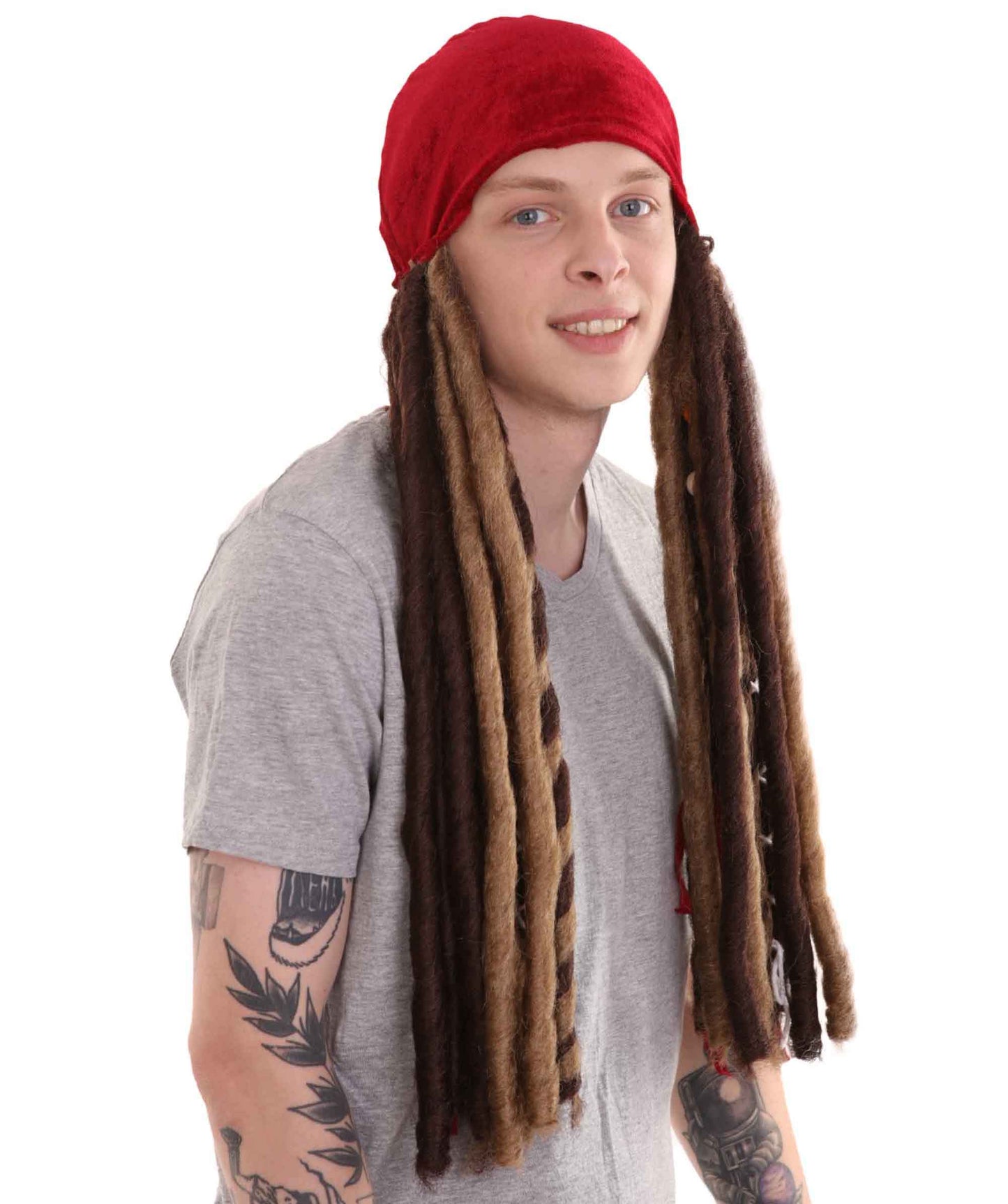 Pirate Pete Mens Wig | Halloween Wig With Red Cap