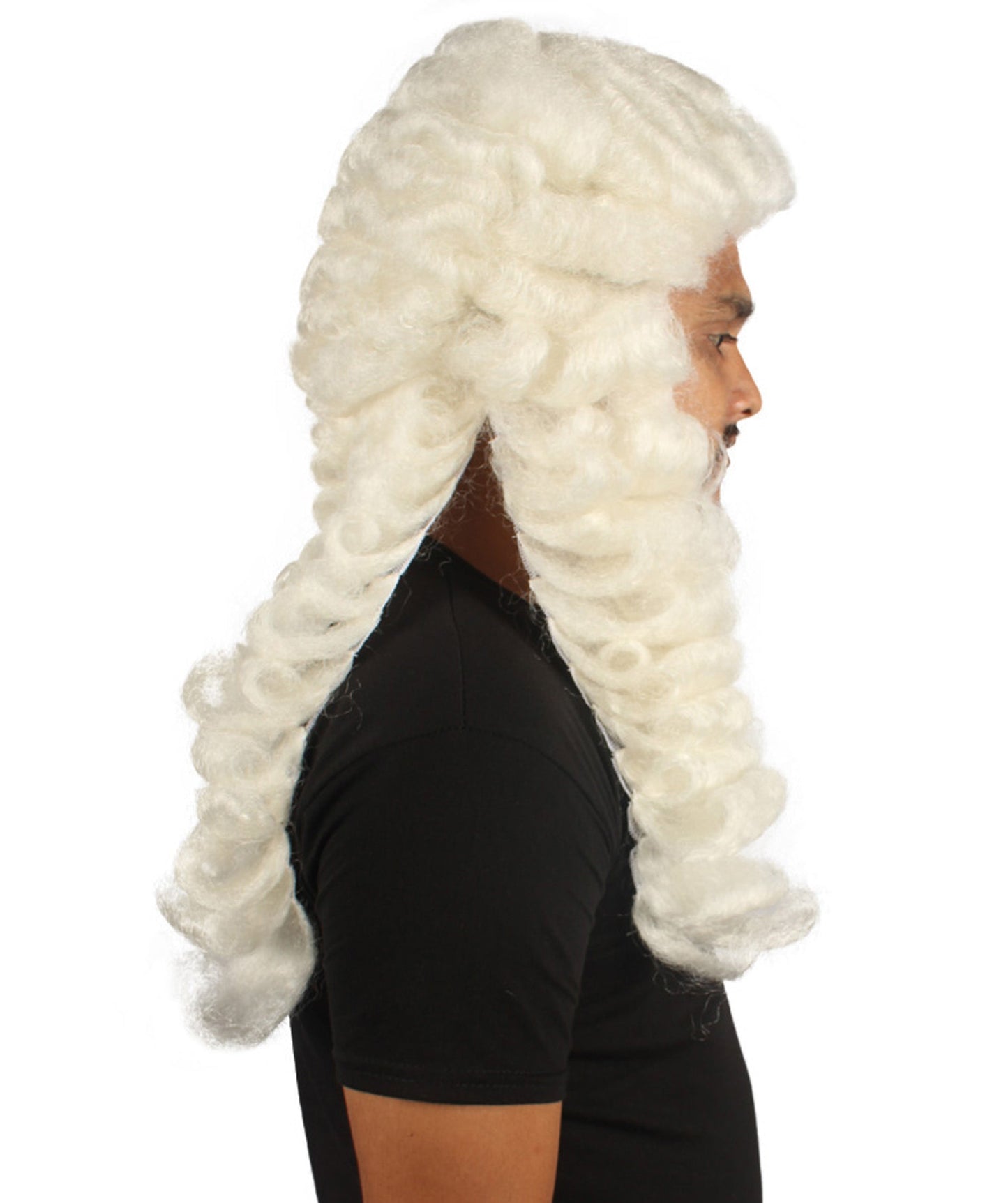 Men Colonial Judge Curly Long White Wig | Premium Breathable Capless Cap