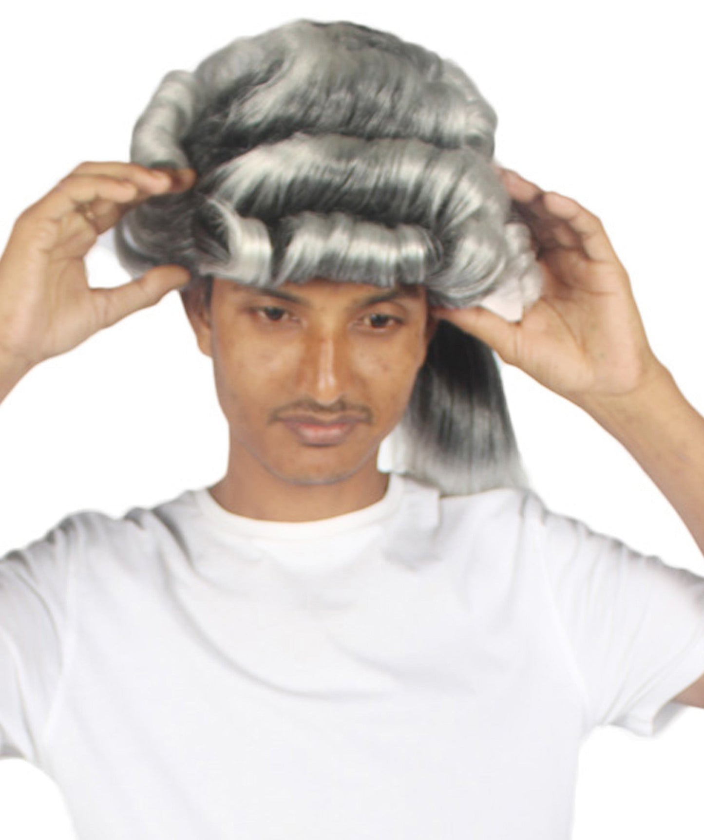 Mens Colonial Long Grey Historical Wigs | Premium Breathable Capless Cap