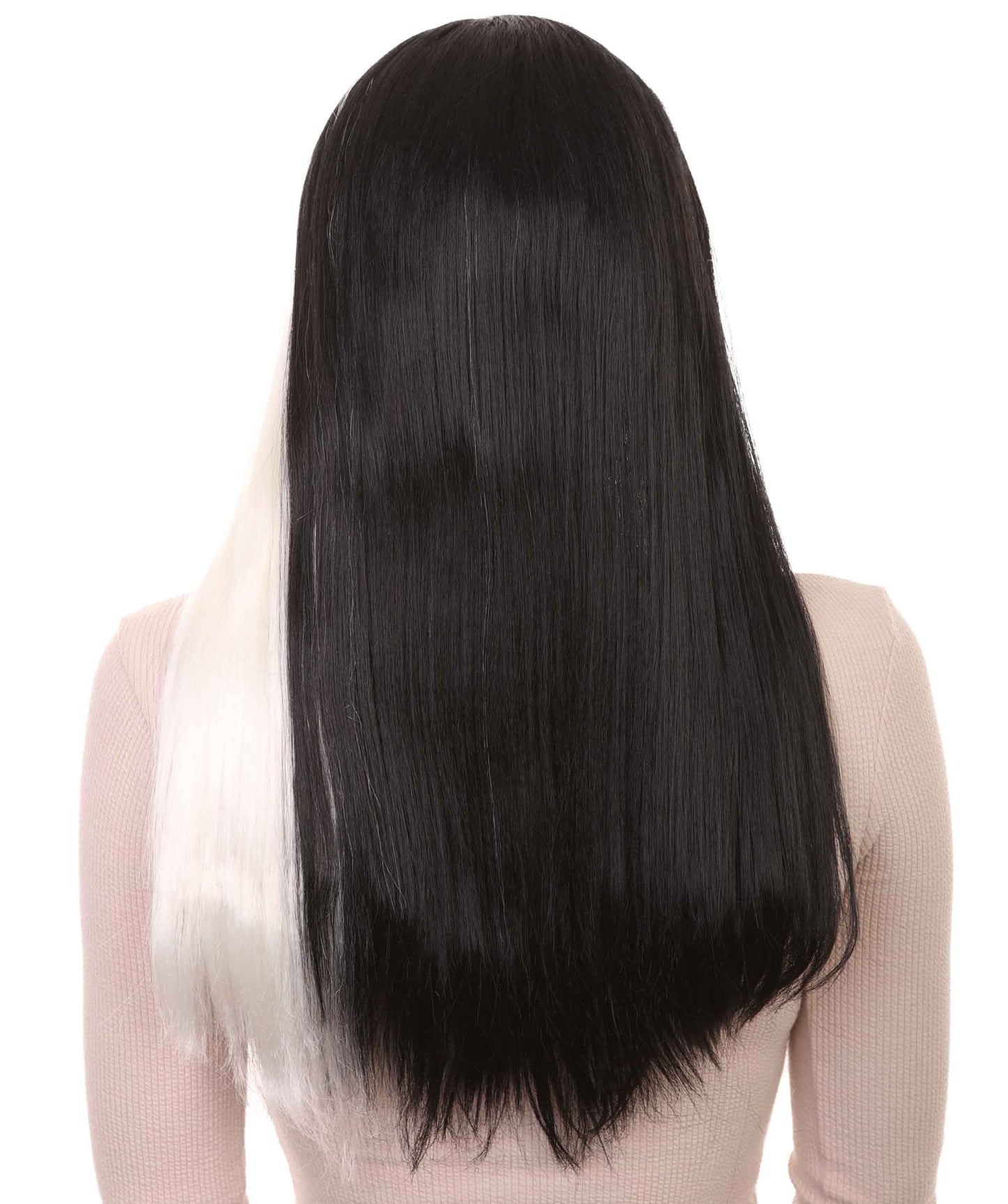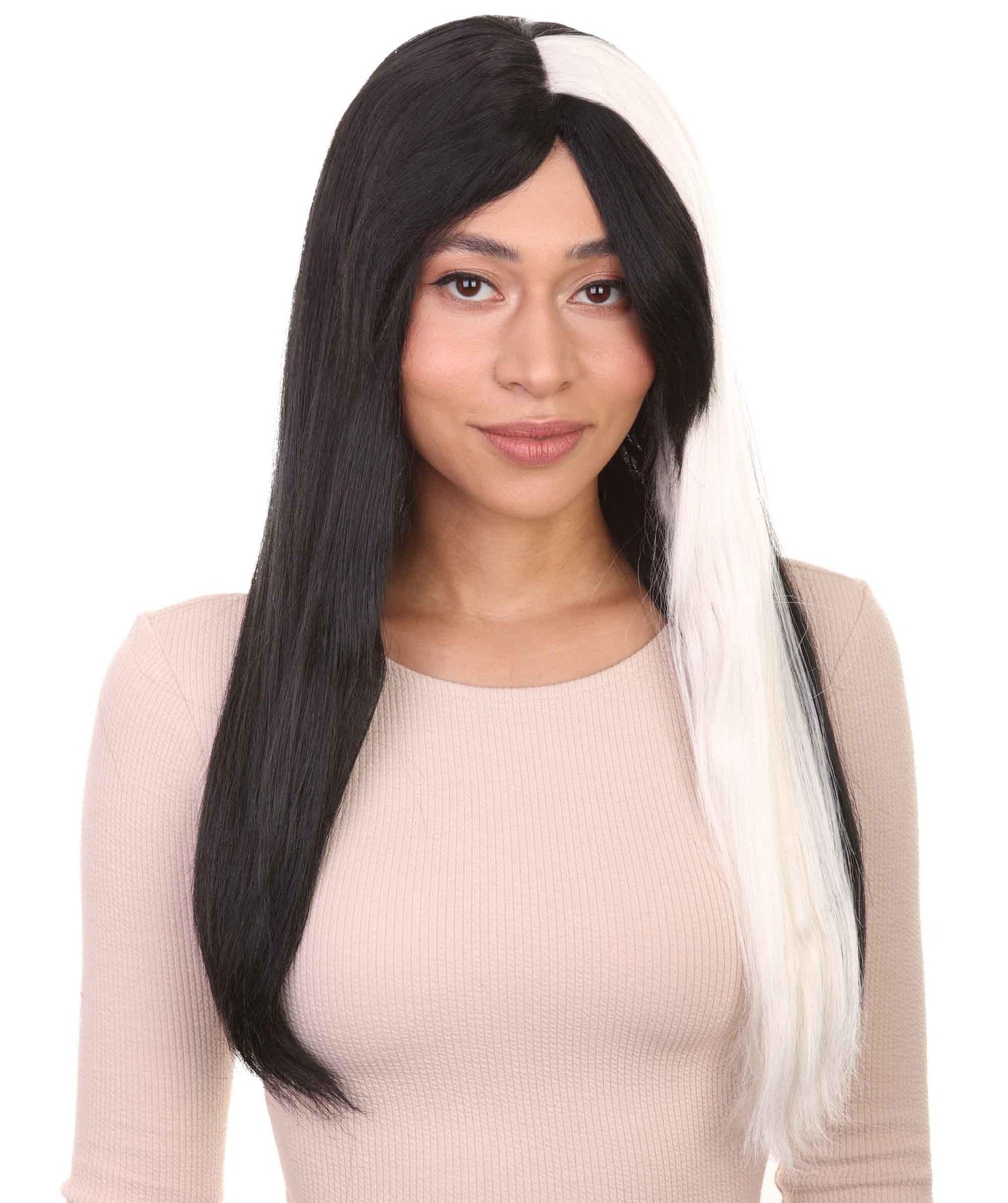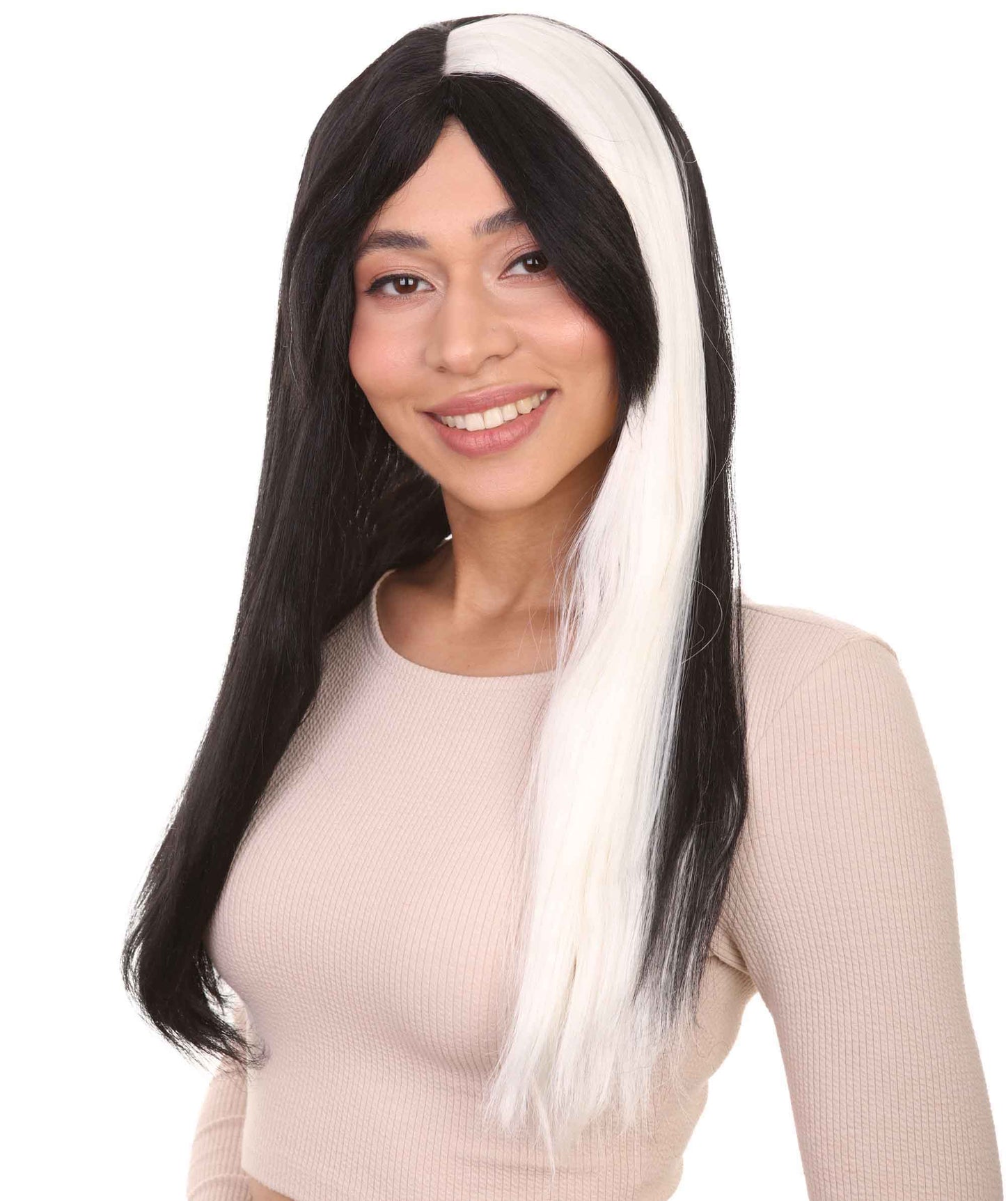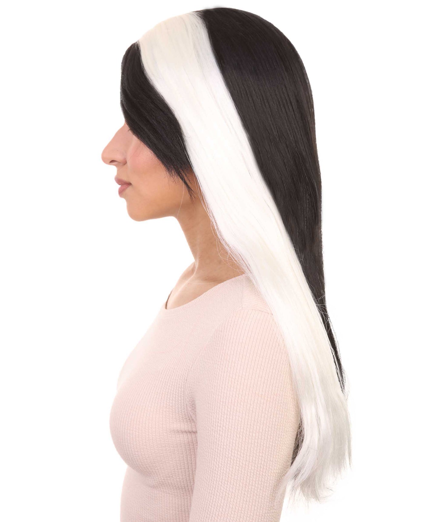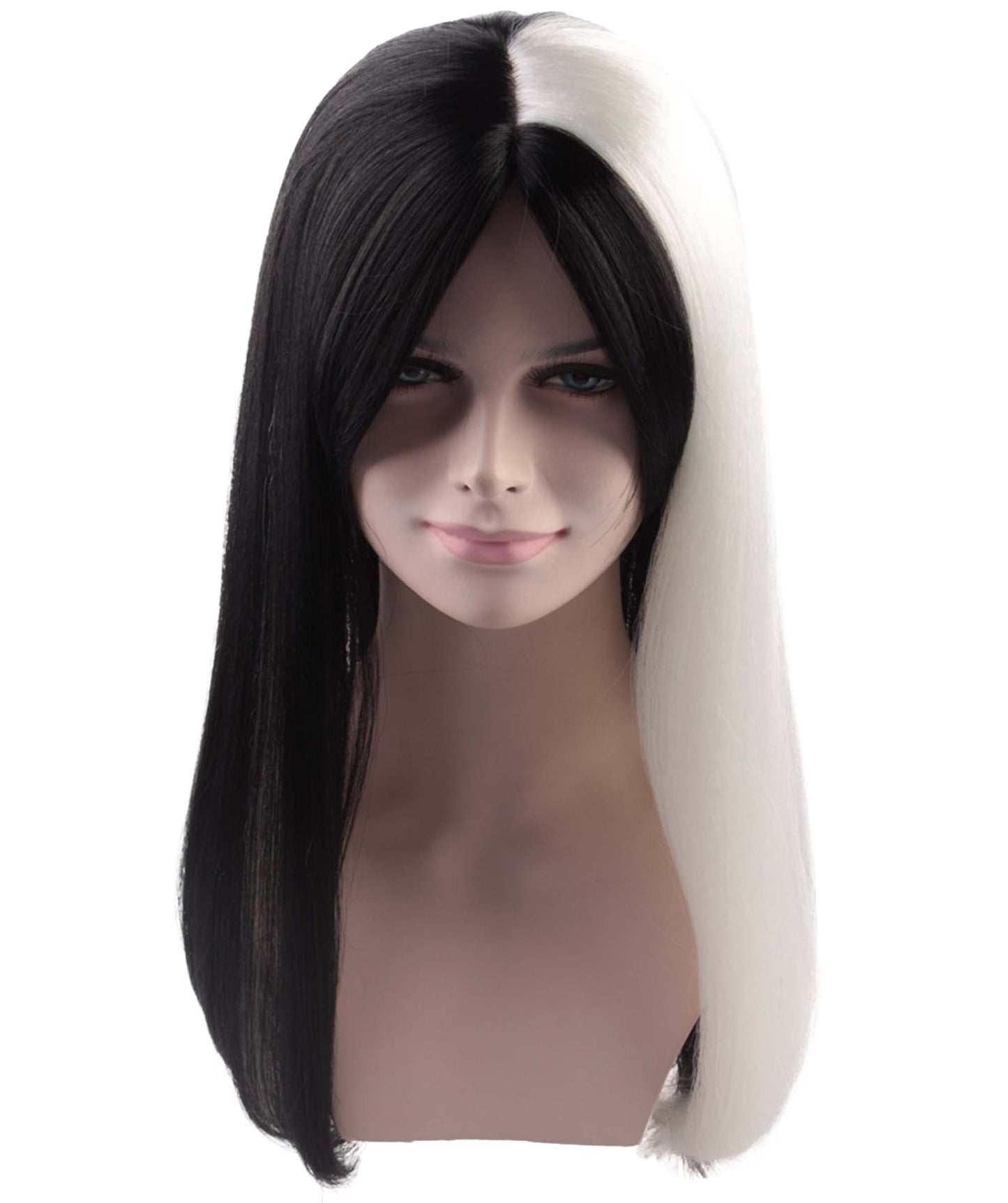 Horror Womens Wig | Long Black & White Gothic Halloween Wig | Premium Breathable Capless Cap