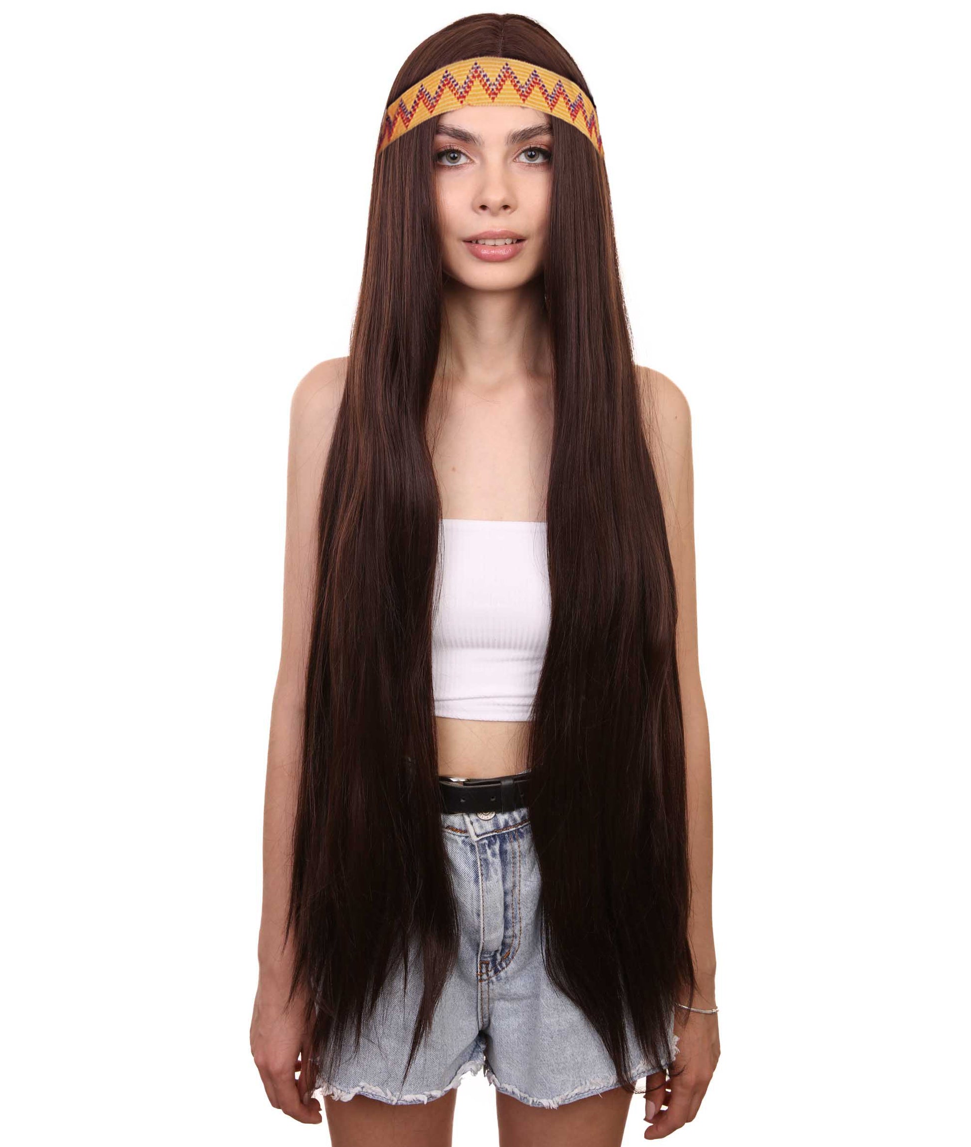 HPO Adult Female WIG Hippie Long with Headband – Boho Multiple Wigs Premium Breathable Capless Cap with Flame Retardant Synthetic Fiber Hair