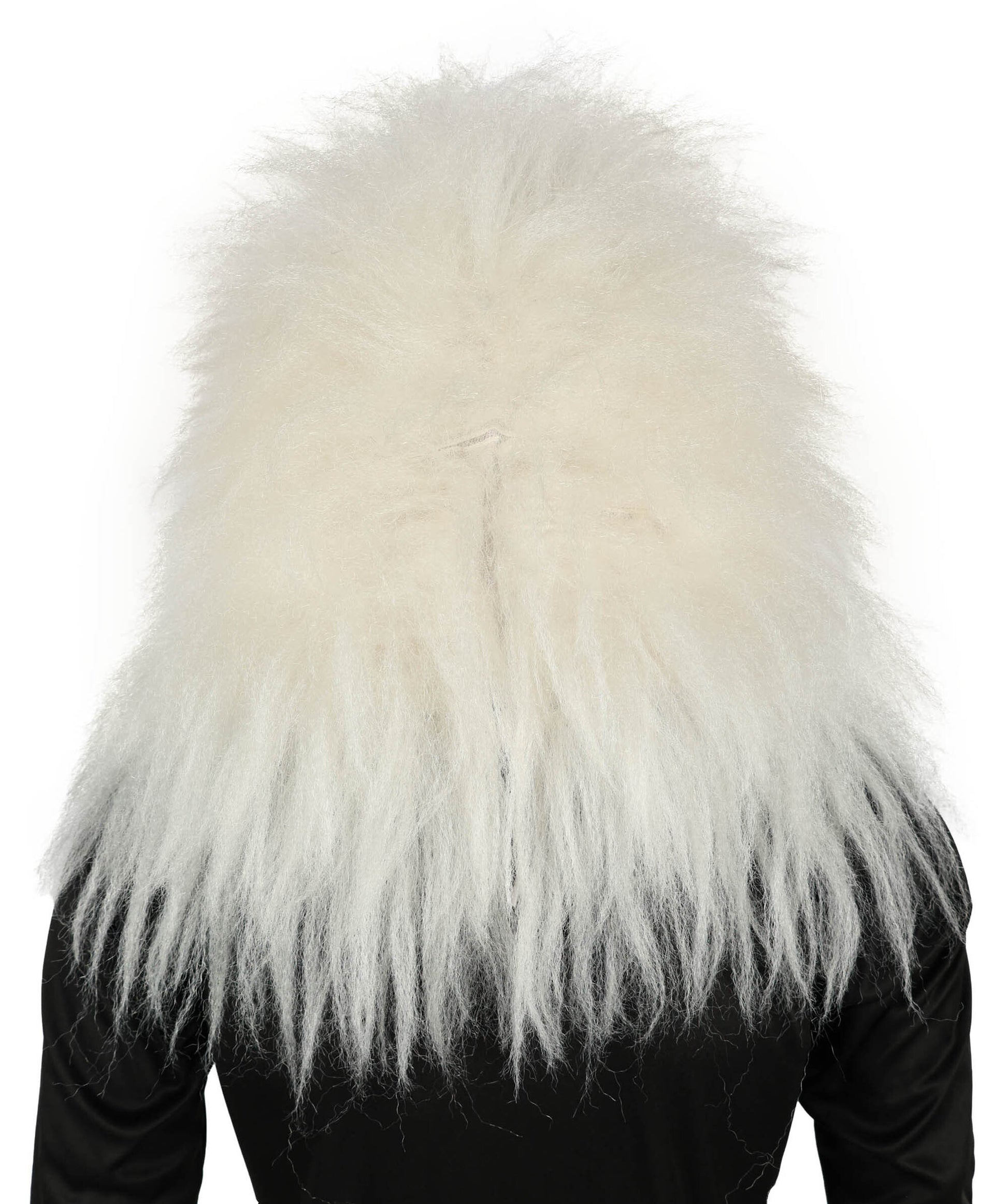 This all-in-one Full Costume & Bundle Set with Head Mask features a full-body design made from ultra-soft, high-pile faux fur in a snowy white color, with gentle lavender accents on the hands, feet, and around the expressive single eye.