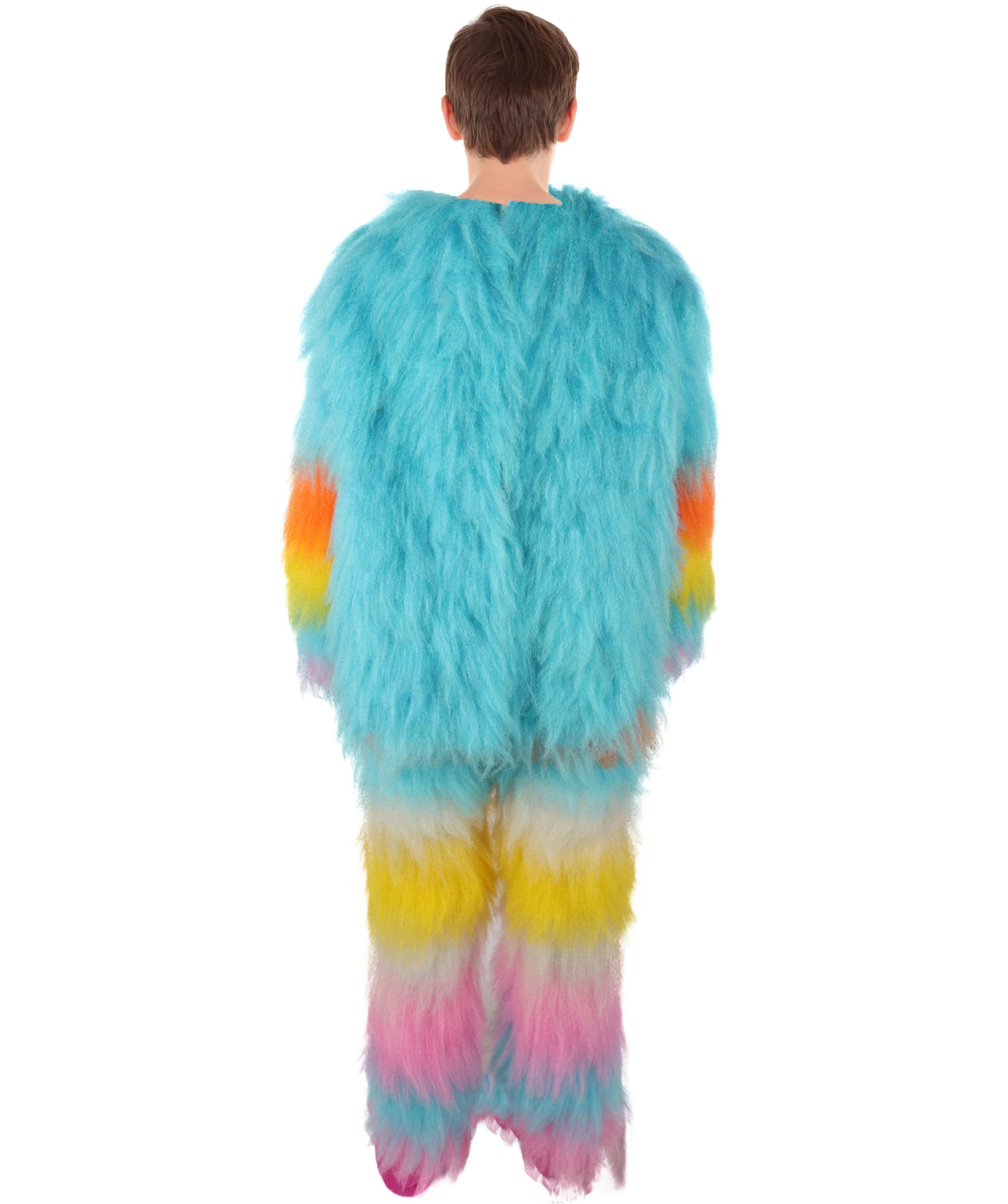 Become an irresistible, cuddly monster with this Furry Blue Monster Costume Set, complete with a full-body plush suit and an oversized mascot head mask. Designed for ultimate comfort and fun, this Monster Costume Set is suitable for Halloween, cosplay, birthday parties, and performances. The soft faux fur and playful rainbow detailing add a lively charm, making it an exciting costume choice for adults. A unique and identifiable character design is produced by the light blue fur.