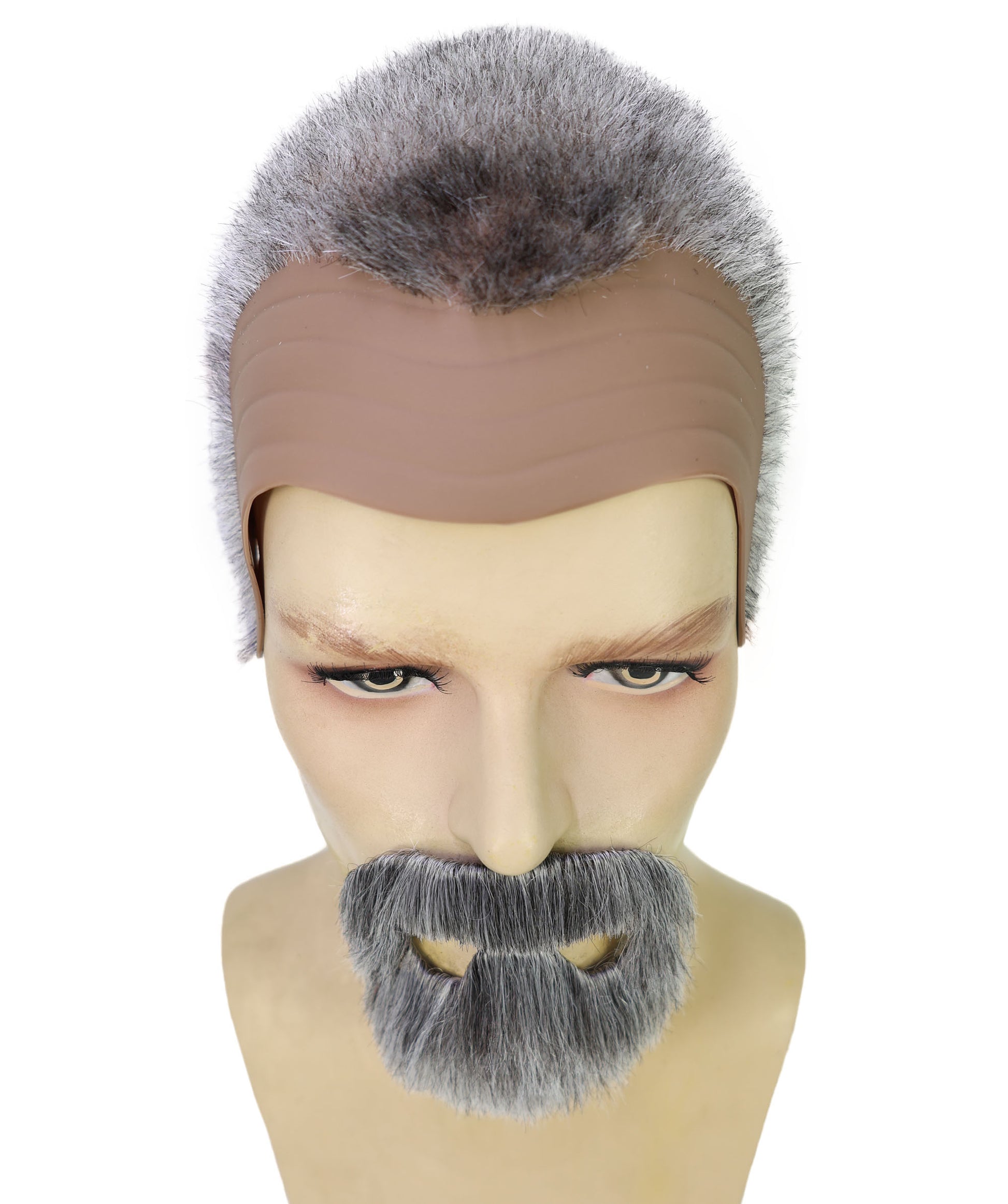 HPO Men’s Roman Emperor Macrinus White and Brown Wig and Mustache & Beard Set | Short Curly Dark Historical Hairpiece | Synthetic Fiber, Breathable Cap for Theater, Halloween