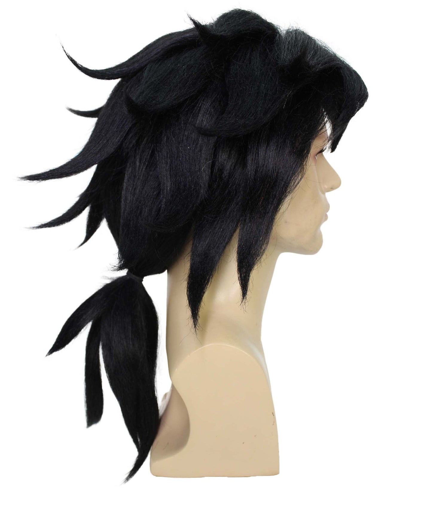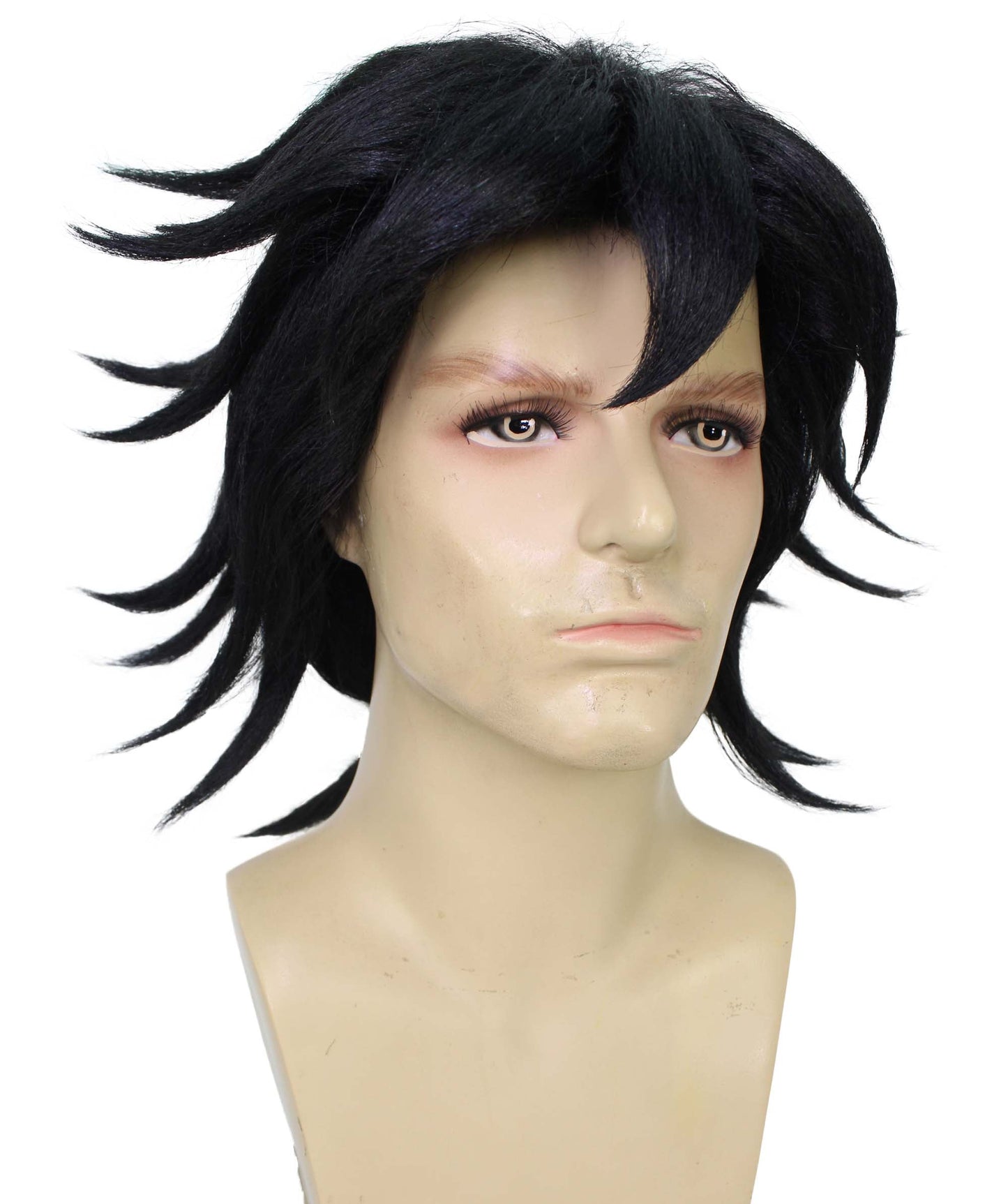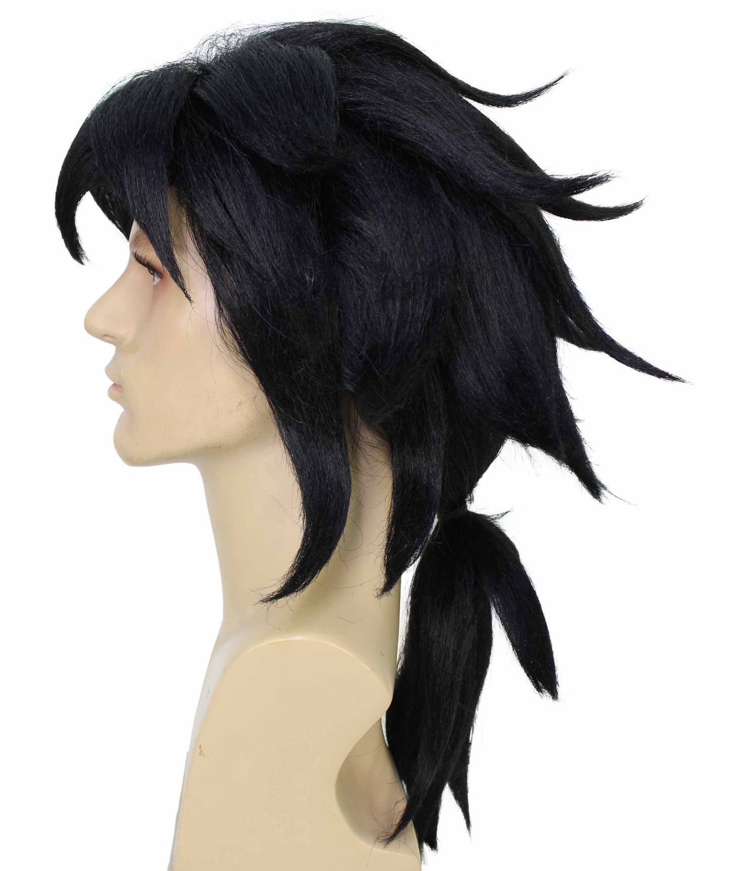 HPO Men's Anime Demon Warrior Black Wig with Fringy Bangs