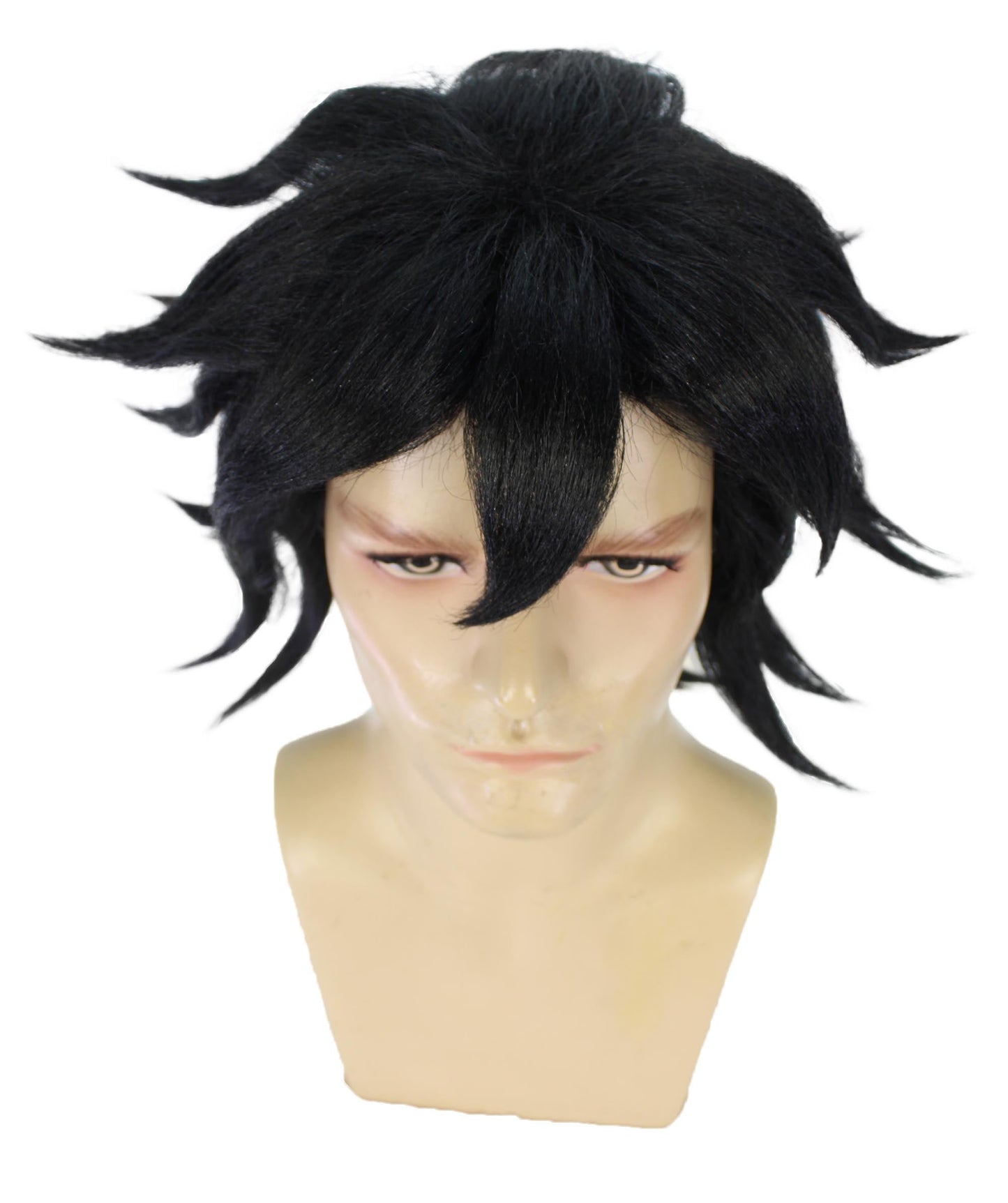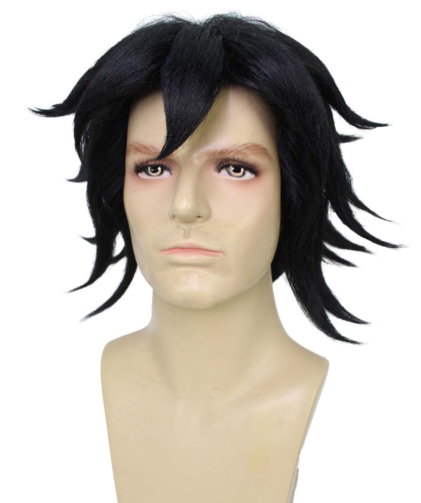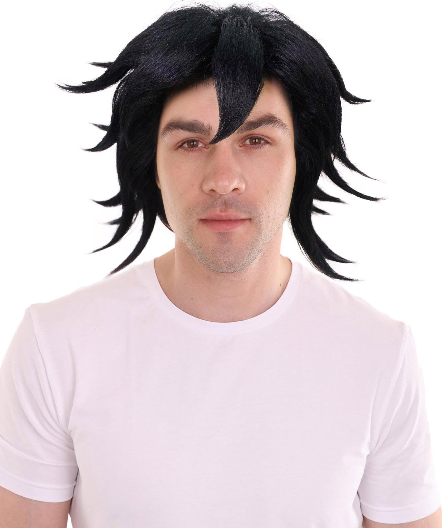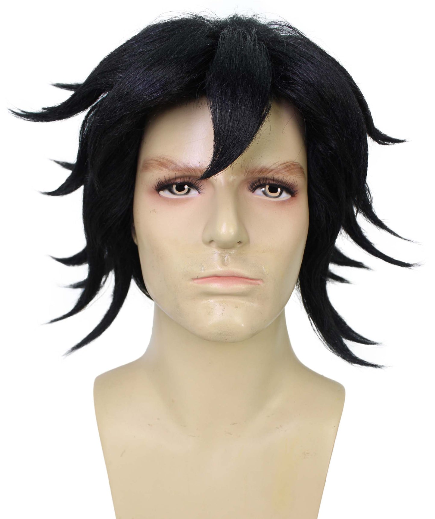 HPO Men's Anime Demon Warrior Black Wig with Fringy Bangs