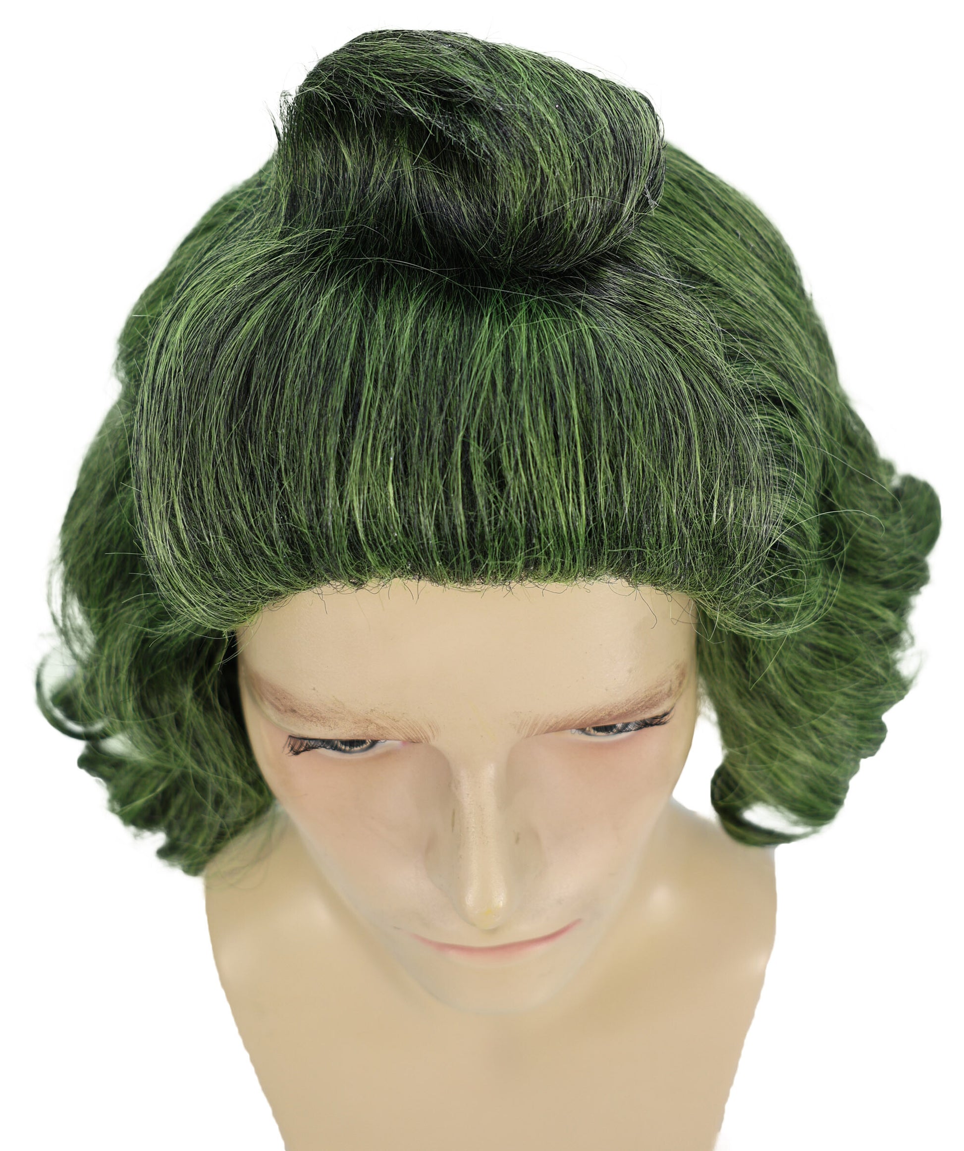 - Styled with tight green curls and a cartoonish flair, this wig is the perfect finishing touch for any Oompa Loompa costume. Made from high-quality, synthetic fibers, it offers a bold color, soft texture, and reliable shape that holds throughout the day. Lightweight and breathable, the wig features an adjustable inner cap for a snug fit on most head sizes—making it ideal for kids and adults alike.