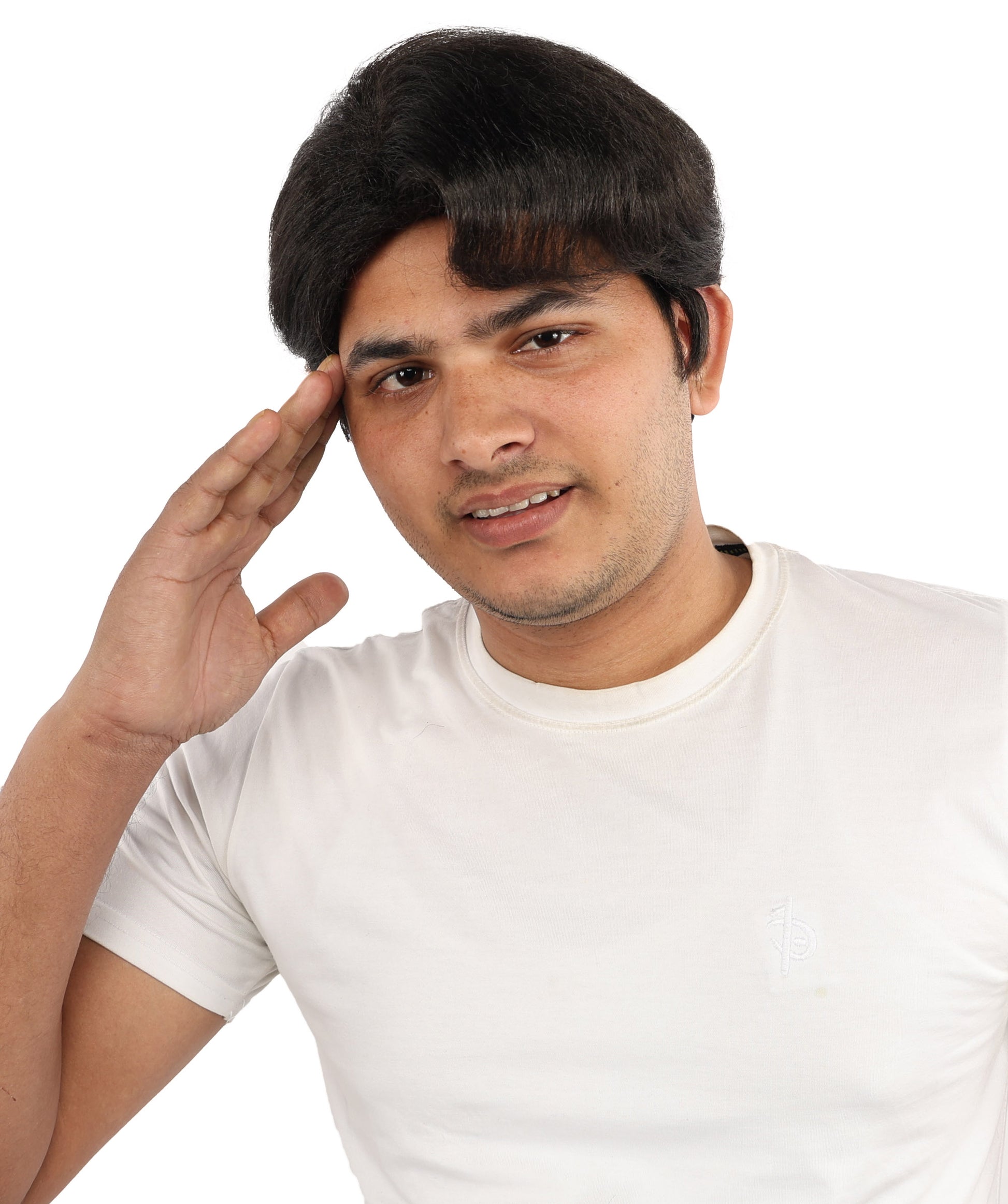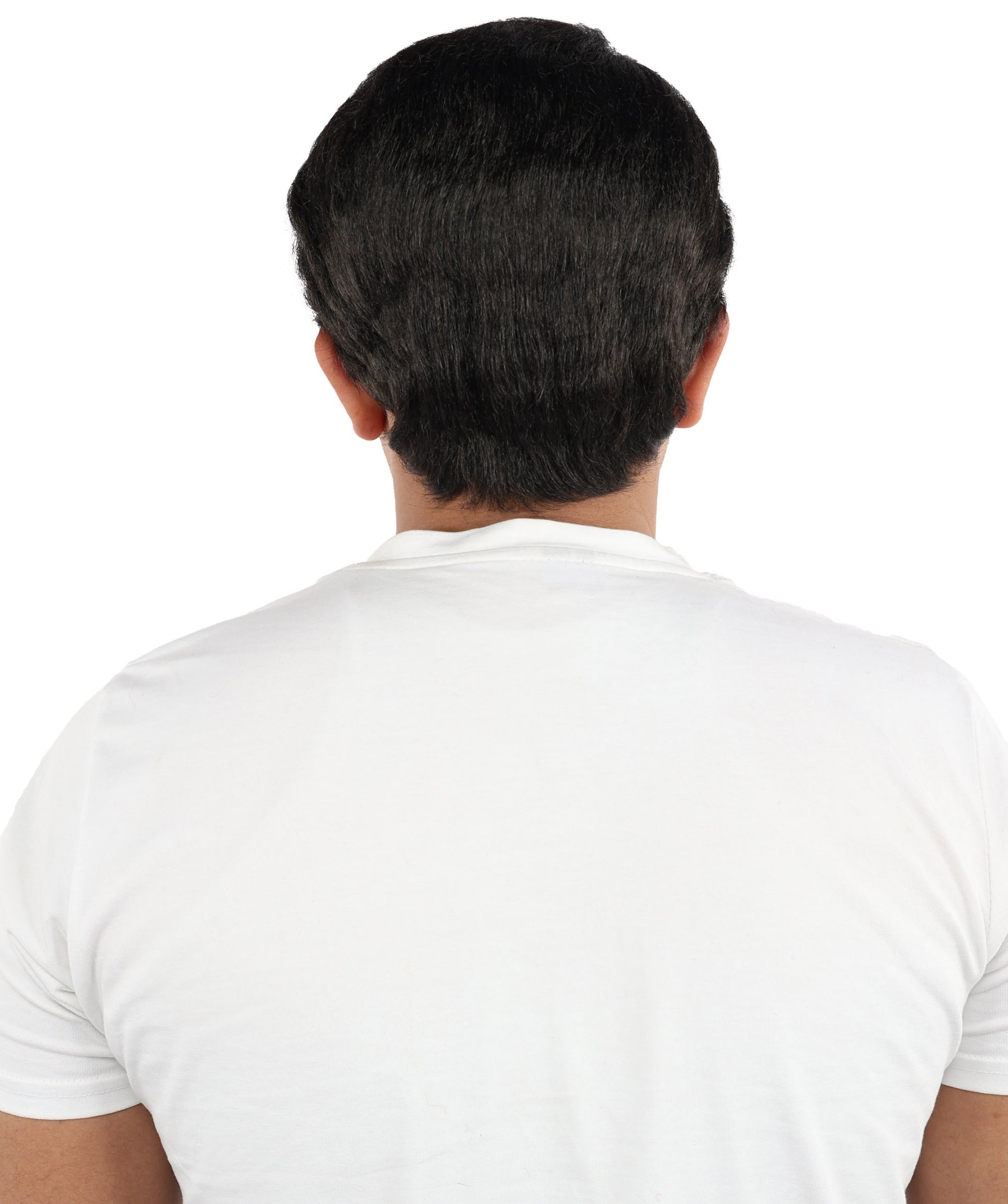 HPO Adult Men's Short Layered Synthetic Fiber Wig | Black Natural Style Hairpiece | Lightweight Heat-Resistant Cosplay & Daily Wear Cap