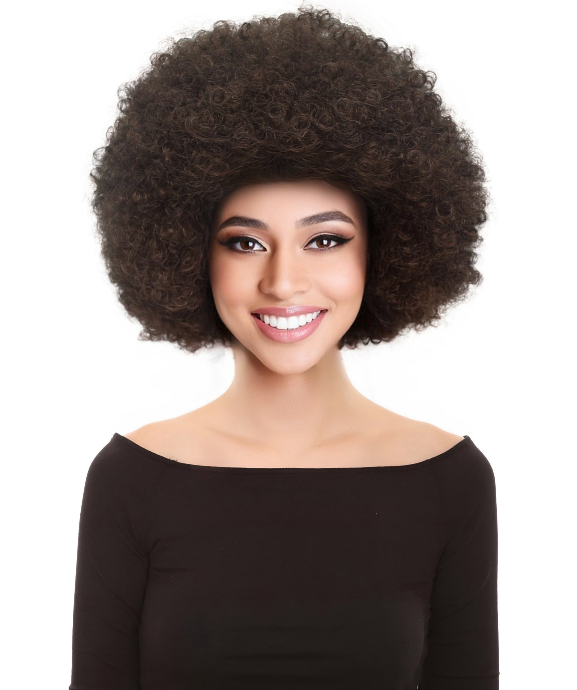 HPO Adult Unisex EG Brown Afro Wig – Classic Curly Wigs Themed Events, Perfect for 70s Disco, Halloween and Cosplay, Premium Breathable Capless Cap with Flame Retardant Synthetic Fiber Hair