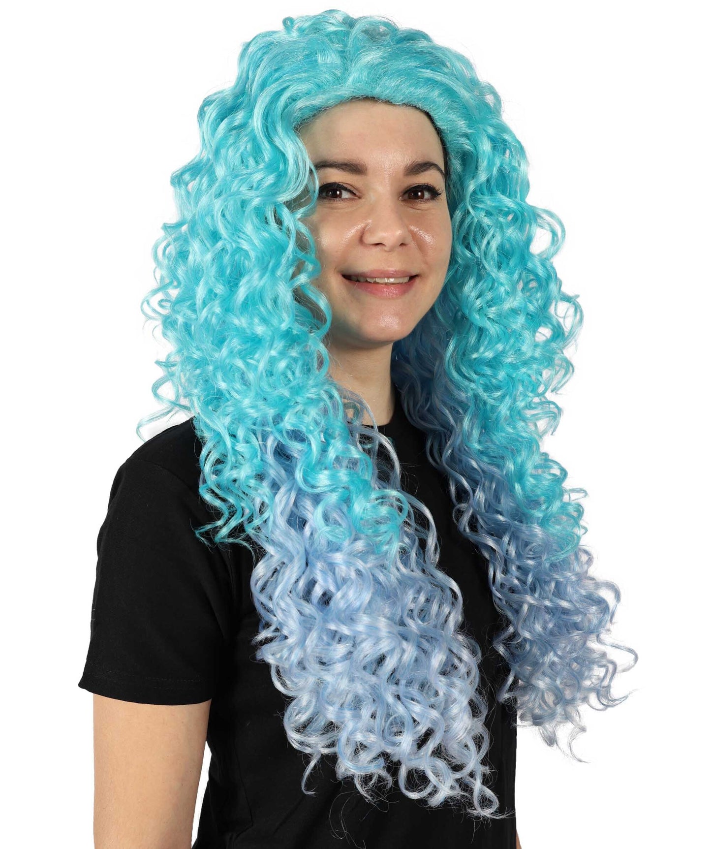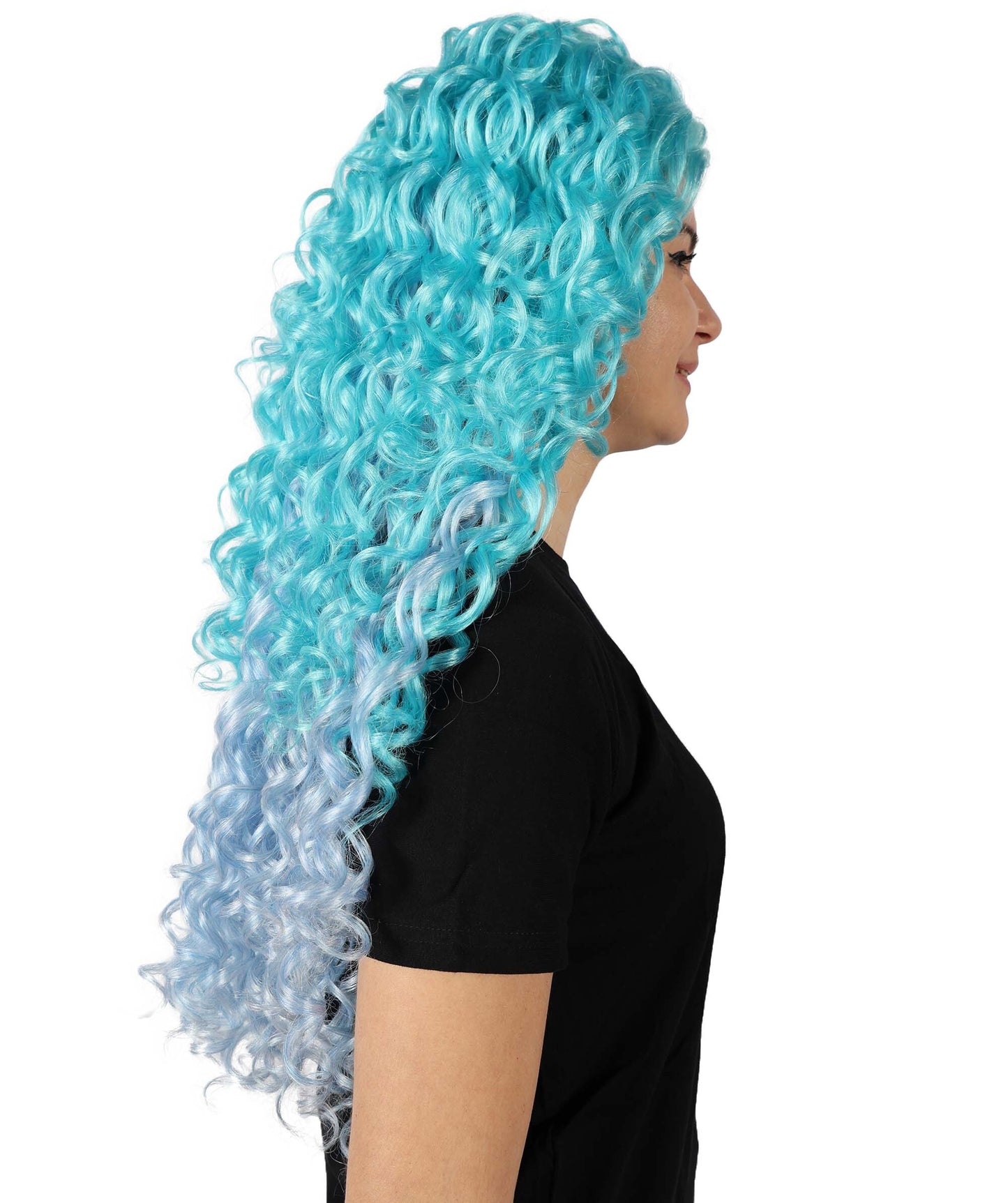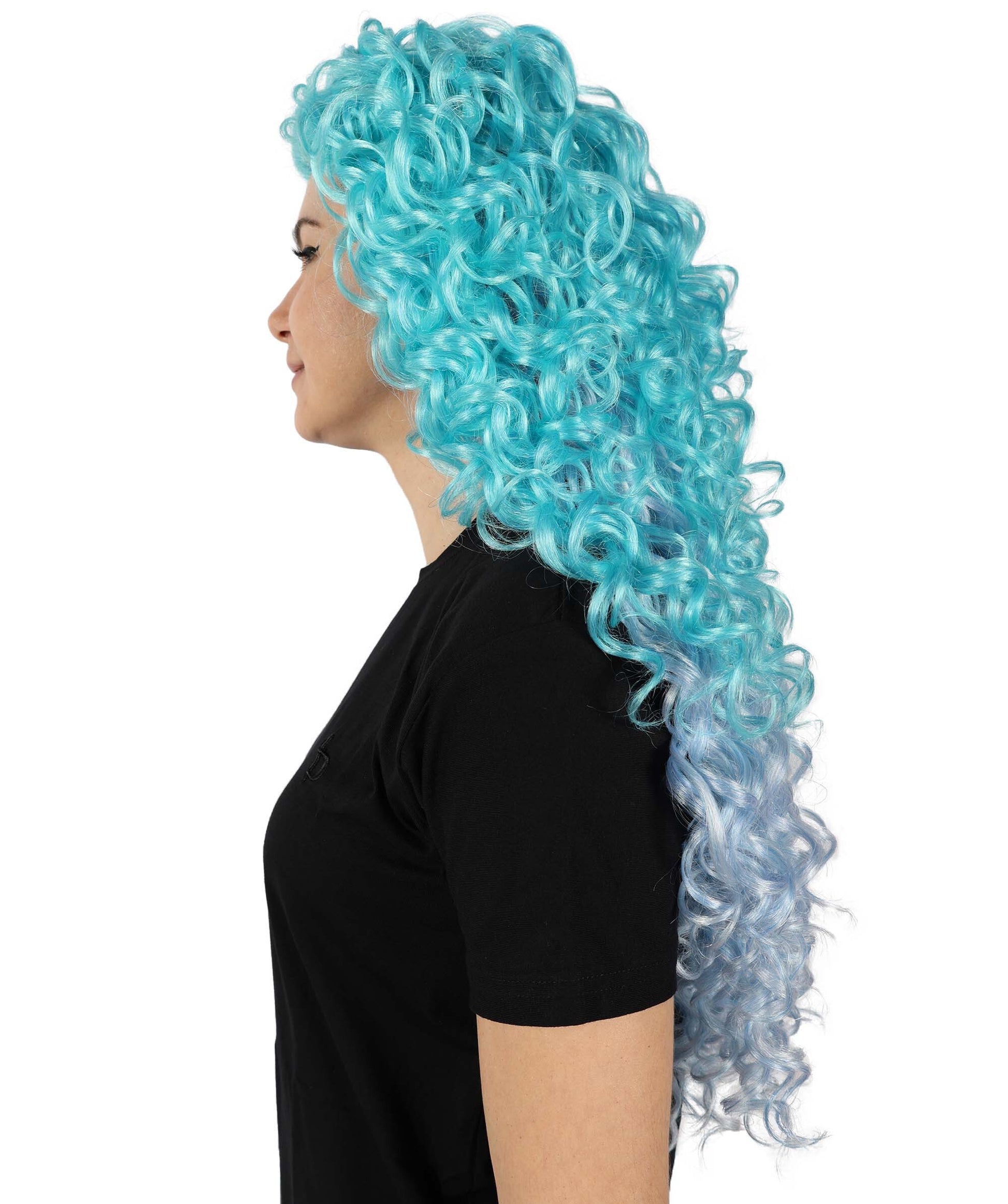 HPO Adult Women’s Enchanted Ocean Multicolor Long Curly Wig | Halloween and Cosplay Wig | Flame-retardant Synthetic Fiber