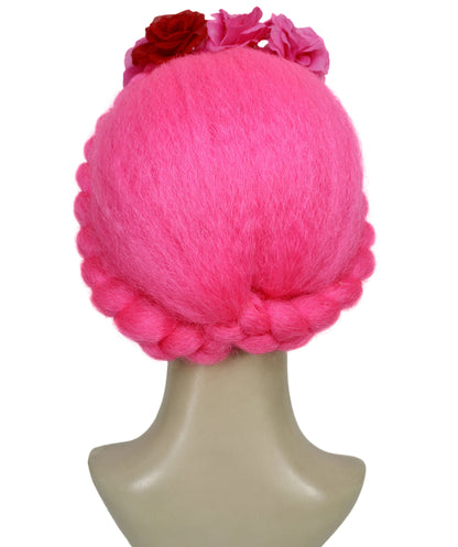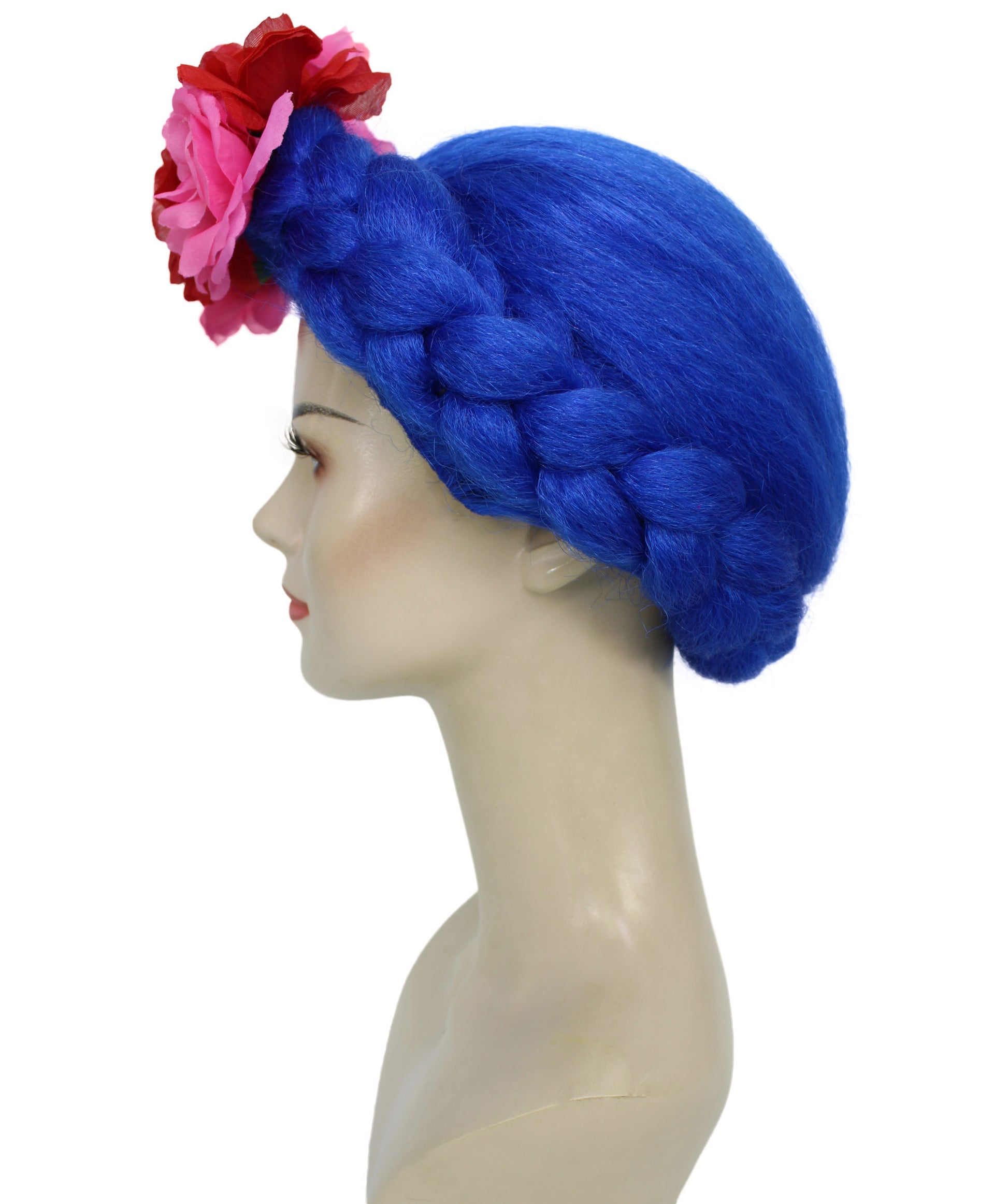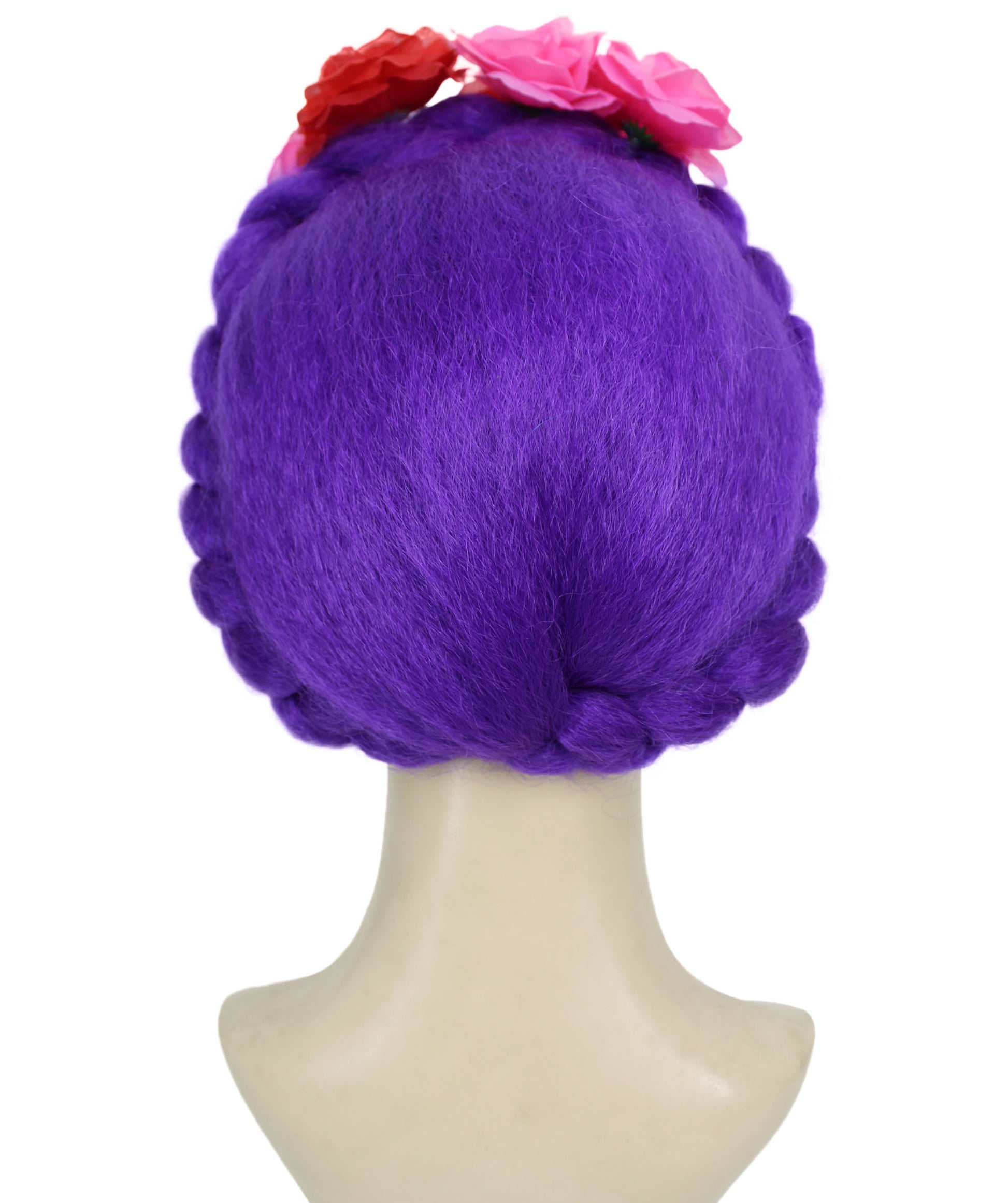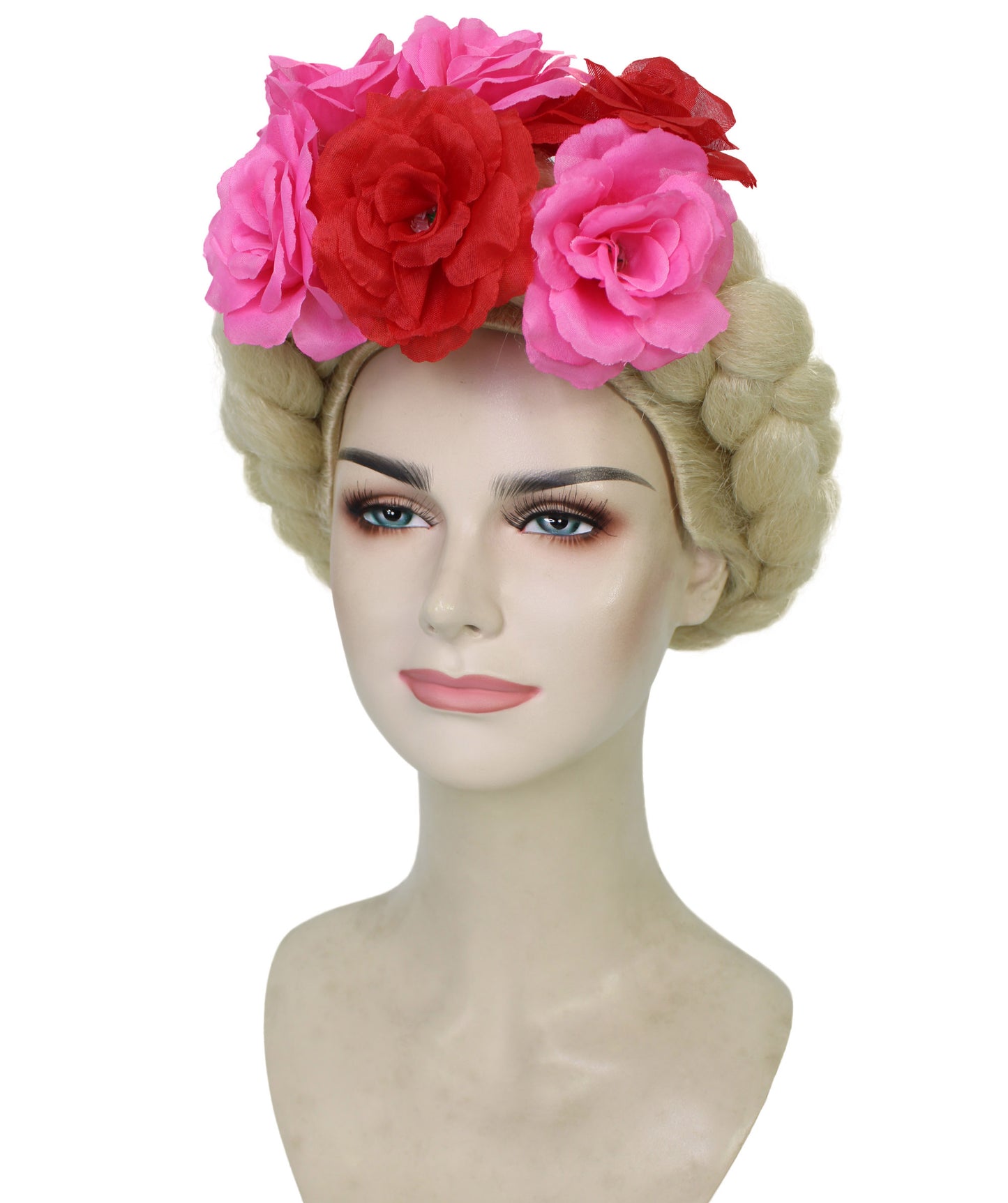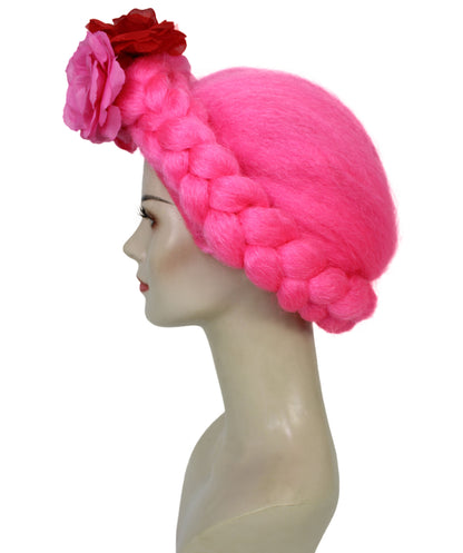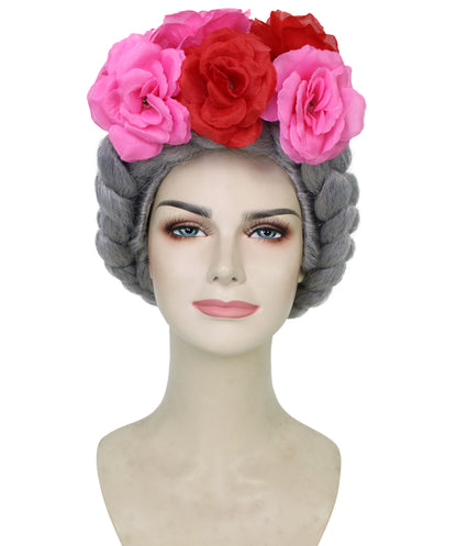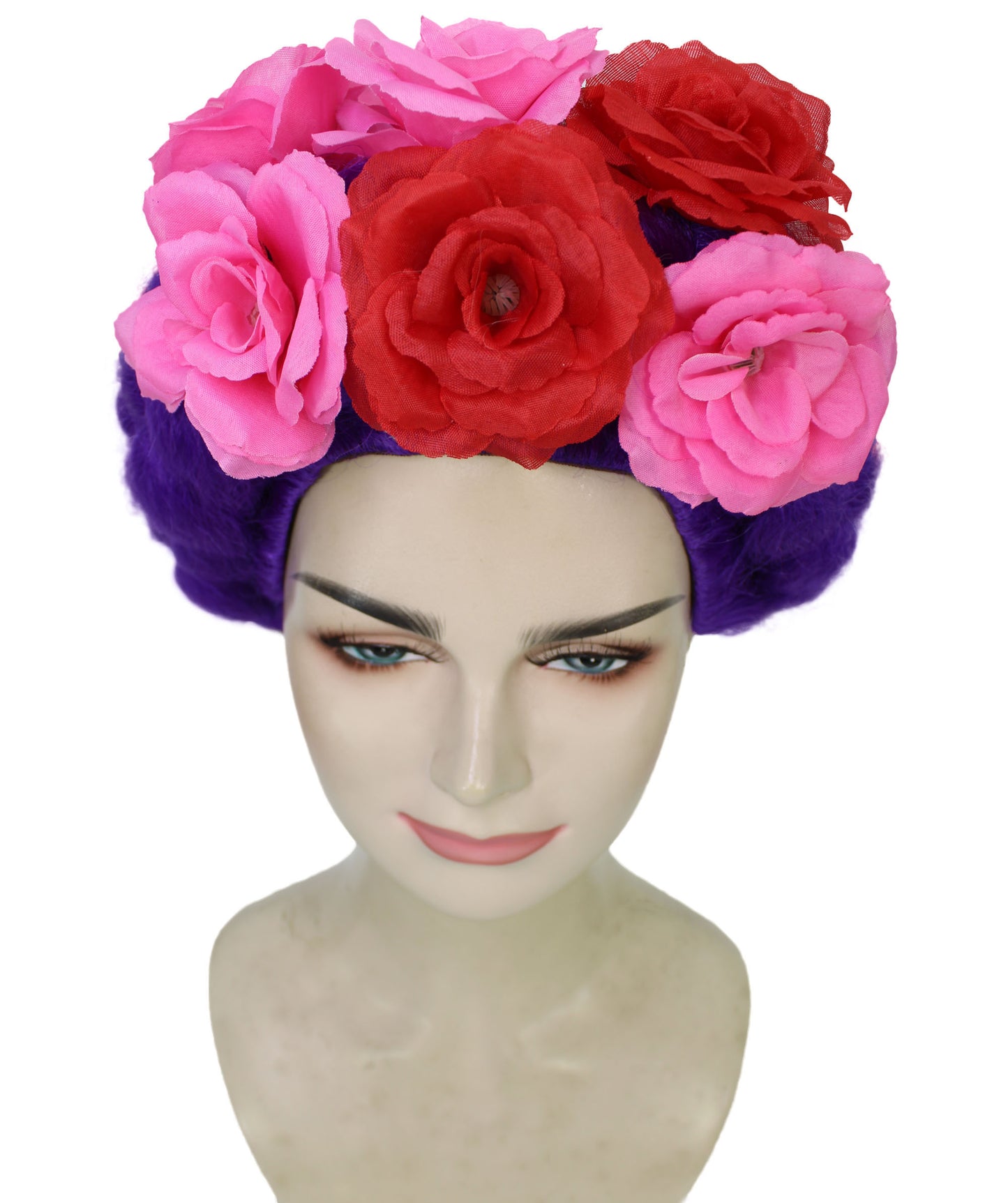 Celebrate Halloween mimicking the legendary Mexican artist Frida Kahlo with the Black Pink Floral Braided Wig - the perfect accessory for your Halloween or cosplay outfit!
