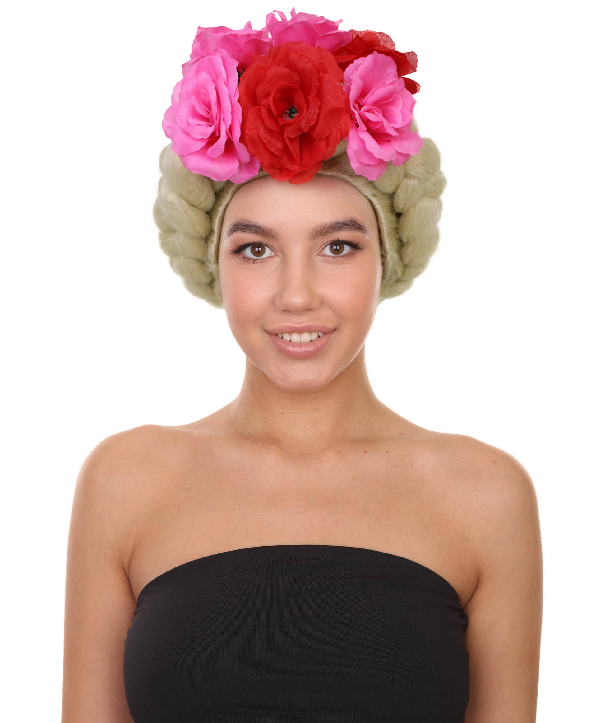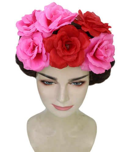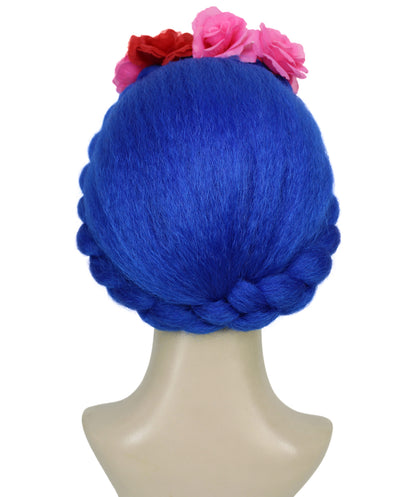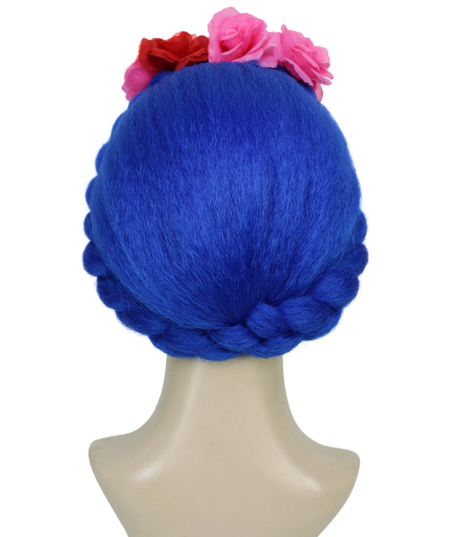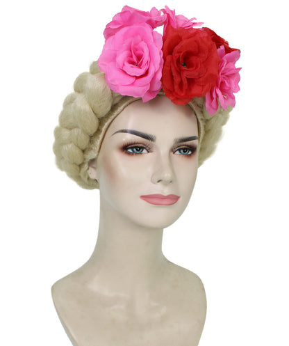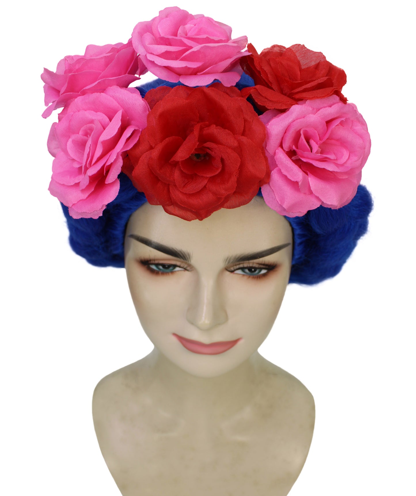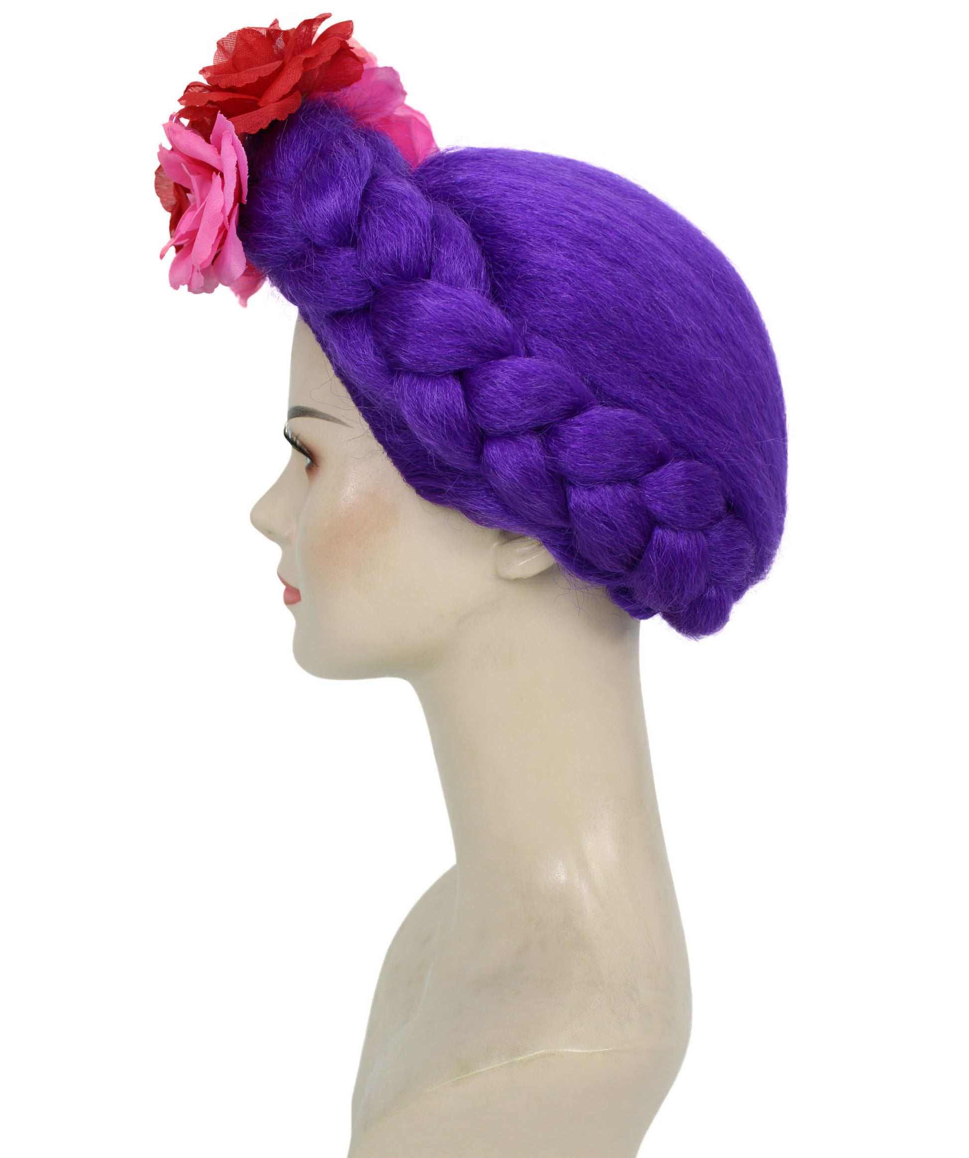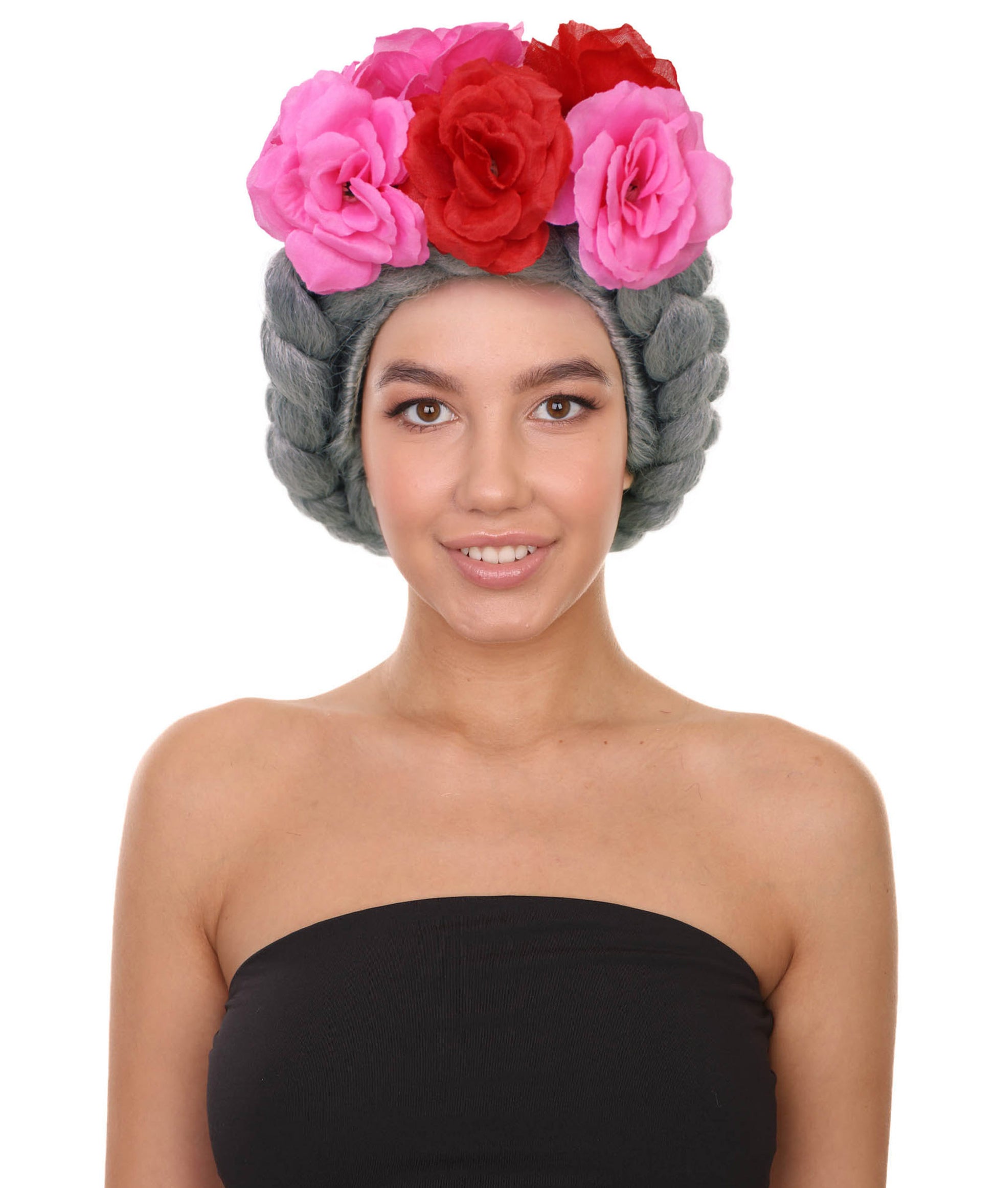 Celebrate Halloween mimicking the legendary Mexican artist Frida Kahlo with the Black Pink Floral Braided Wig - the perfect accessory for your Halloween or cosplay outfit!
