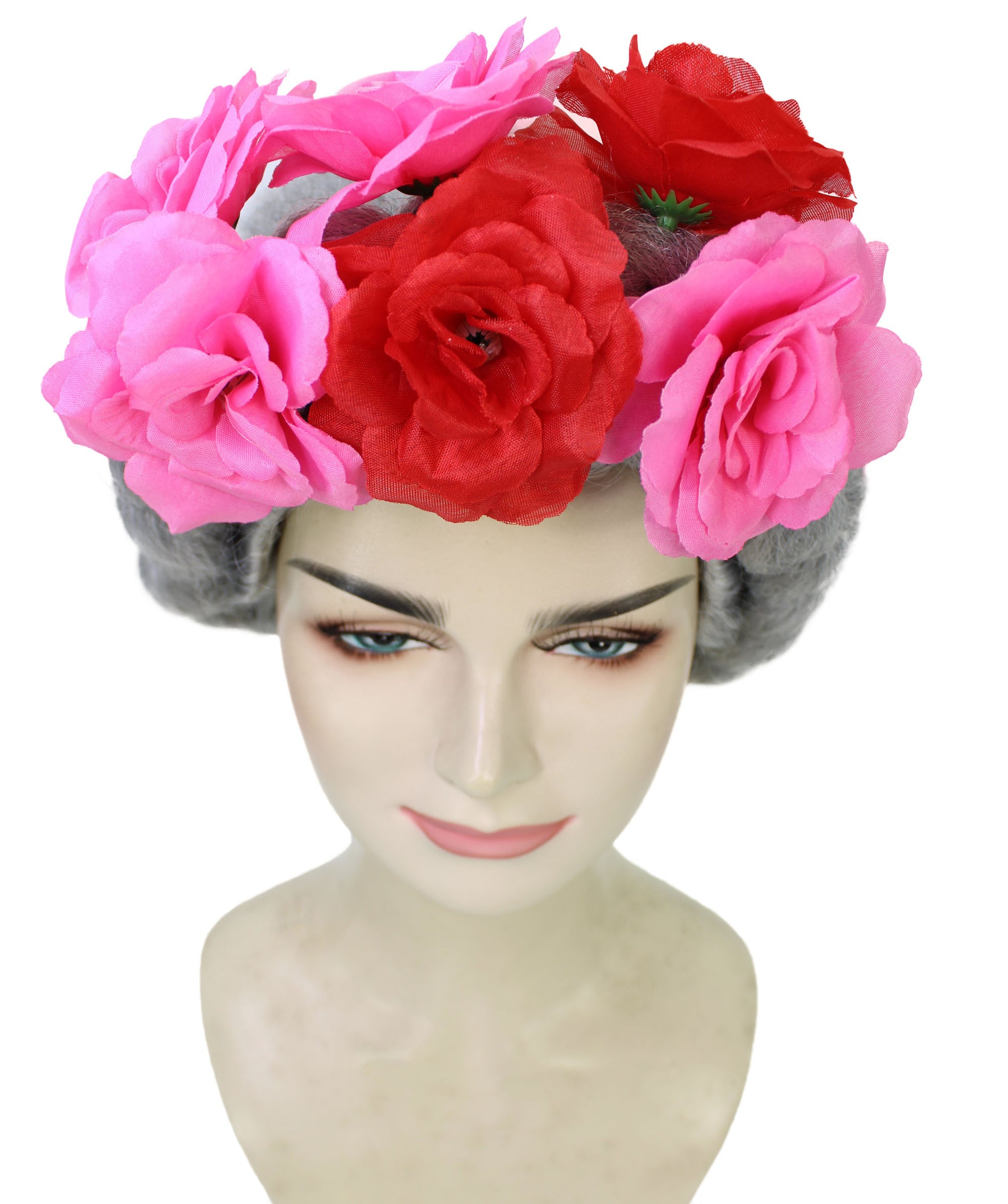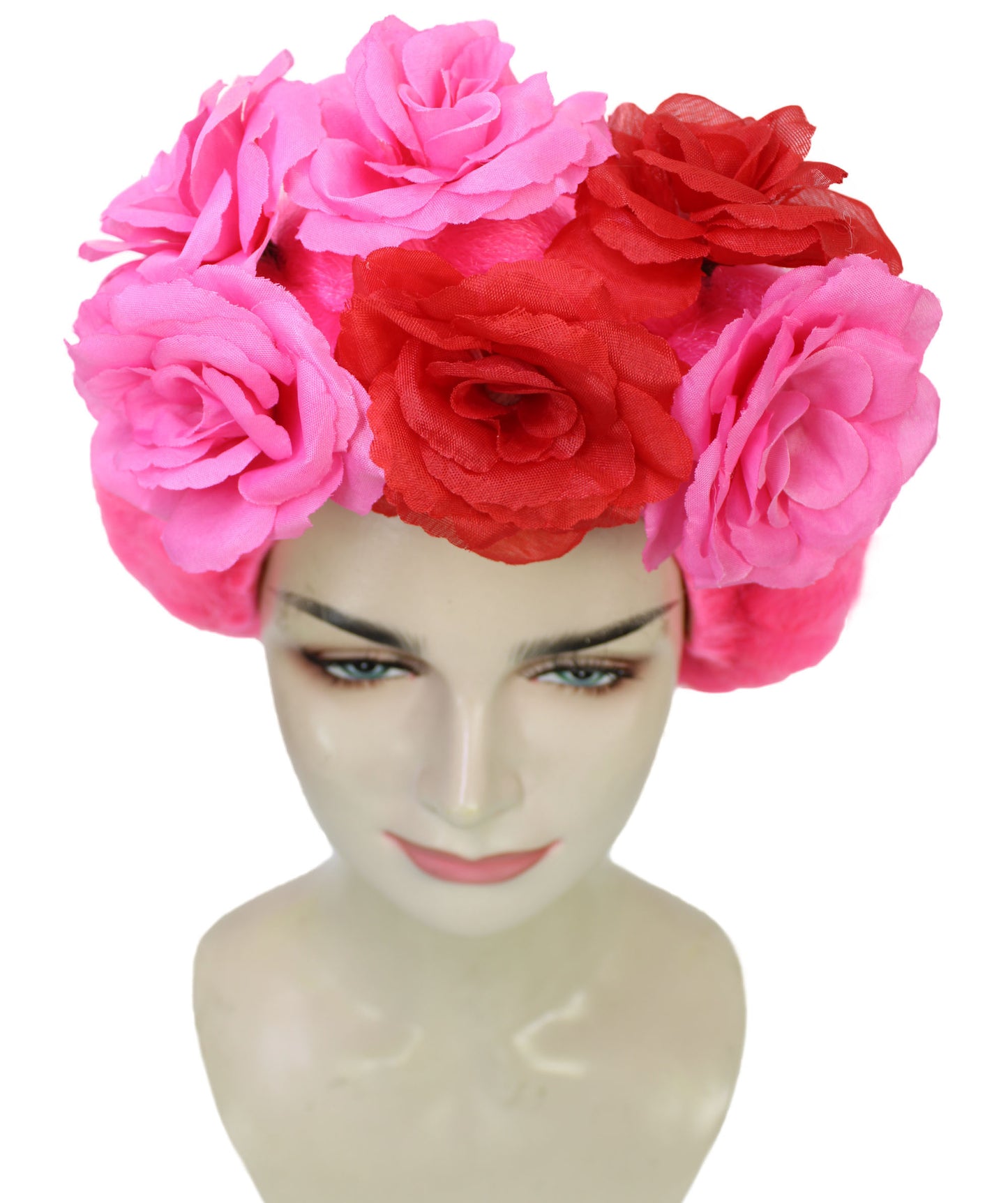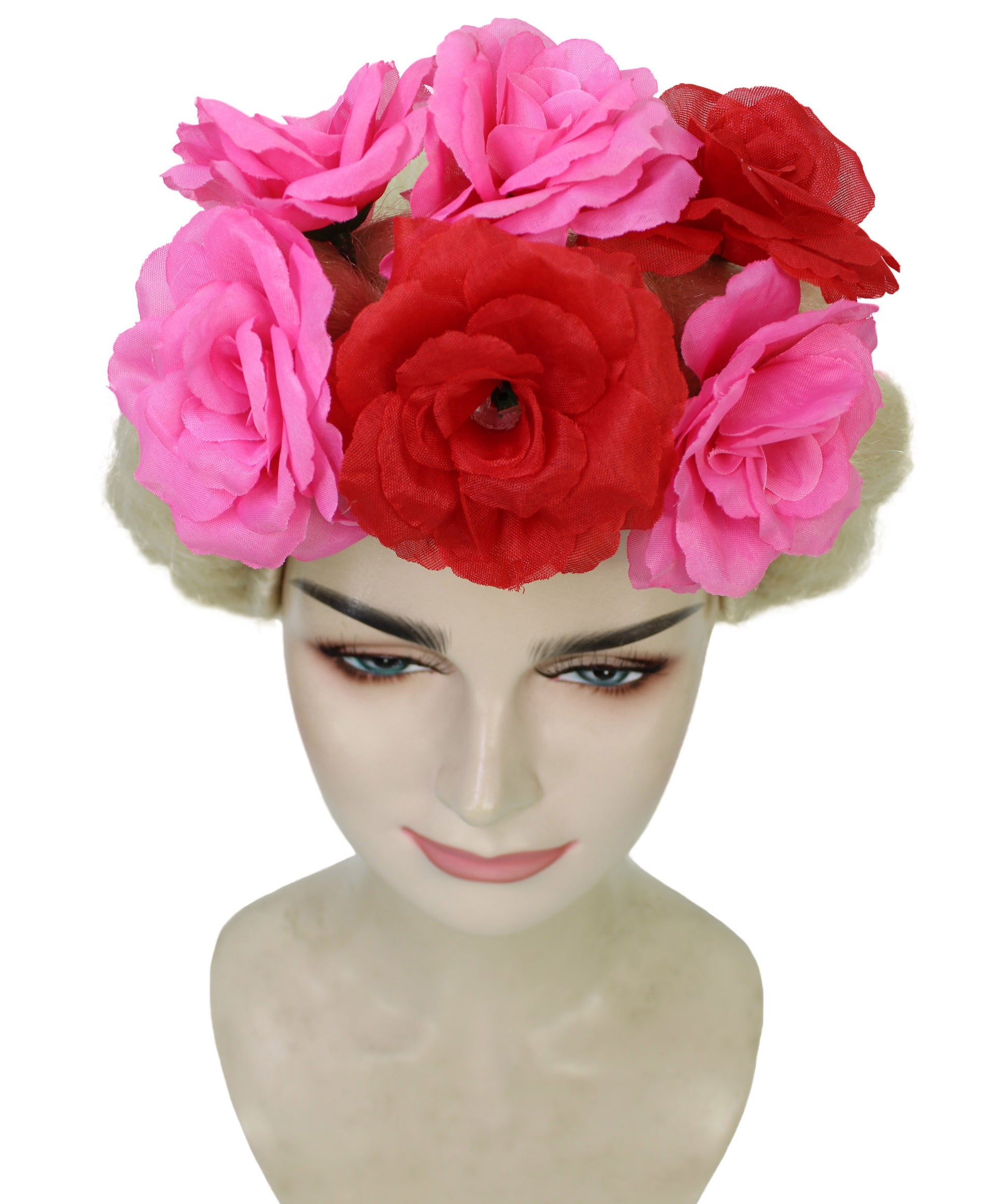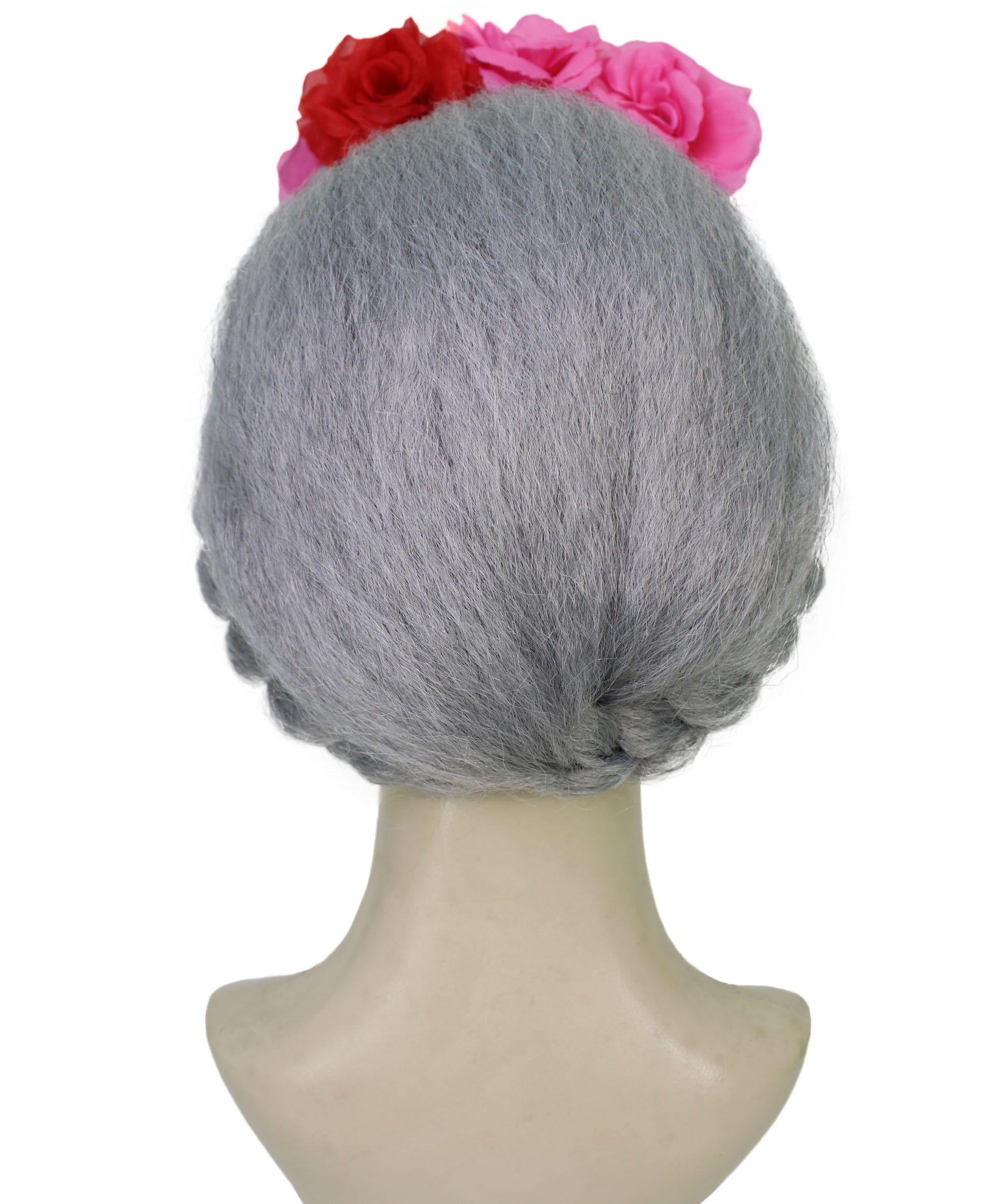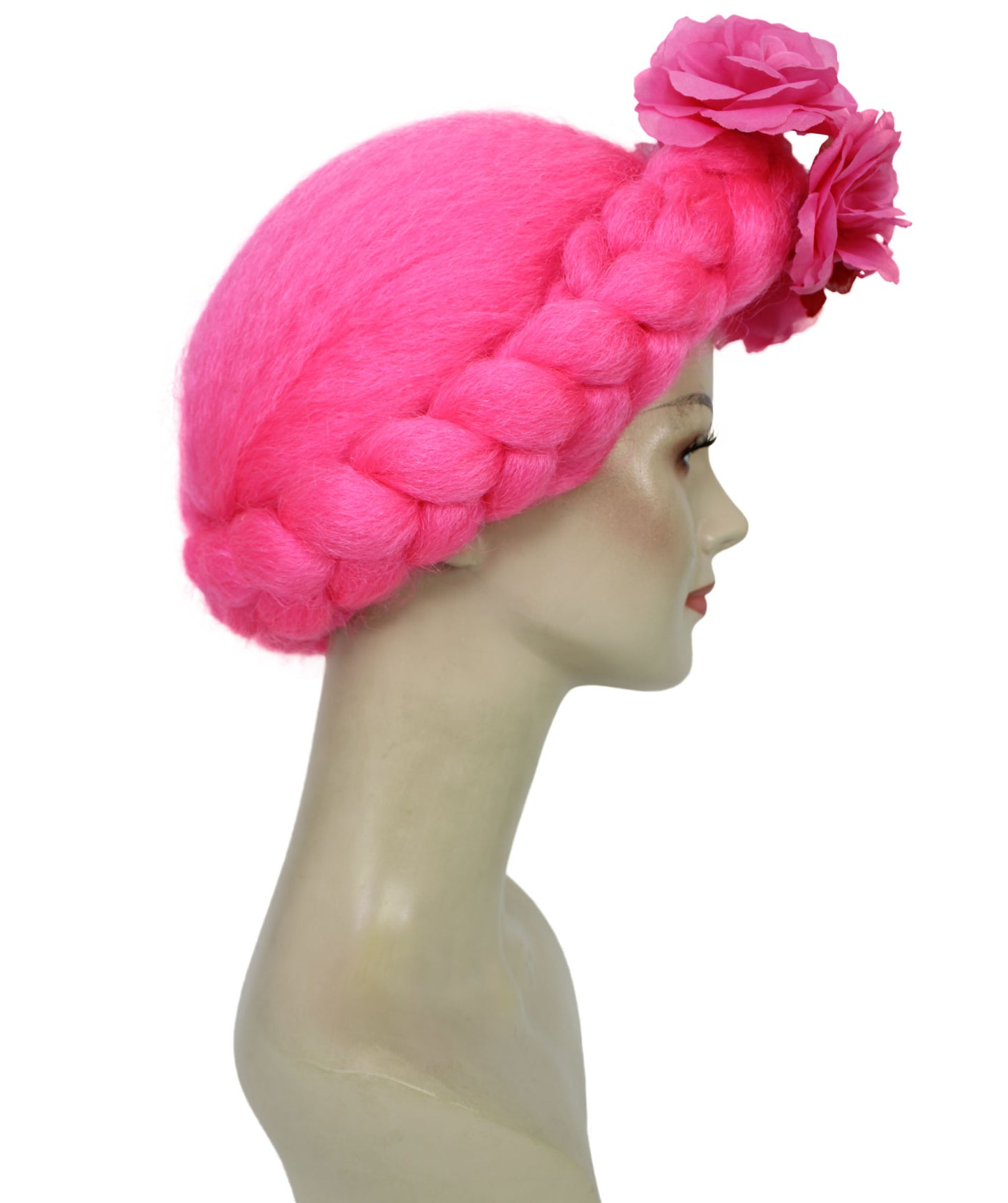 Celebrate Halloween mimicking the legendary Mexican artist Frida Kahlo with the Black Pink Floral Braided Wig - the perfect accessory for your Halloween or cosplay outfit!