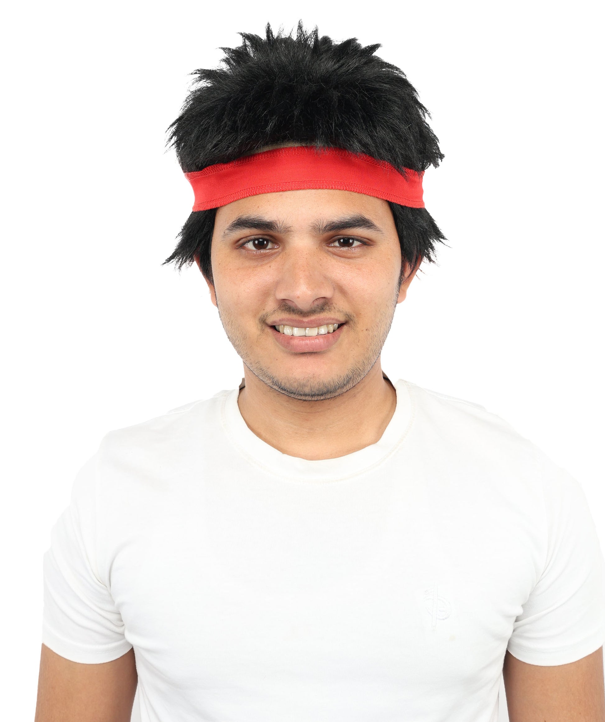 HPO Black Spiky Wig with Red Headband | Short Cosplay Hair for Men | Synthetic Fiber | Anime Outfit for Halloween, Events & Roleplay