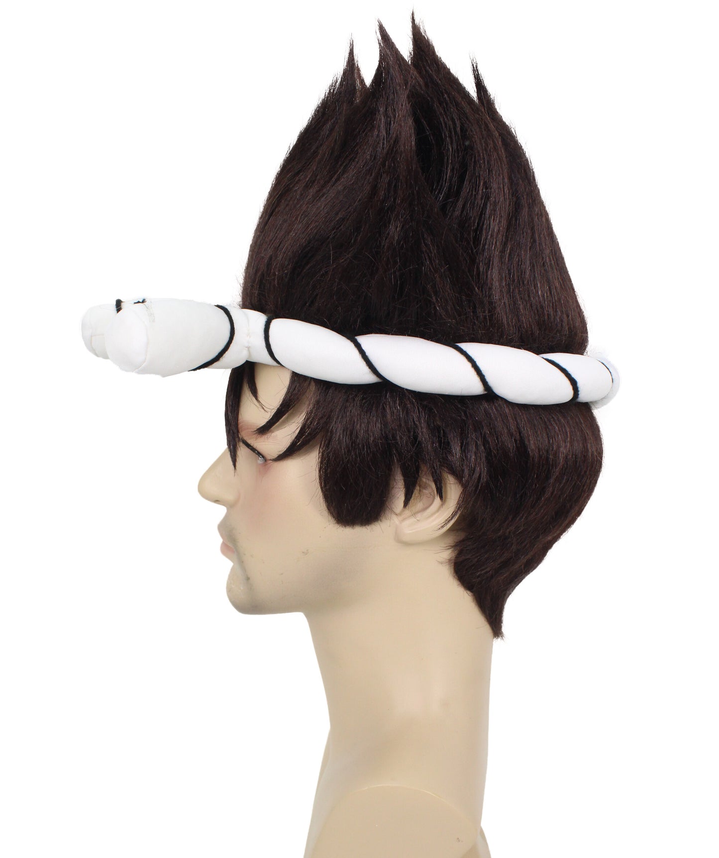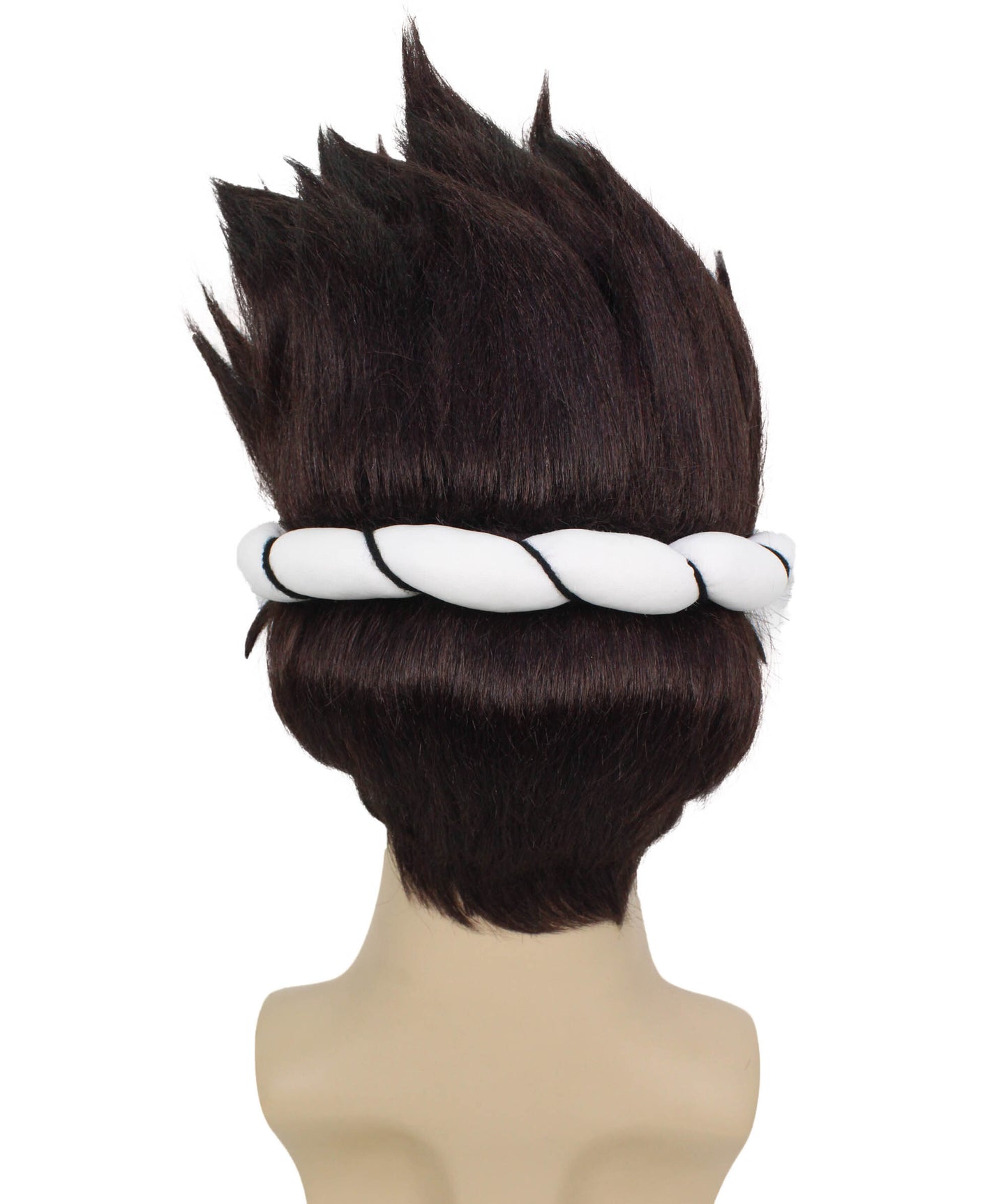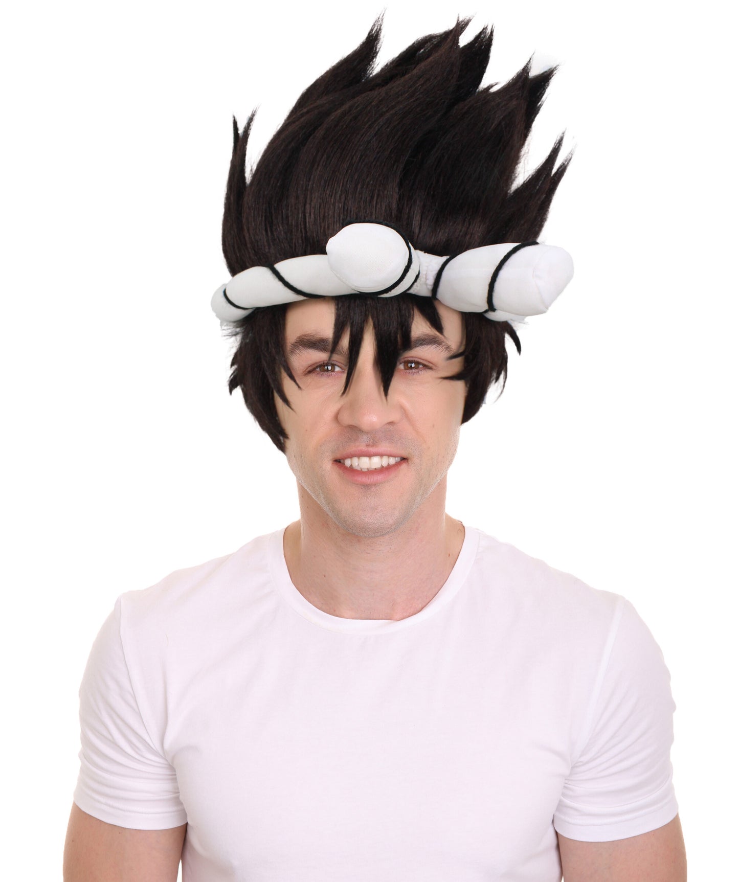 HPO Men’s Black Spiky Wig with White Knotted Headband | Suitable for Halloween | Premium Breathable Capless Cap