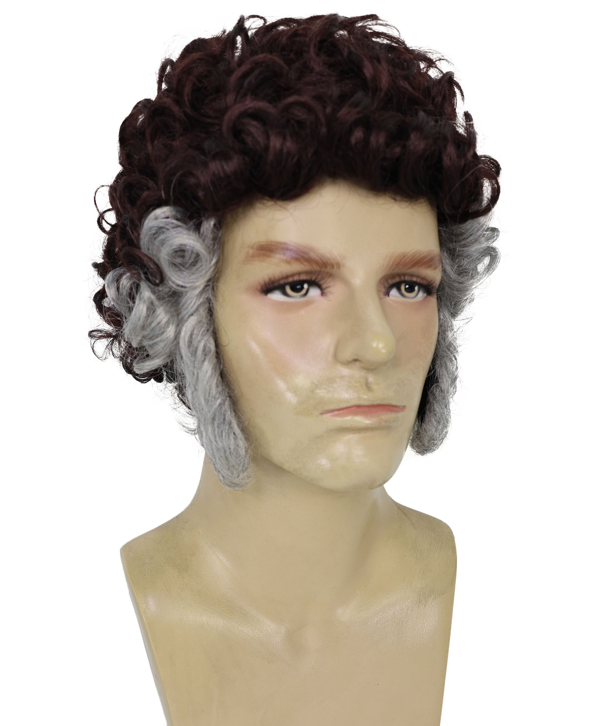 The tight brown curls are voluminous and fun, while the exaggerated silver-grey sideburns on both sides add a bold comedic flair. Whether you’re channeling a throwback TV personality, a campy pastor, or just going for an outrageously memorable costume, this Retro Wig Set gives you the ideal hair to match the vibe.