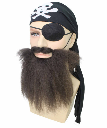HPO Men's Black Beard and Mustache, Perfect for Halloween , Flame-retardant Synthetic Material