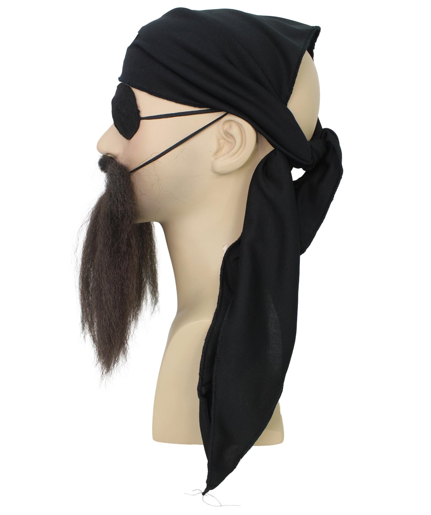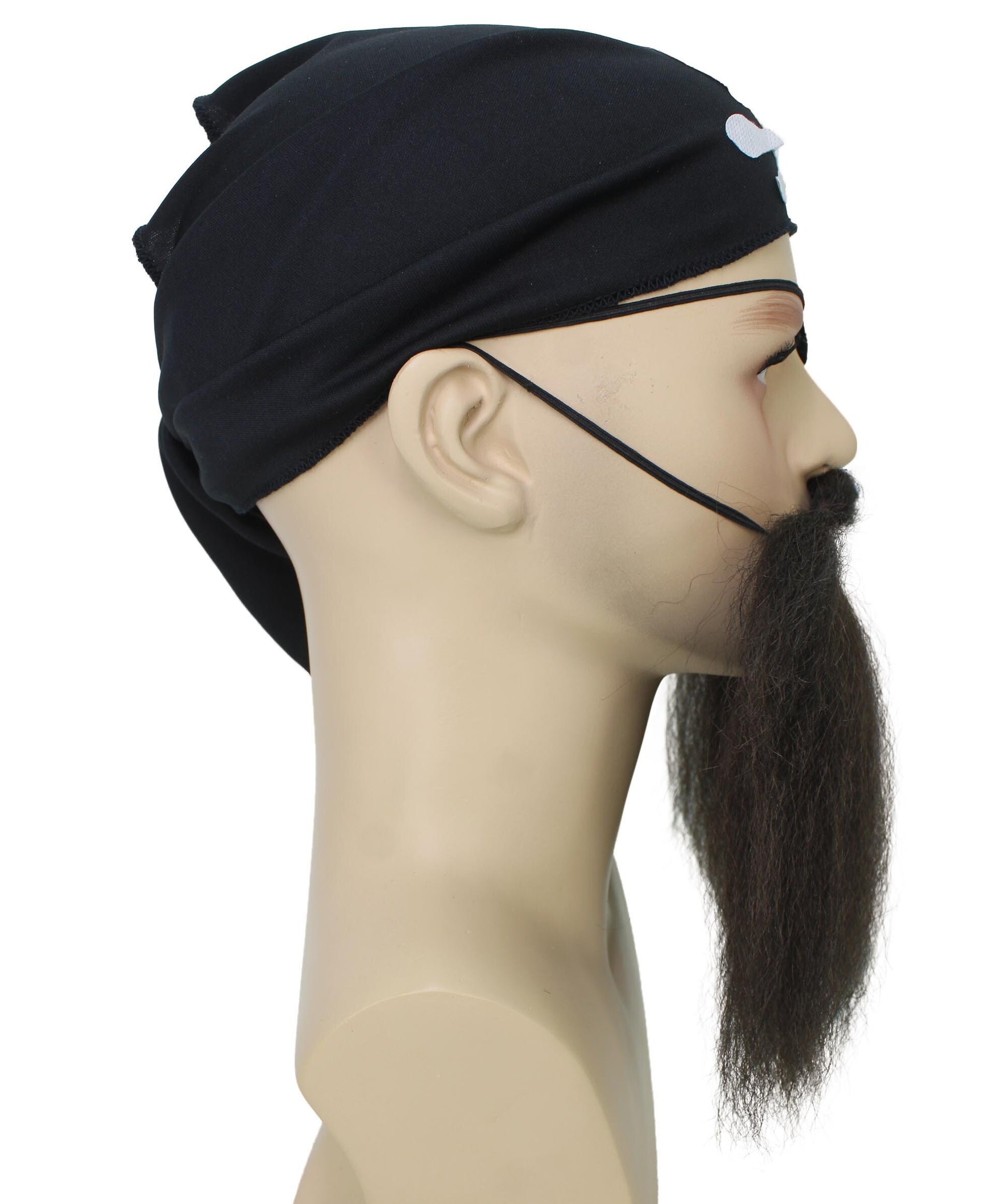 Get a new look with this striking Men's Black Beard and Mustache set that exudes an air of mystery and intrigue. This beard set features a long, machine-made beard paired with a dramatic mustache, both in a bold and captivating black color. This beard attached with elastic straps that secured the beard in place