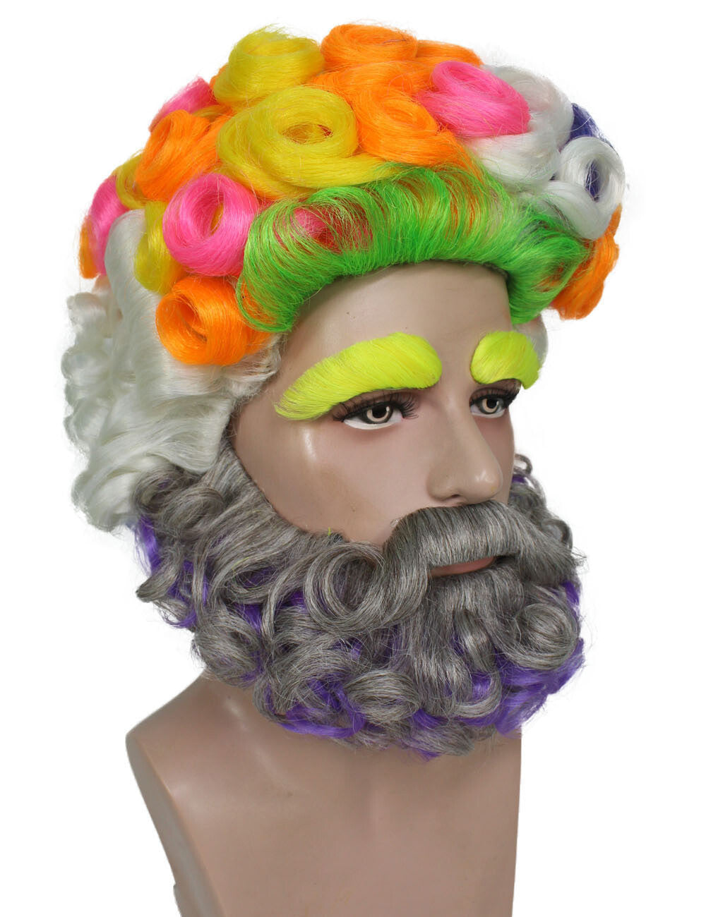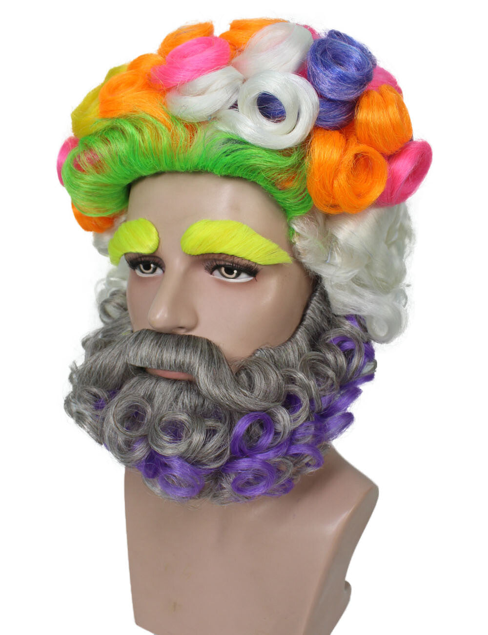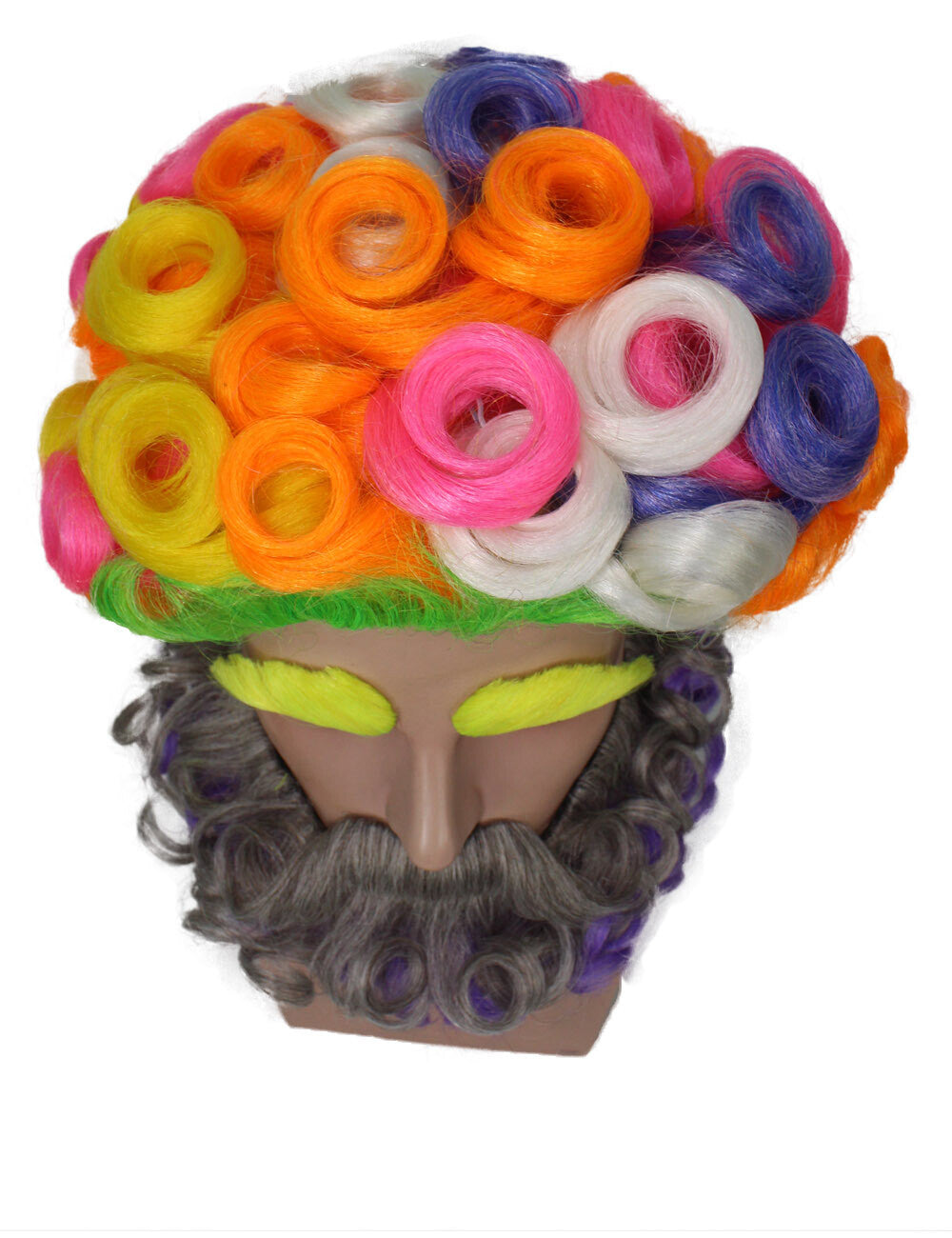 HPO Men's Colorful Afro Wig With Beard & Mustache Set, Perfect For Halloween, Flame-Retardant Synthetic Fiber