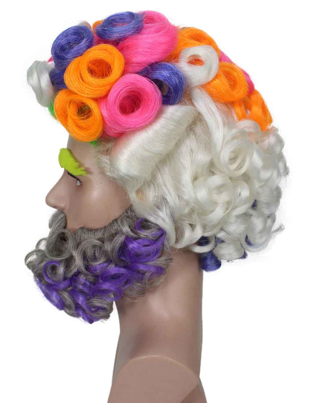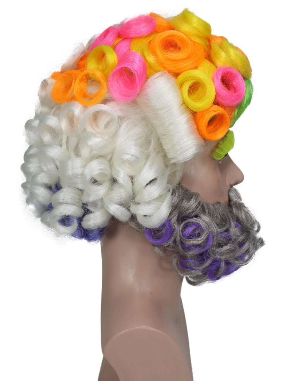 Your Halloween transformation is going to get colorful if you have our Multicolor Afro Wig with a beard and mustache set. This synthetic cosplay wig ensemble not only guarantees a head-turning afro look but also prioritizes safety during your festive celebrations. Indulge in the spirit of Halloween as you effortlessly adorn this stylish and comfortable wig. The meticulous attention to detail extends to the included beard and mustache set, ensuring an authentic and charismatic ensemble for the spookiest night of the year. Set the party ablaze with our multicolor Afro Wig. It's more than just a wig; it's your key to a Halloween metamorphosis that will have everyone talking. Get ready to be the life of the celebration, adorned in flame-retardant synthetic fiber finesse. The wig comes with an adjustable strap to fit all head sizes, and the beard and mustache come with comfortable fitting.