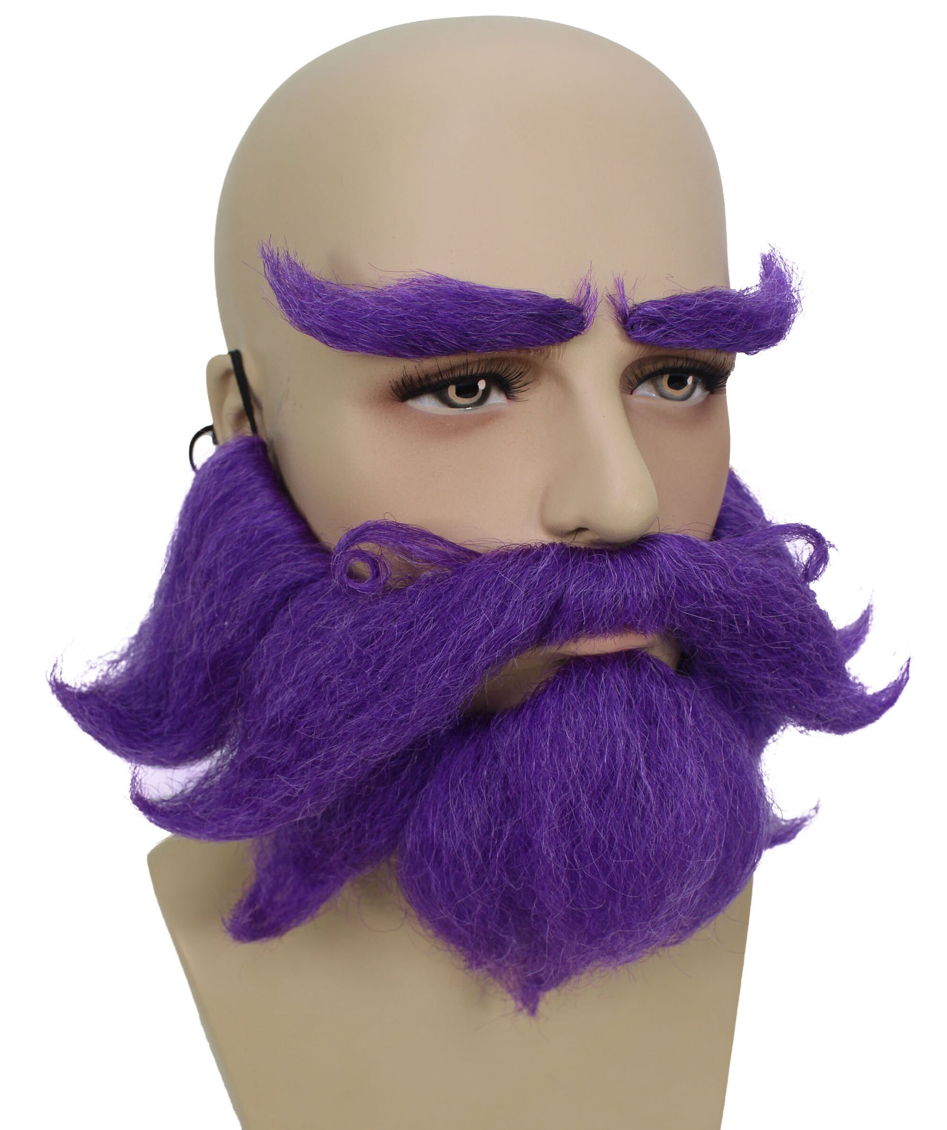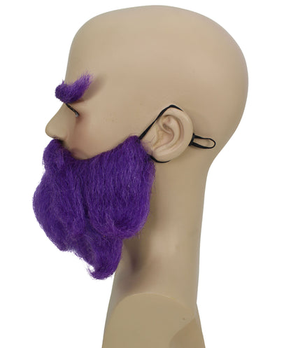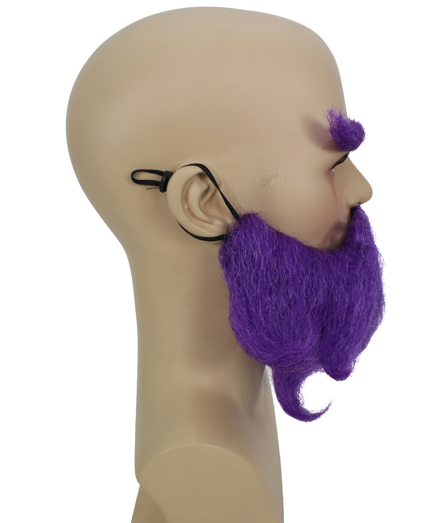 HPO Men's Cowboy Cartoon Purple Mustache and Beard,Perfect for Halloween, Flame-retardant Synthetic Fiber