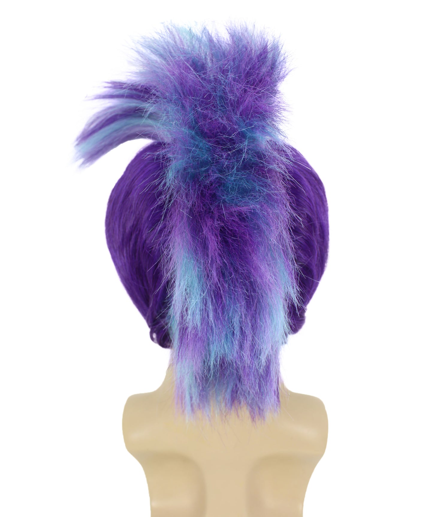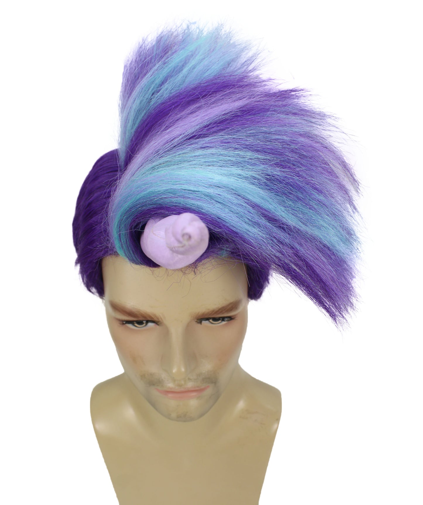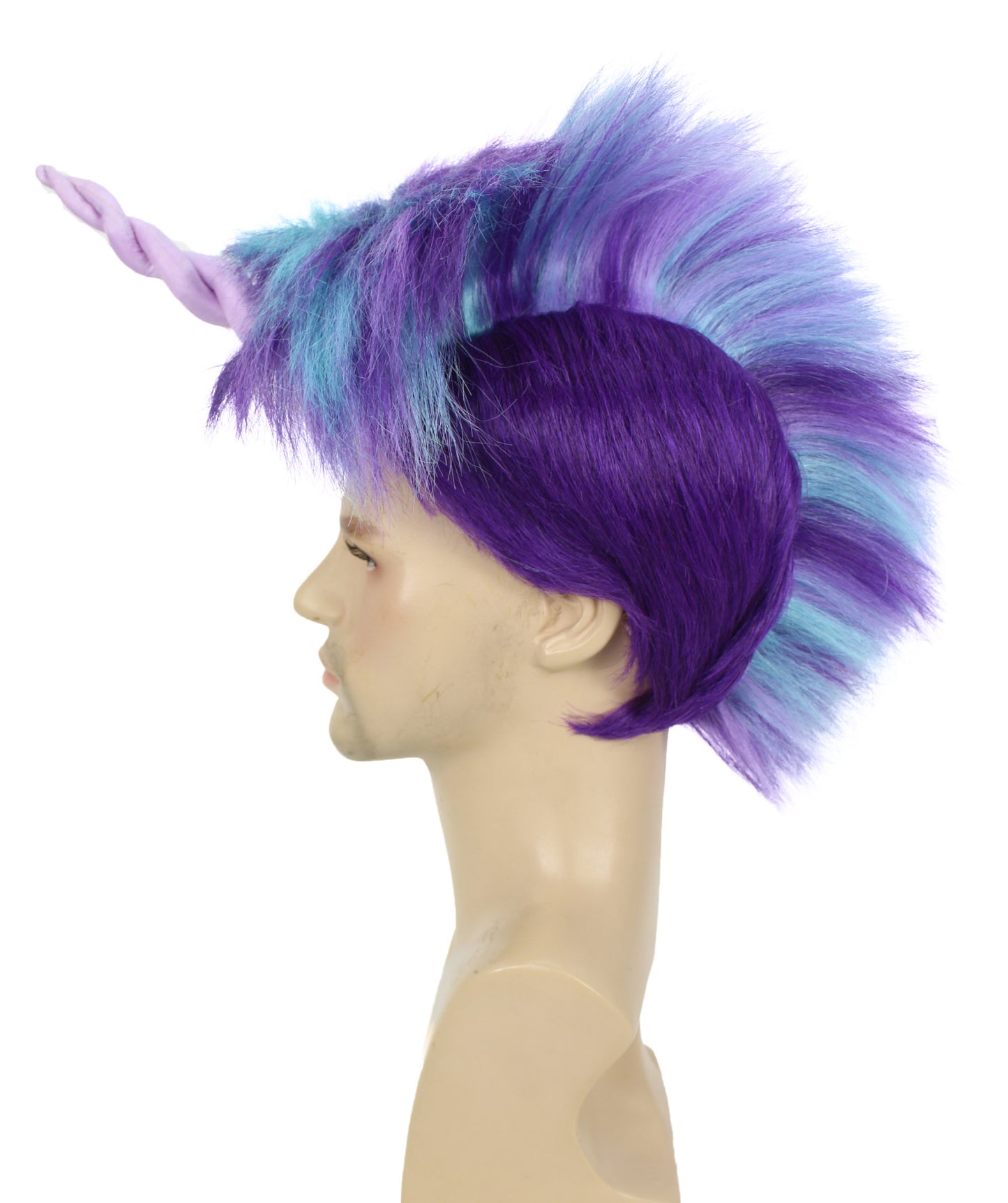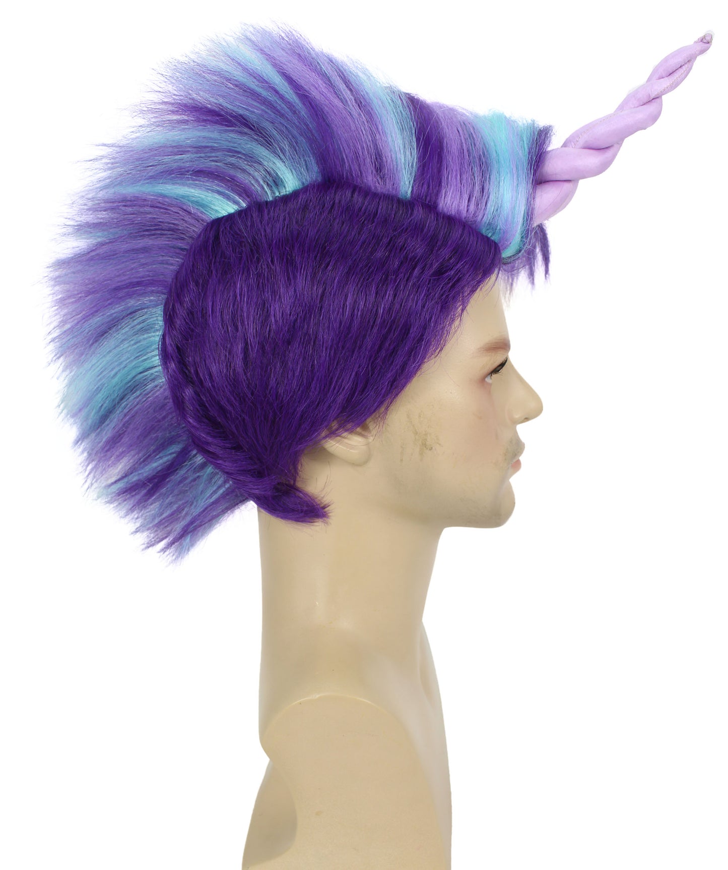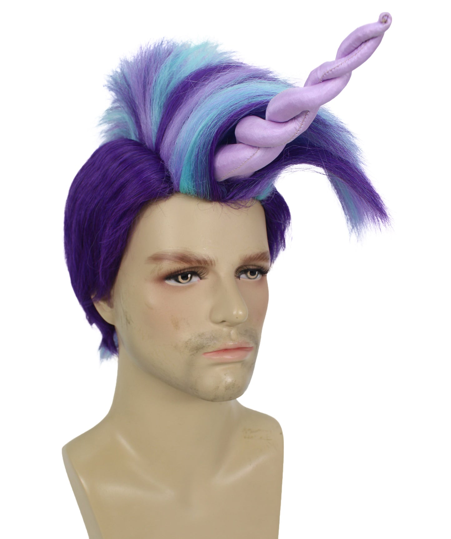HPO Men's Fairytale Purple & Blue Spiky Wig with Horn I Unicorn Halloween Wig I Flame-retardant Synthetic Fiber