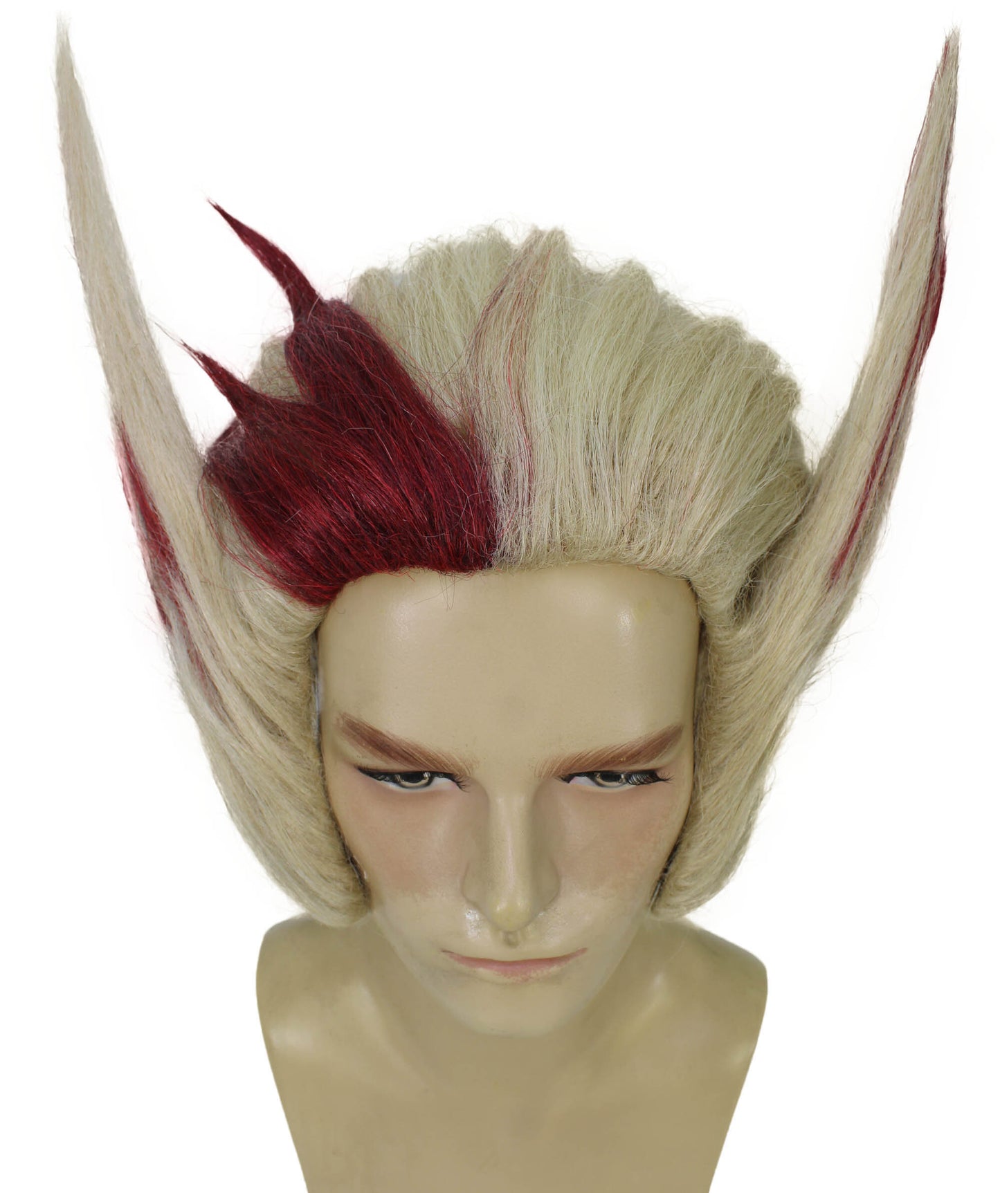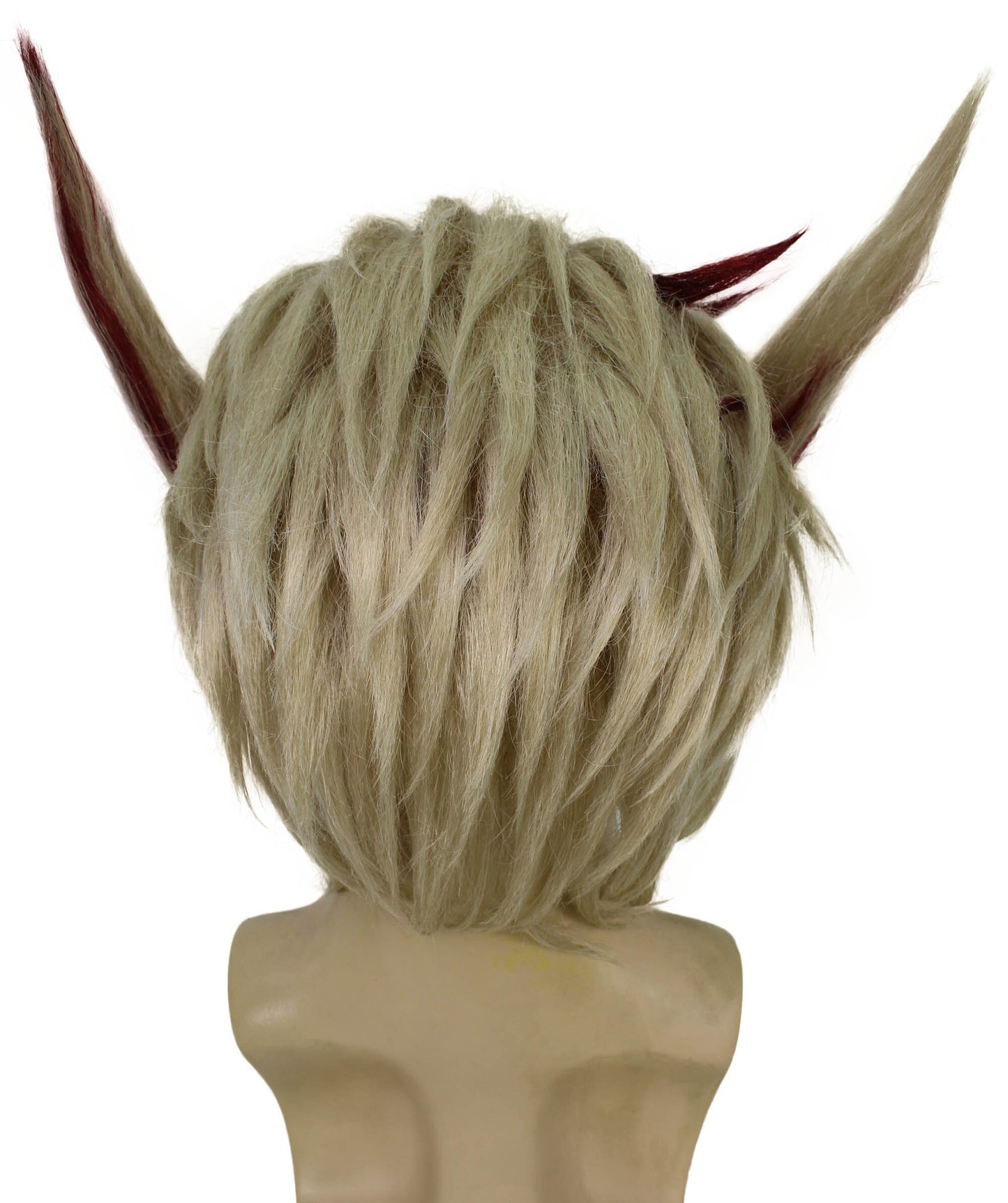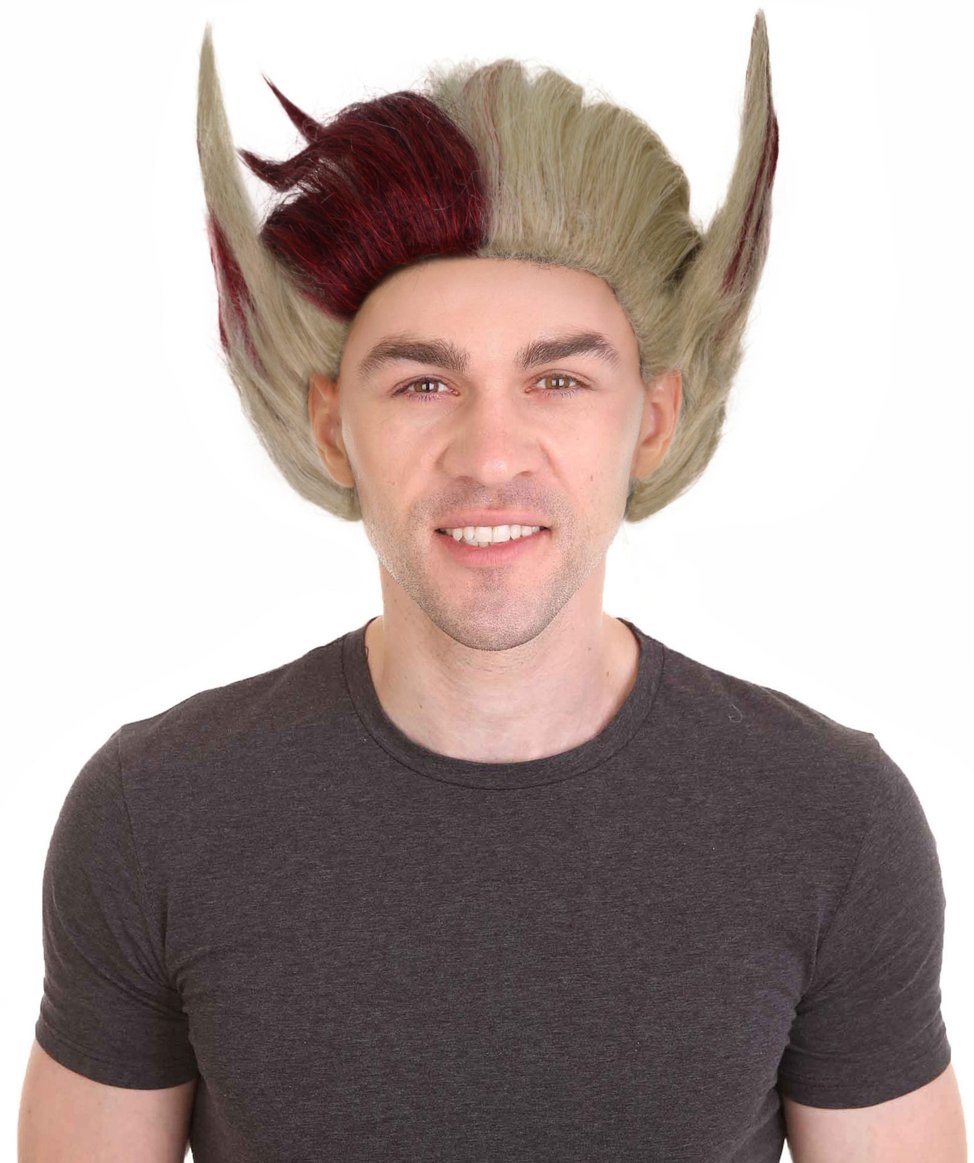 HPO Men's Gaming Character Silver Mix Red Spiky Wig with Two Ears, Perfect for Halloween,Flame-retardant Synthetic Fiber
