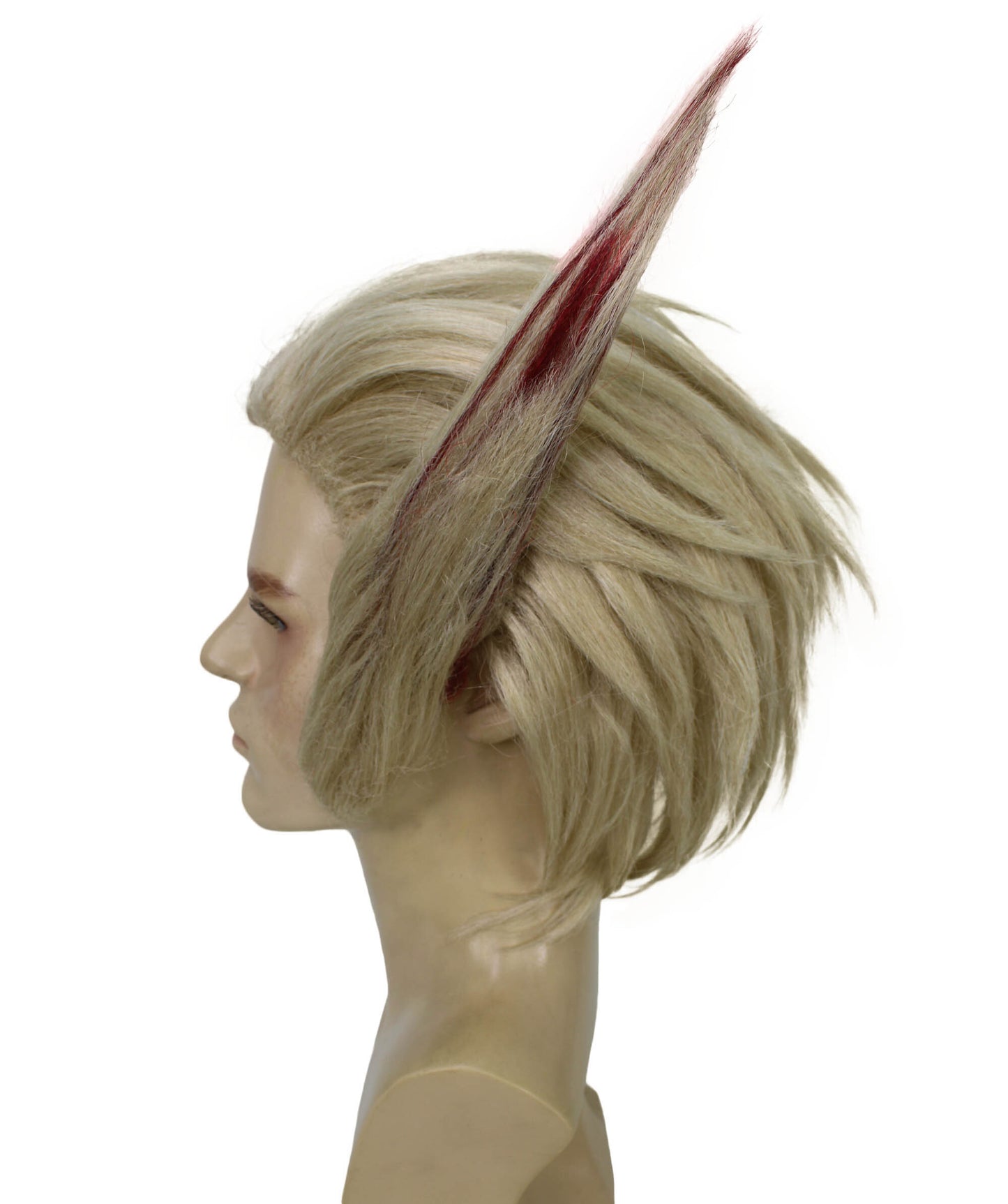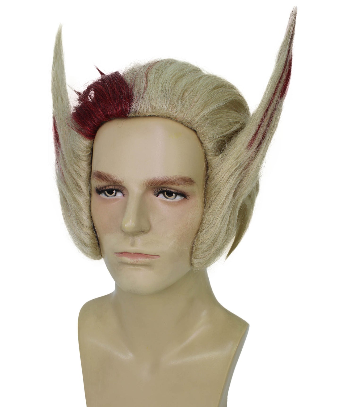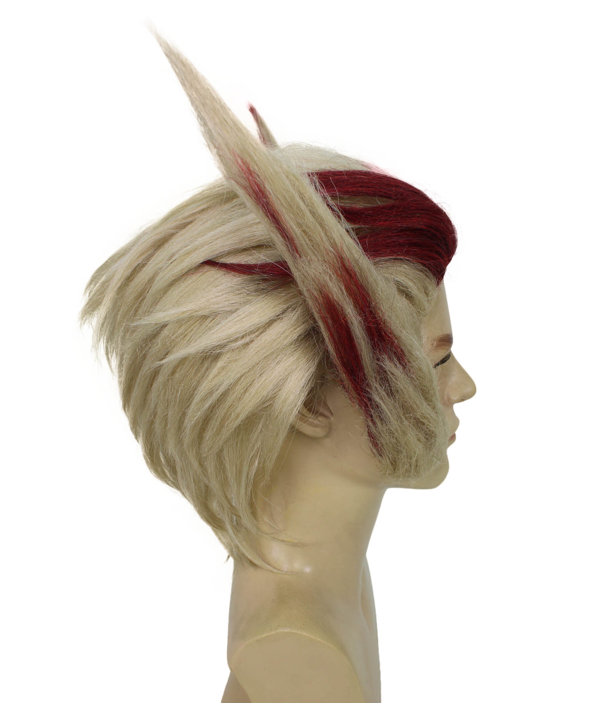 HPO Men's Gaming Character Silver Mix Red Spiky Wig with Two Ears, Perfect for Halloween,Flame-retardant Synthetic Fiber