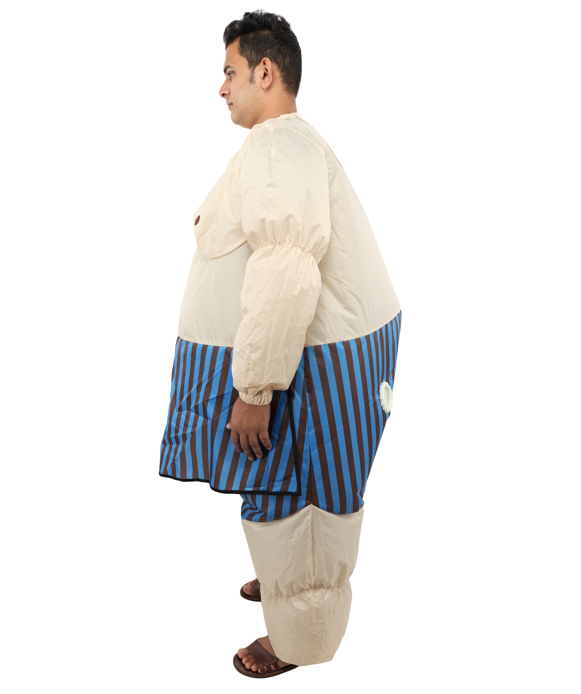 HPO Men's Inflatable Wrestler Costume | Funny Sumo-Style Blow-Up Suit with Built-In Fan | Ideal for Halloween & Cosplay Parties