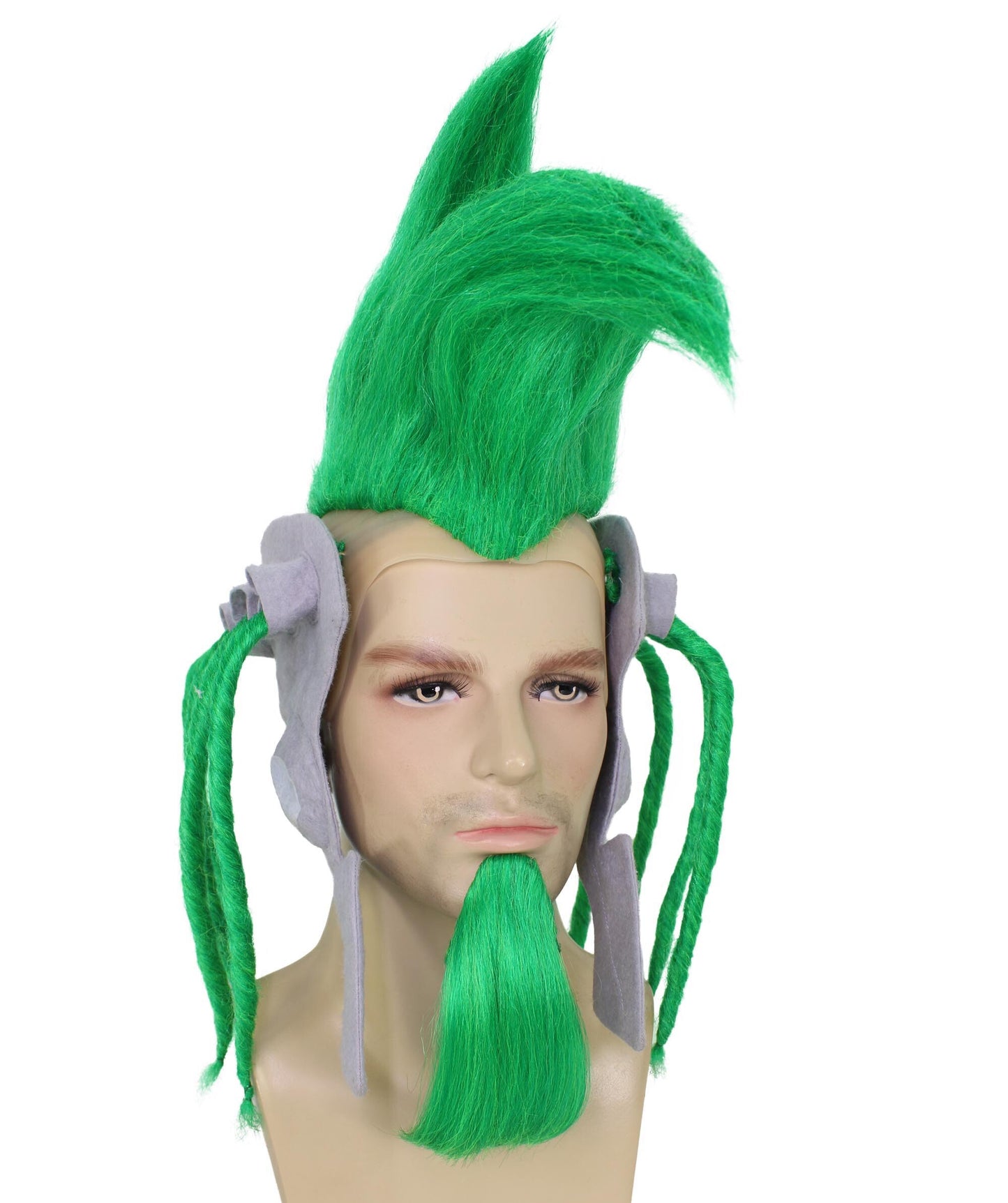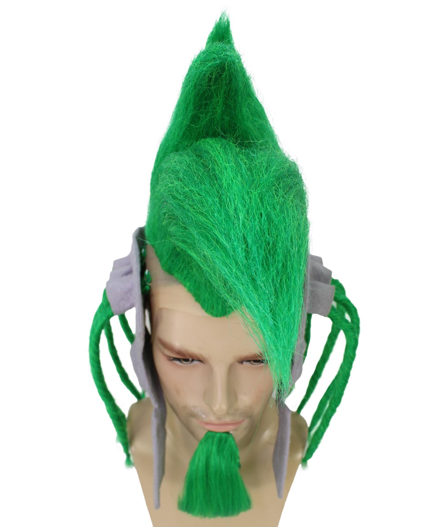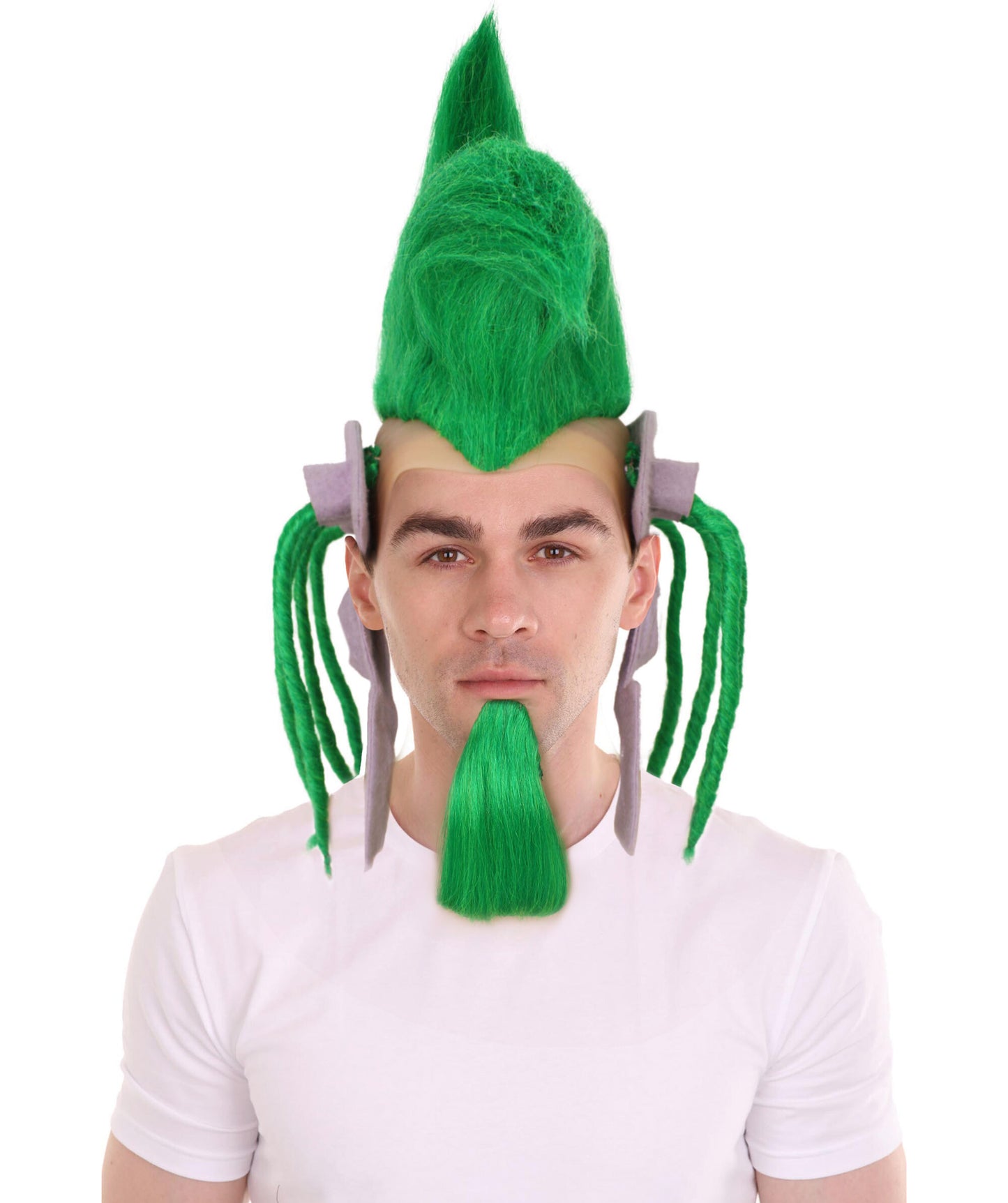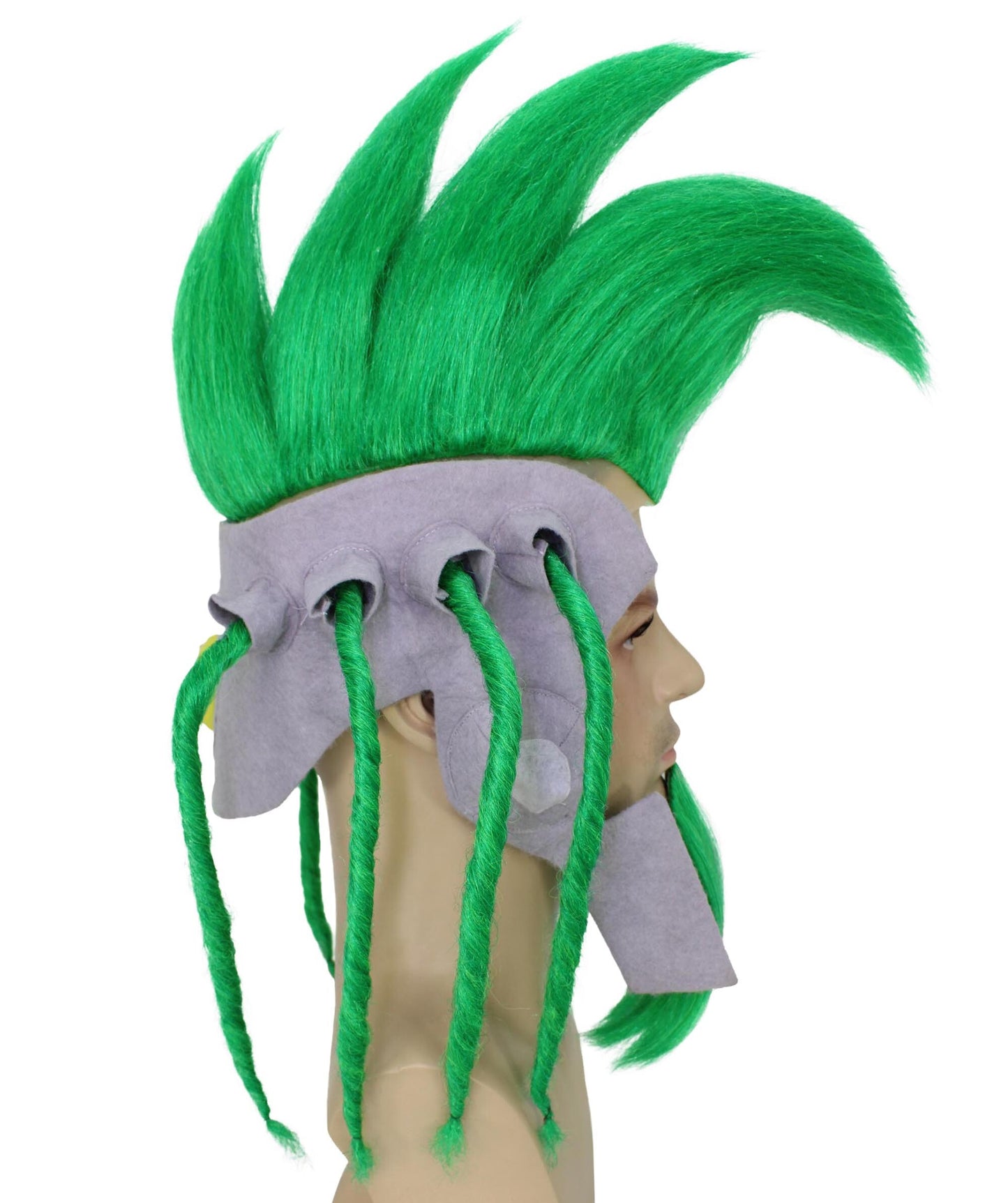 HPO Men's Musical Video Game Antagonist Green Spiky Wig | Suitable for Halloween | Flame-retardant Synthetic Fiber