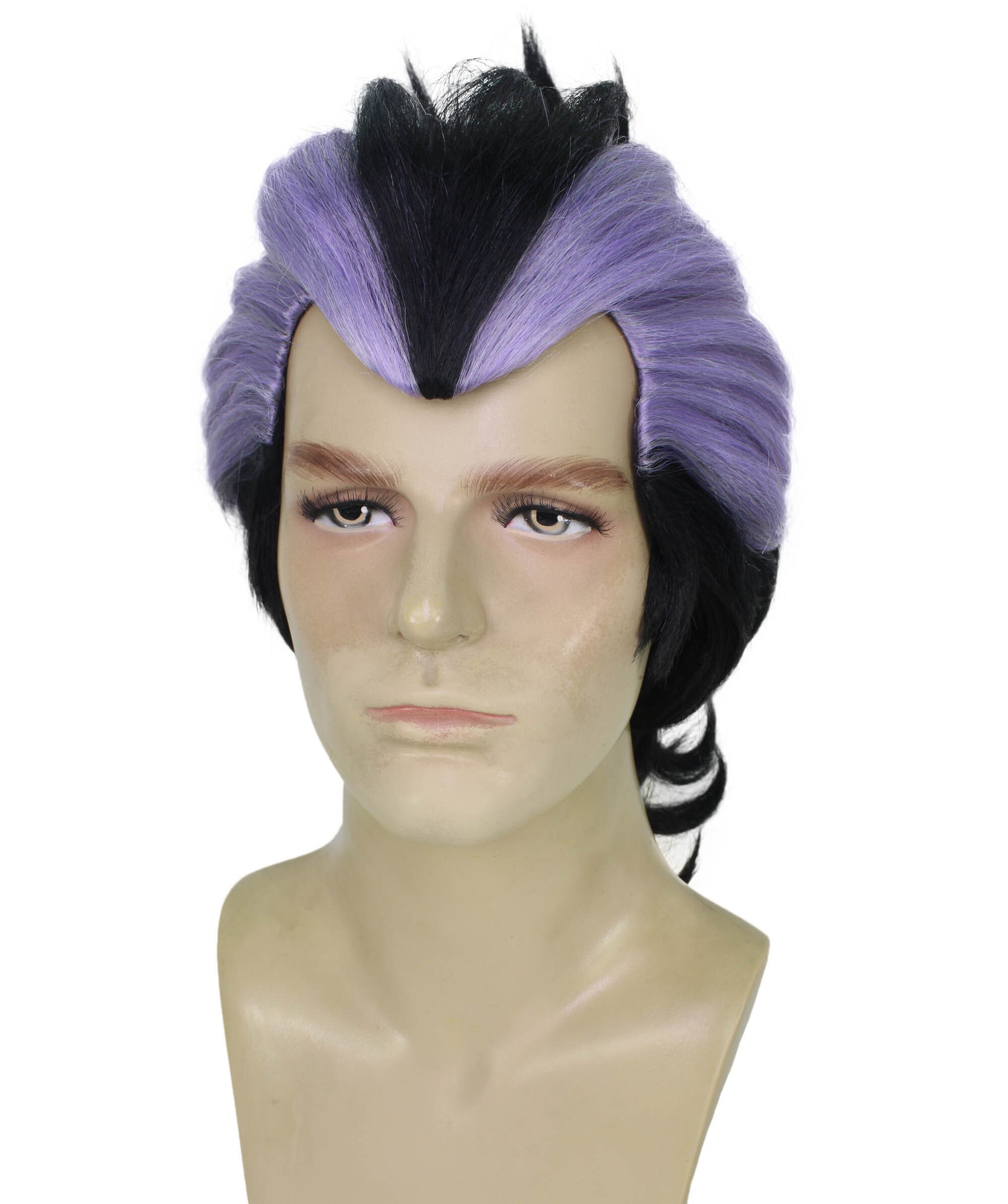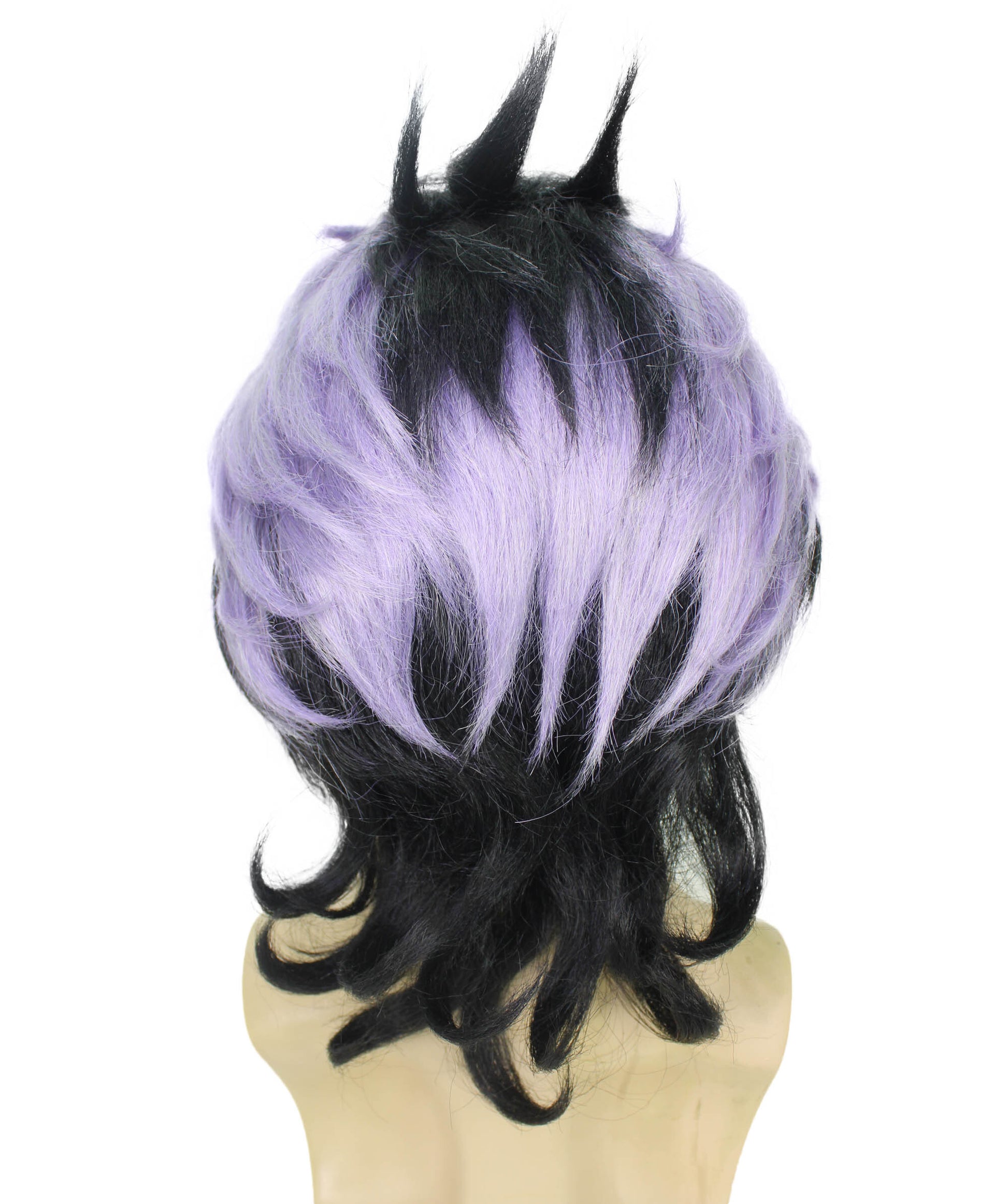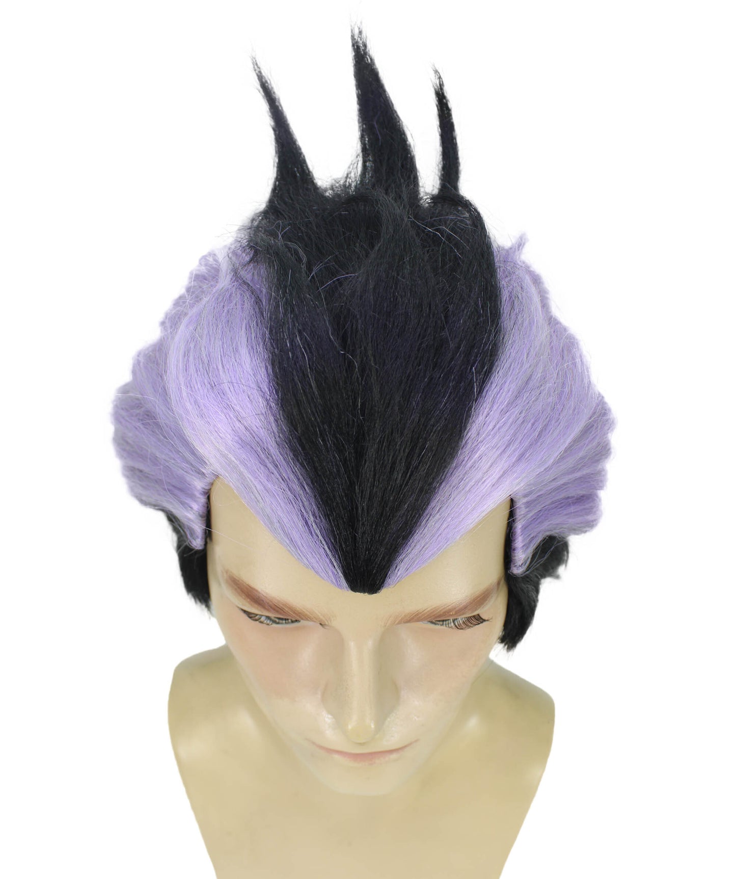 HPO Men's Protective Anime Character Purple Black Spiky Wig| Perfect for Halloween|Flame-retardant Synthetic Fiber