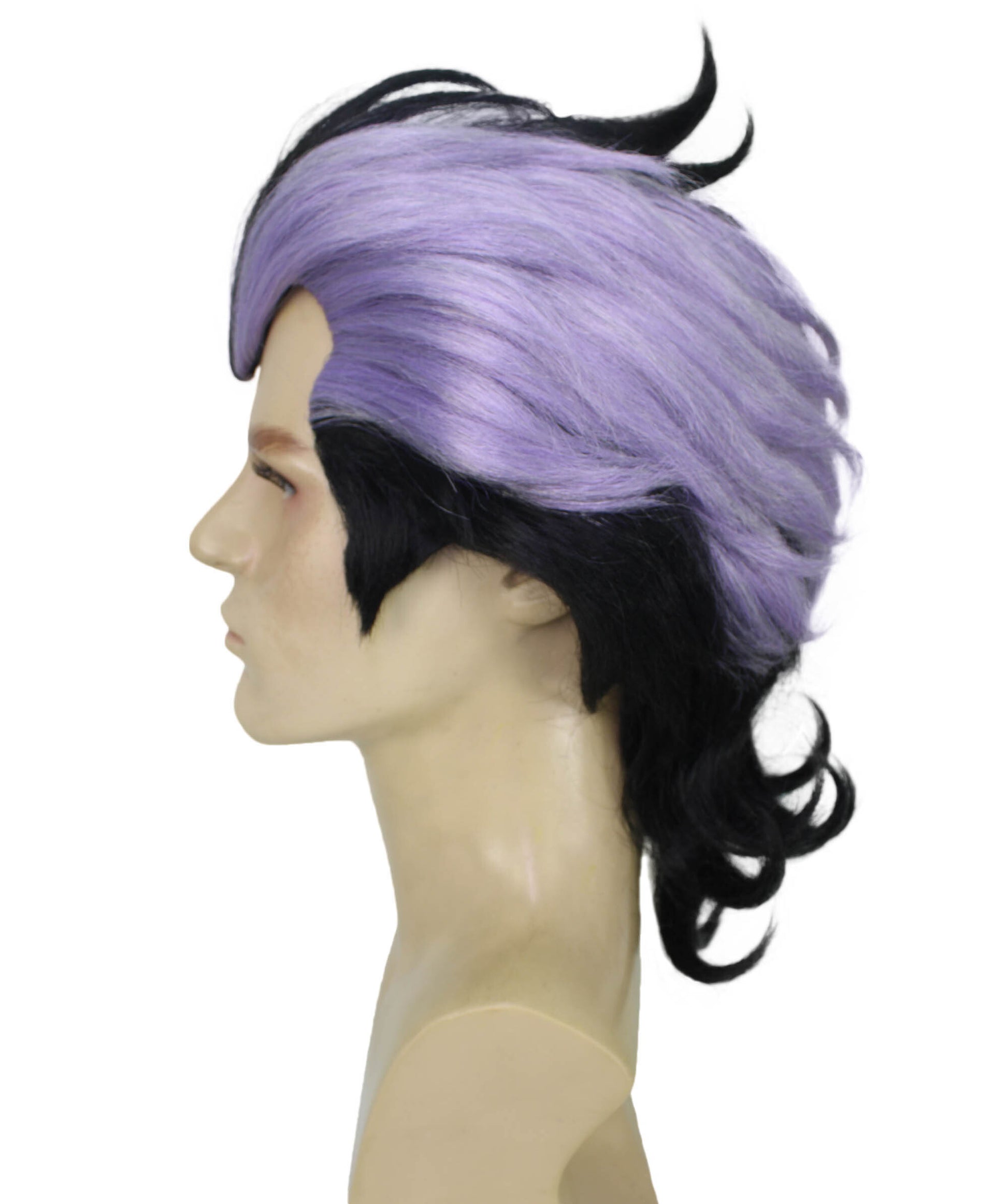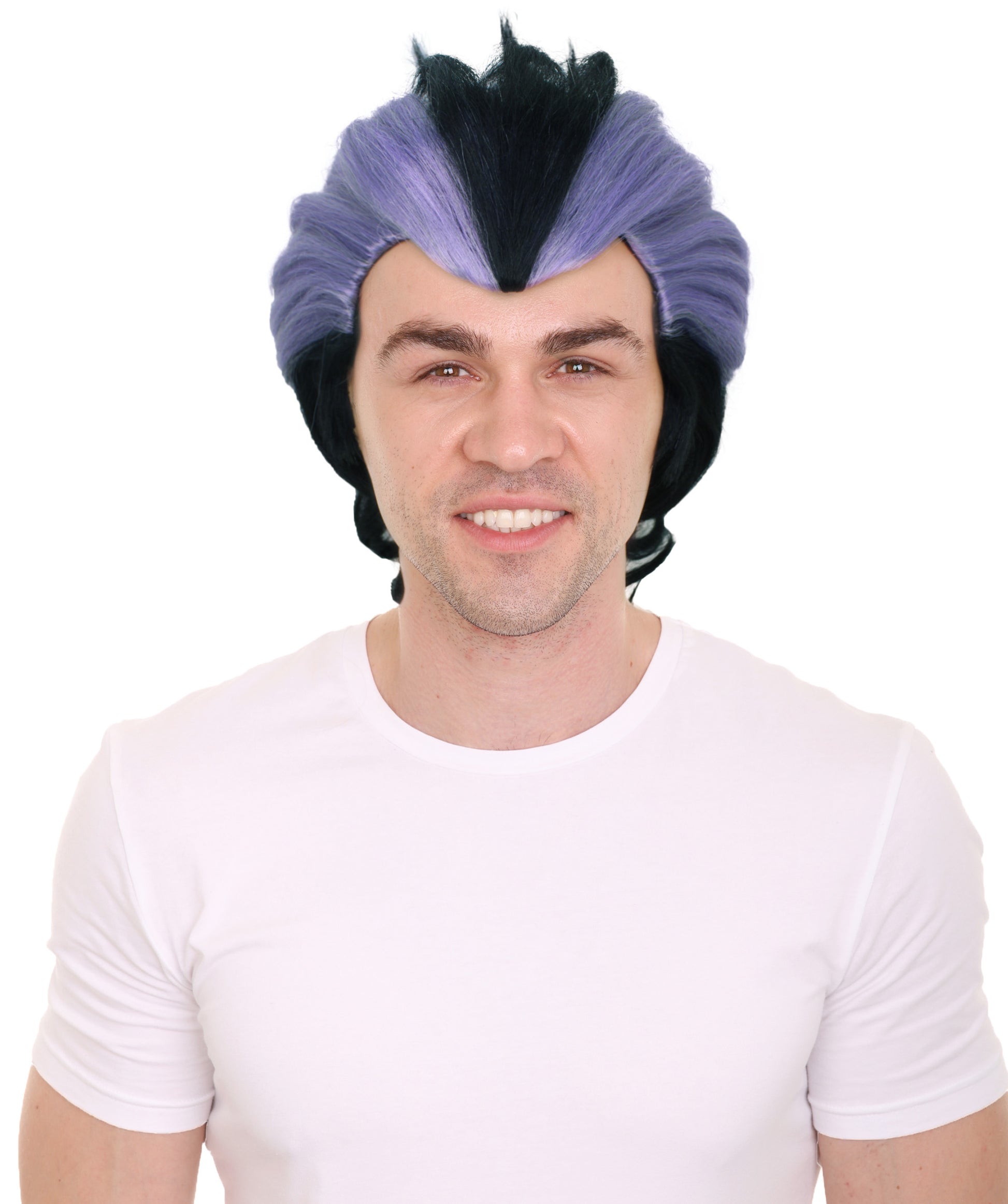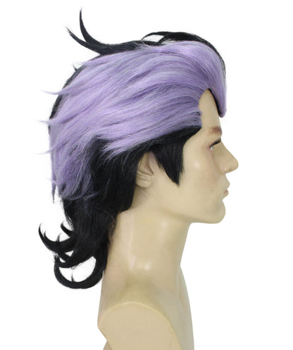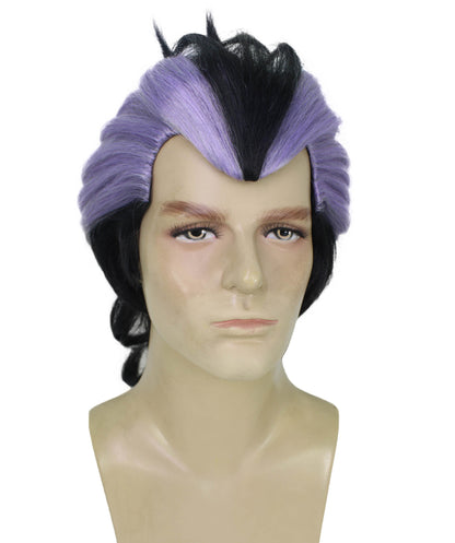 HPO Men's Protective Anime Character Purple Black Spiky Wig| Perfect for Halloween|Flame-retardant Synthetic Fiber