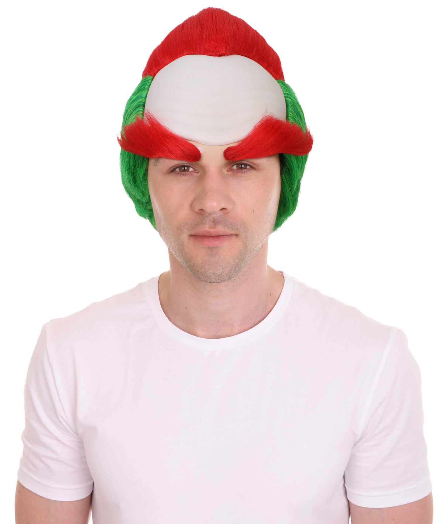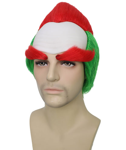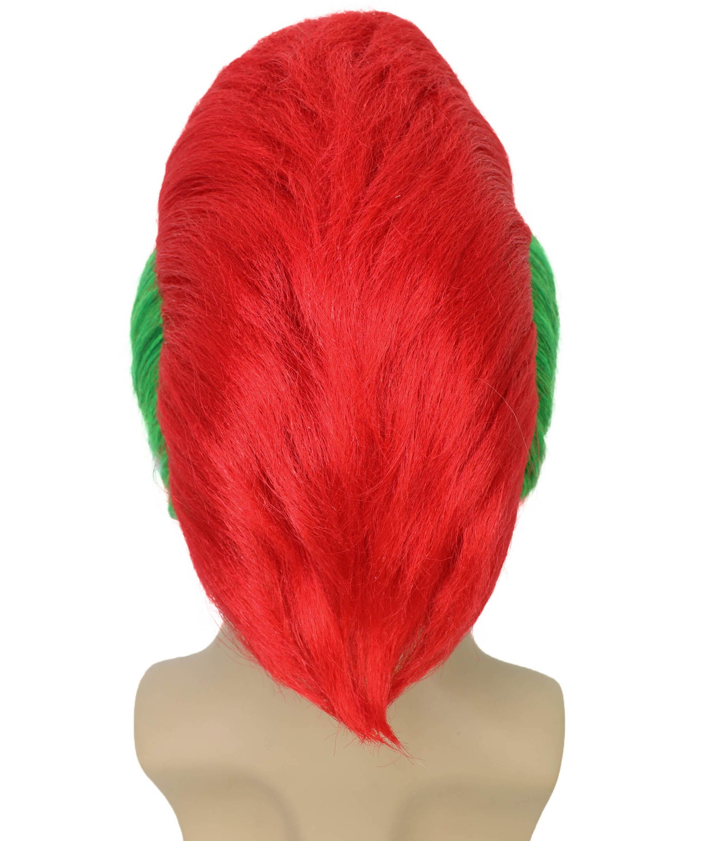 HPO Men's Red and Green Short Wig with Eyebrow, Perfect for Halloween, Flame-retardant Synthetic Fiber