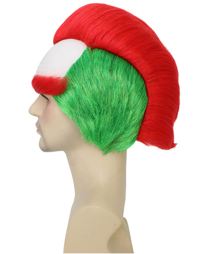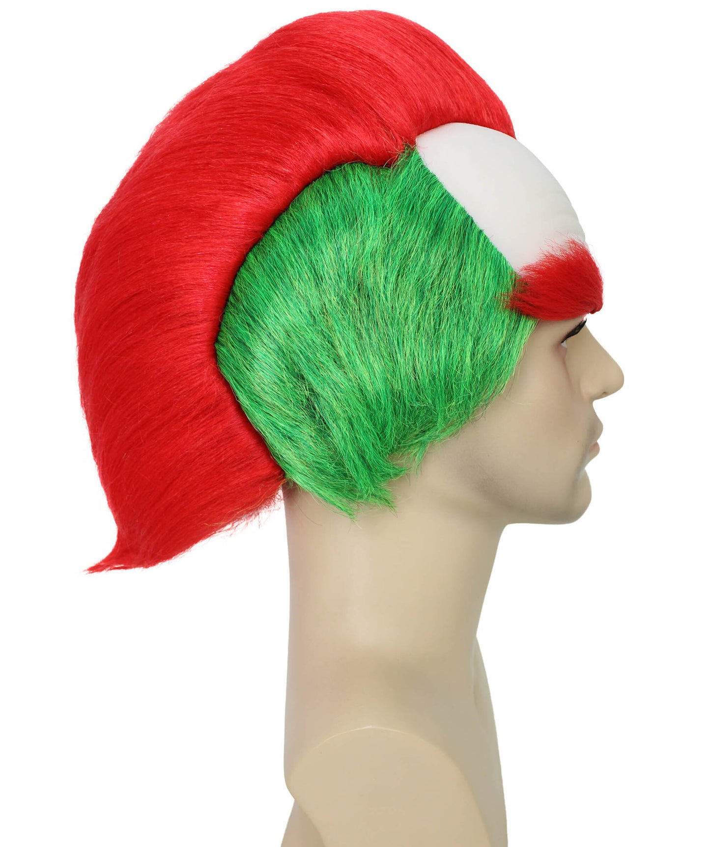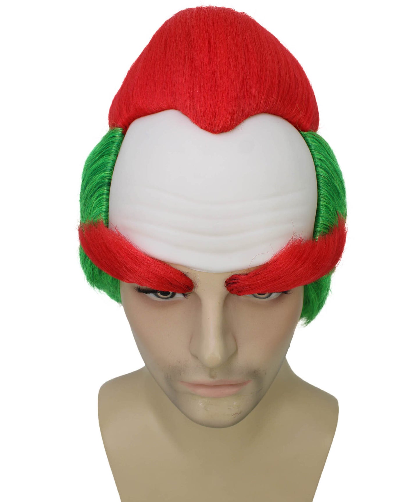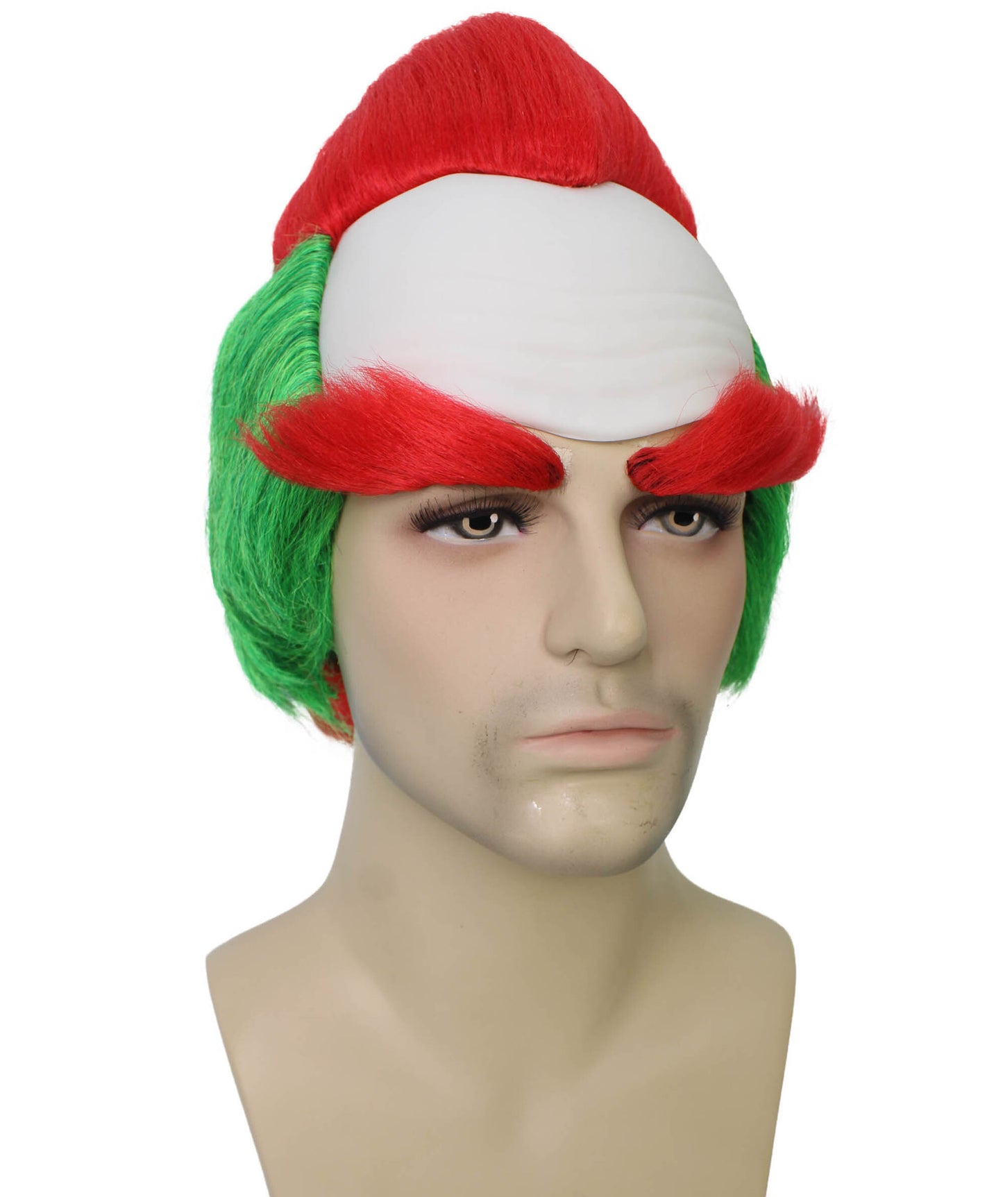 HPO Men's Red and Green Short Wig with Eyebrow, Perfect for Halloween, Flame-retardant Synthetic Fiber