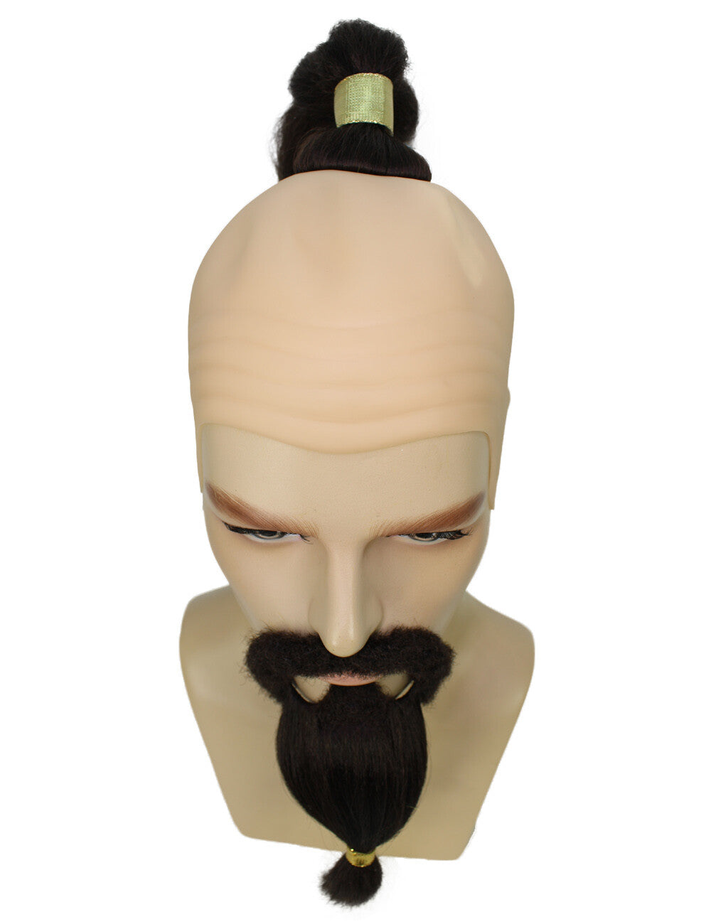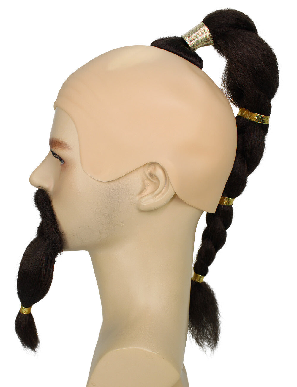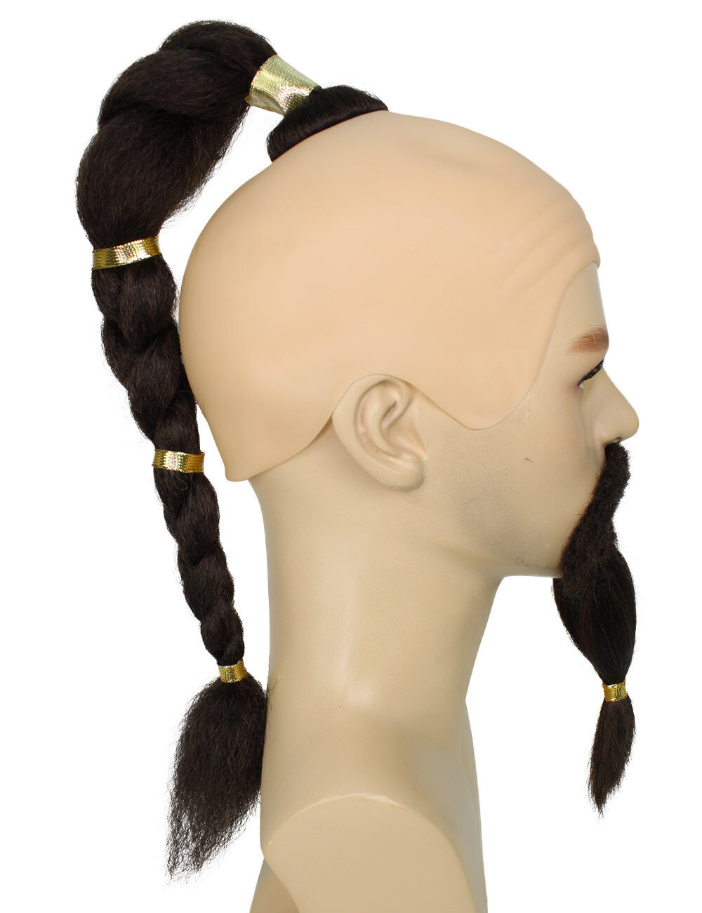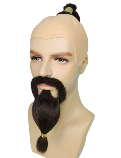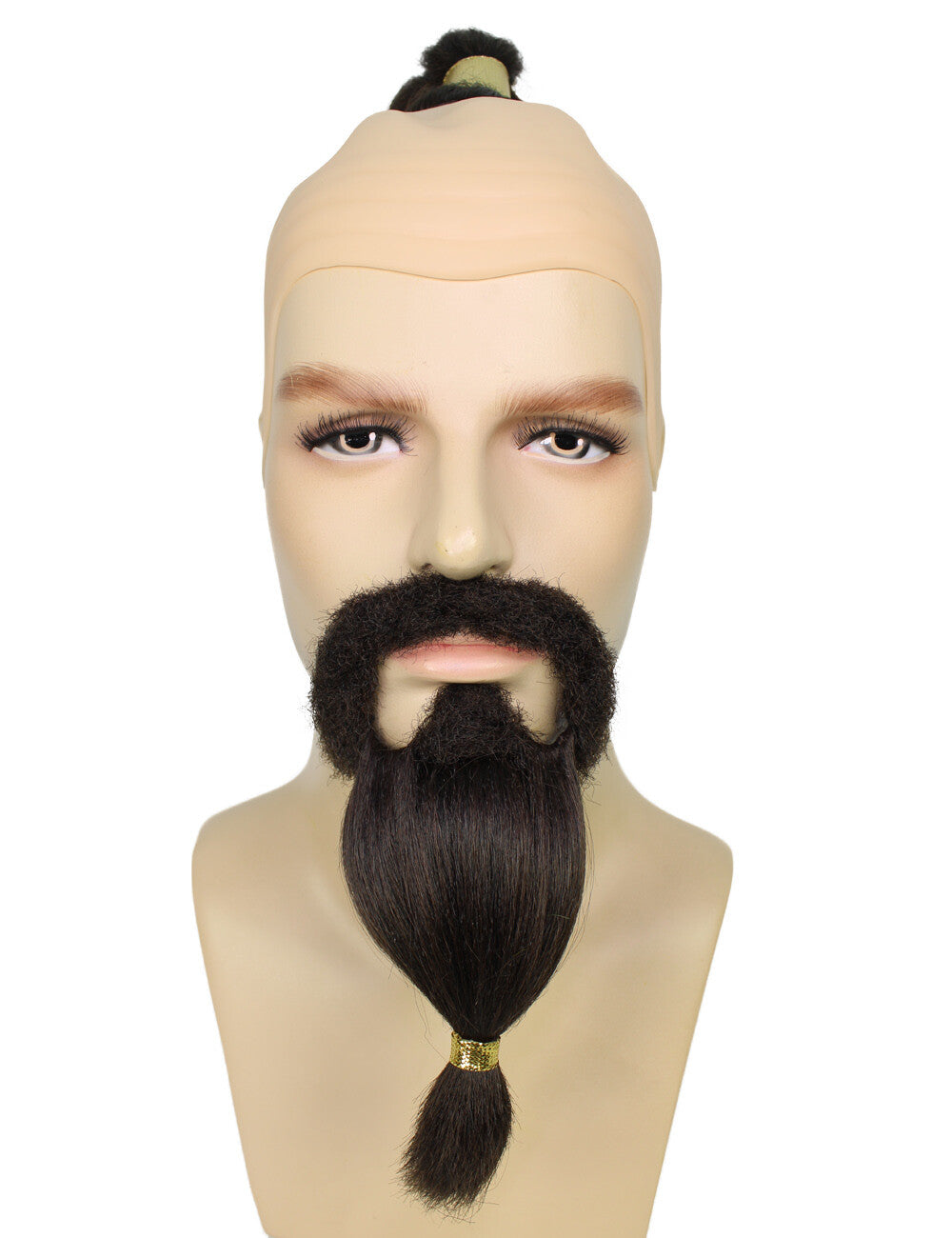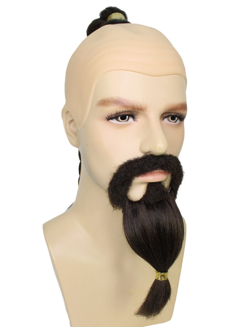 HPO Men's Short Black Braided Wig with Beard and Mustache, Perfect for Halloween, Flame-retardant Synthetic Fiber