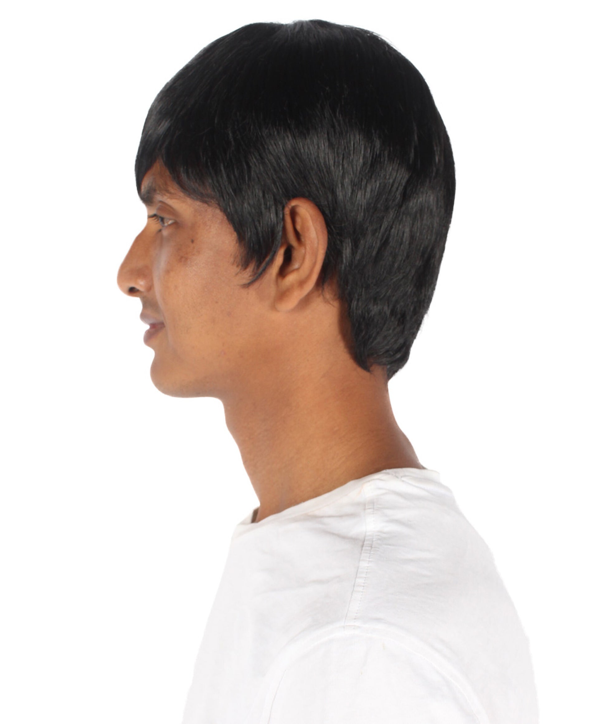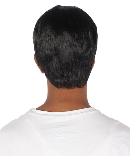 HPO Men's Short Black Wig, Perfect for, Flame-retardant Synthetic Fiber