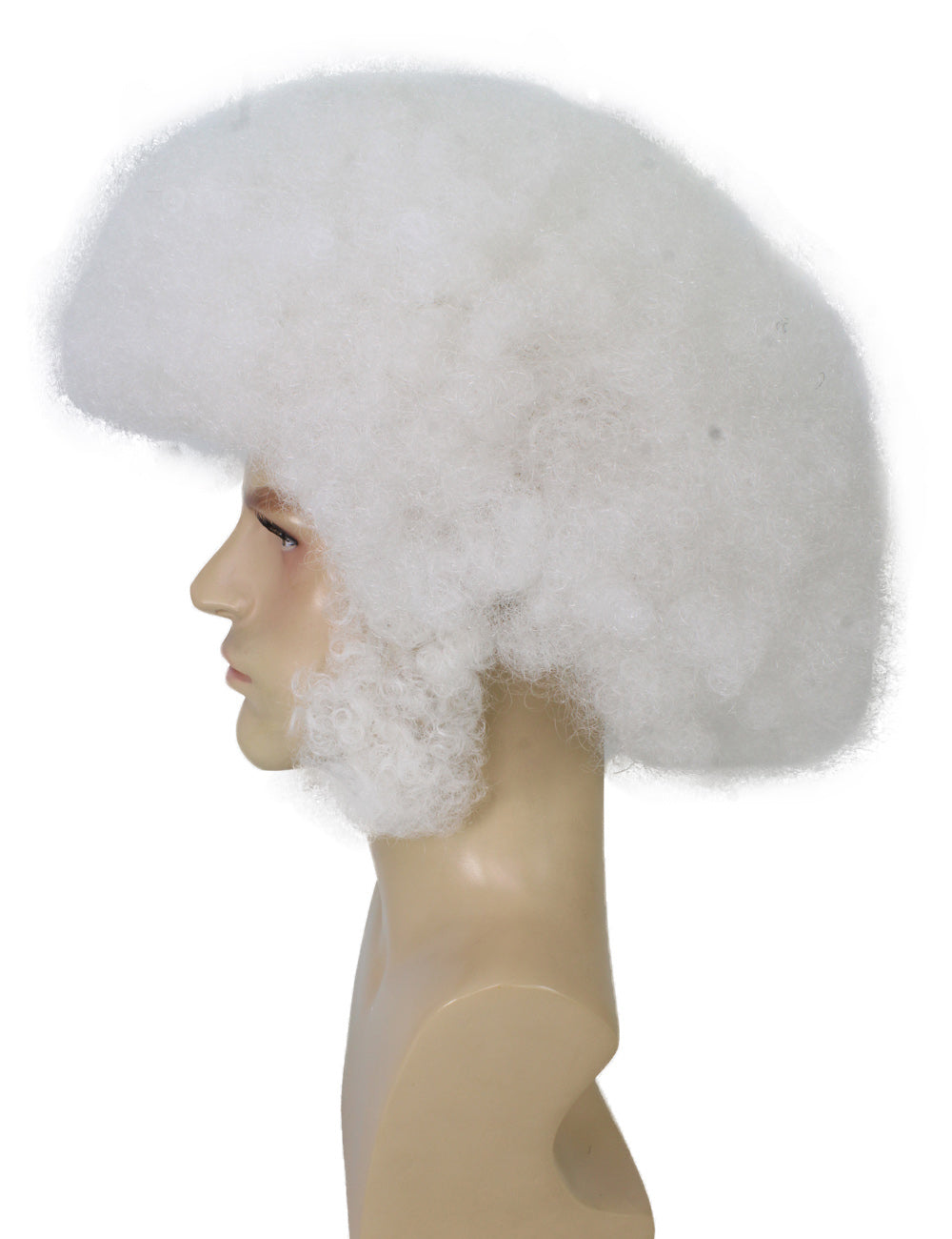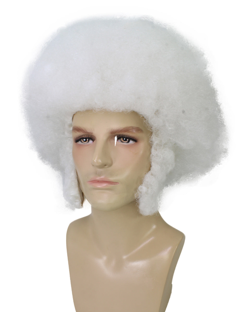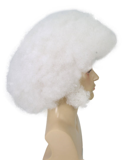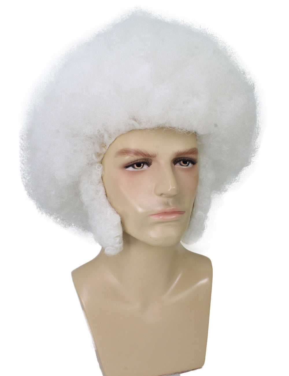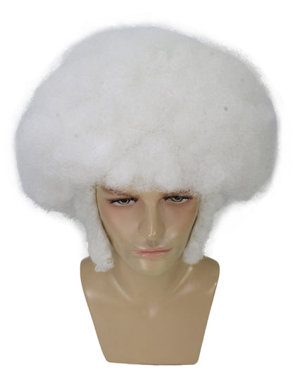 HPO Men's White Afro Wig, Perfect for Halloween, Flame-retardant Synthetic Fiber