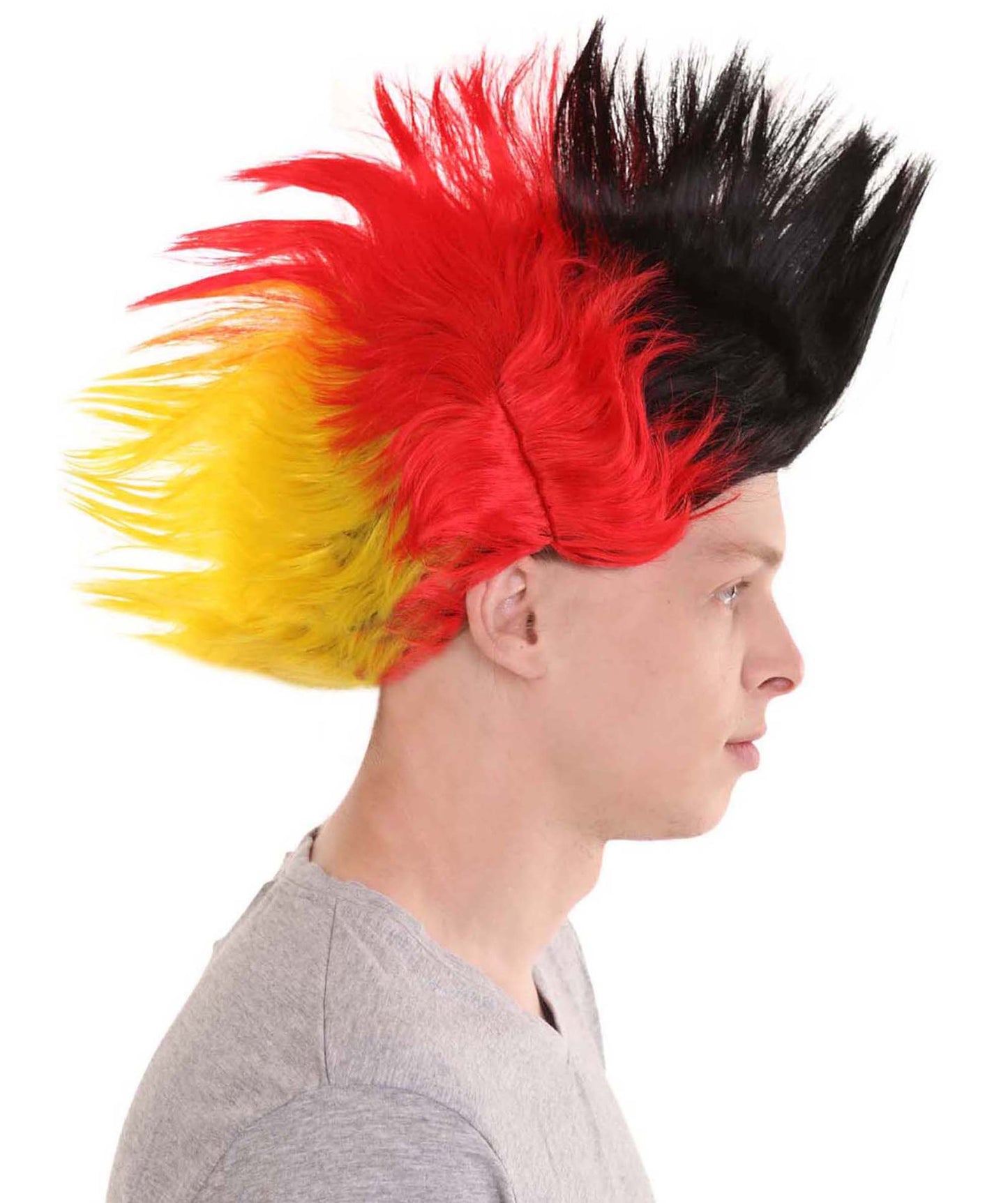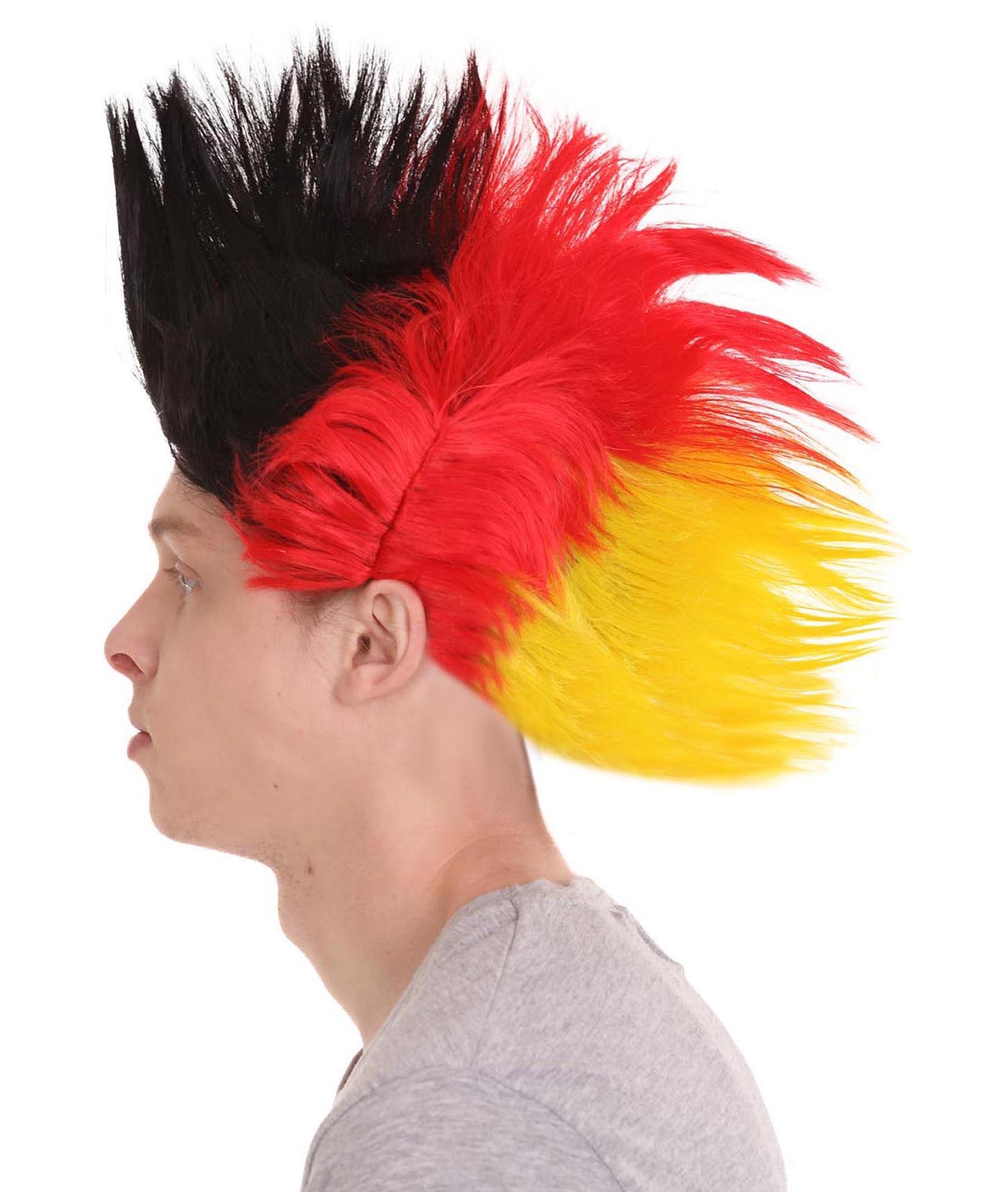 HPO Mohawk Wig | Red Black Yellow Color Halloween Wigs | Premium Breathable Capless Cap