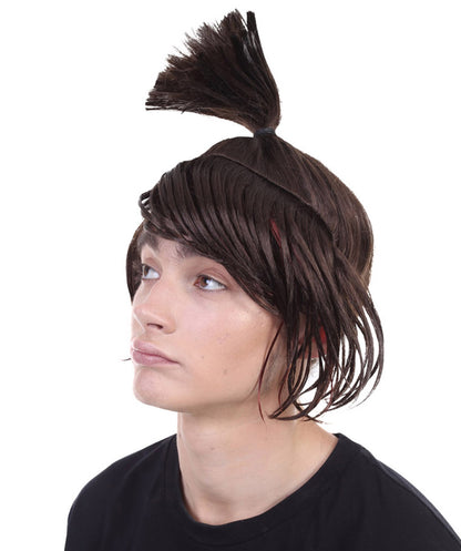 Adult Topknot Brown Ninja Wig | Fun Hair for Halloween, Cosplay & Theme Parties | Capless Cap Design