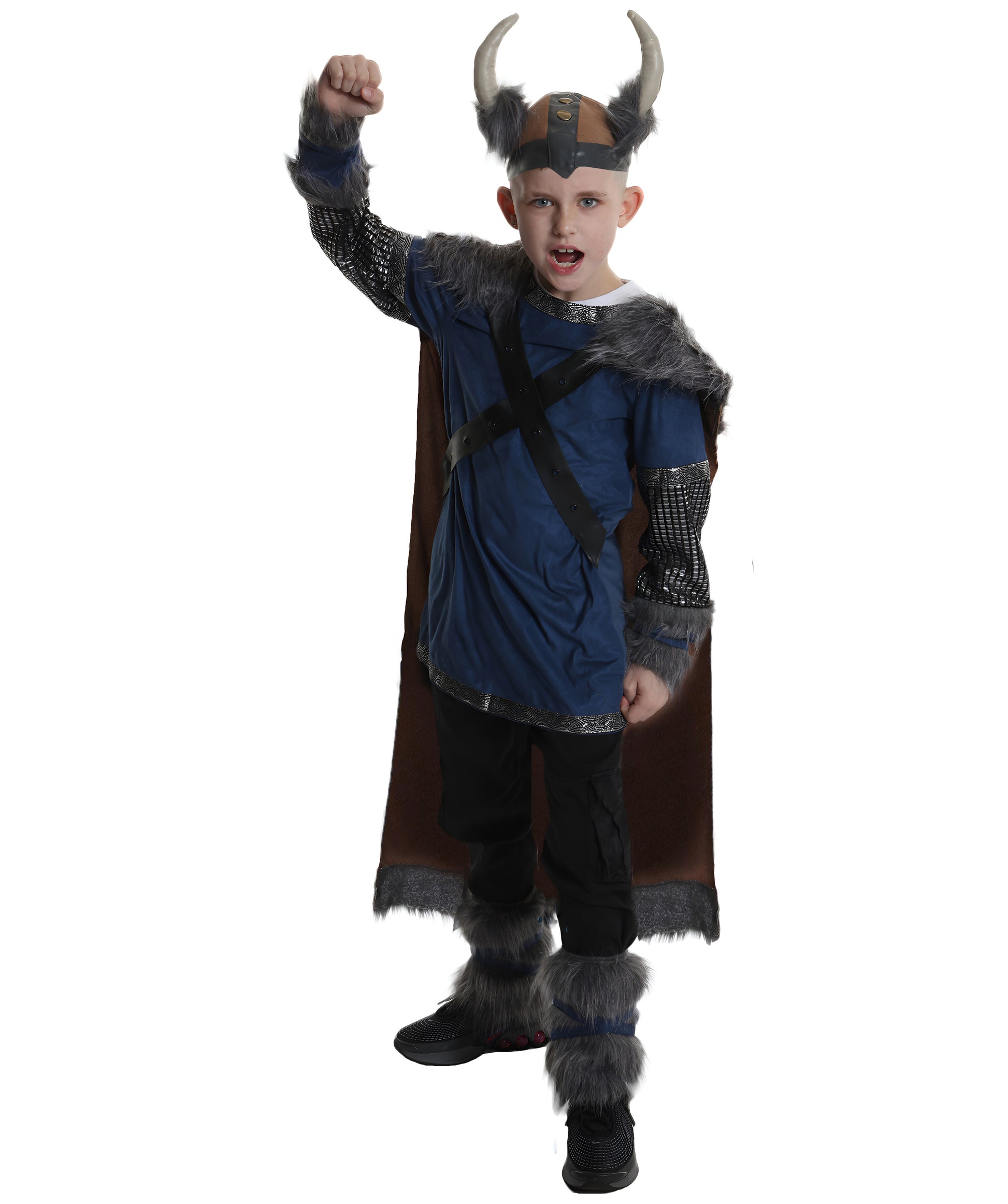 A tough tunic with imitation fur accents, a strong belt, matching trousers, and striking arm cuffs give this intricate Viking Warrior Costume an authentic warrior appearance. The distinctive Viking helmet with horns, which completes the strong and valiant look, is the most notable element. Whether your youngster is playing pretend battles like the Vikings or trick-or-treating, this costume's soft, long-lasting fabric makes Warrior Costume comfortable and simple to move around in.